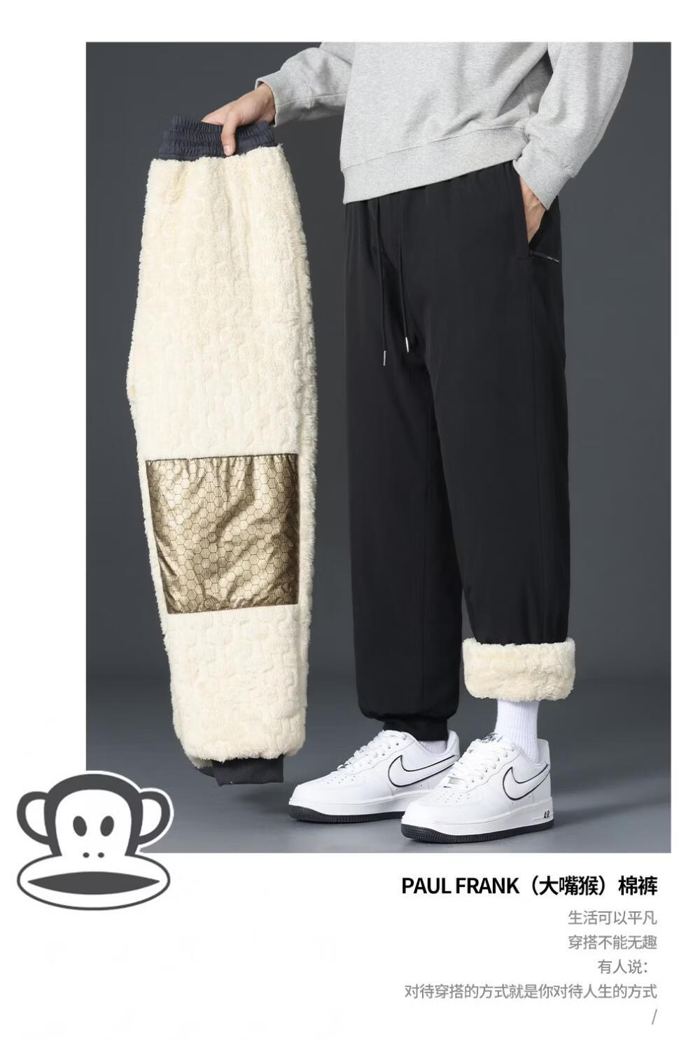 Big mouth monkey (paul frank) Japanese retro casual pants men's 2025 winter new loose straight comfortable warm trendy brand sports long pants dark gray cold and warm 4XL recommended 175-190Jin Jin equals 0.5 kg