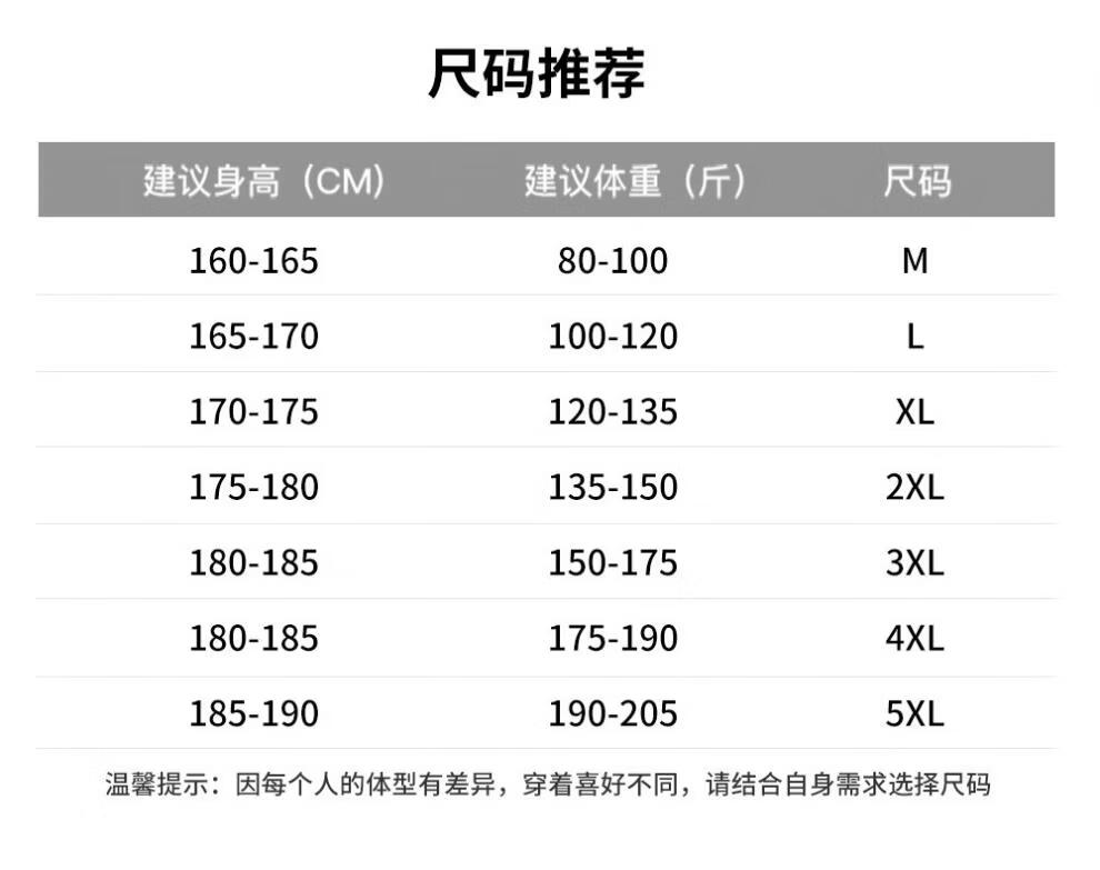 China (cm) 165 / 88-90 170 / 96-98 175 / 108-110 180 / 118-122 185 / 126-130