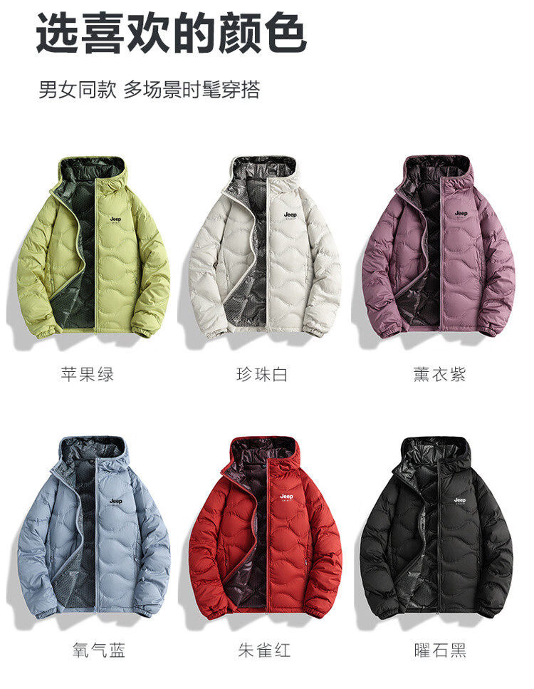 JEEP SPIRIT Thick Down Jacket for Men and Women 2025 New Winter Warm and Coldproof Hooded White Duck Down Jacket Top Men's XW25189 Oxygen Blue 2XL
