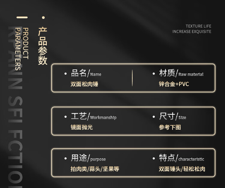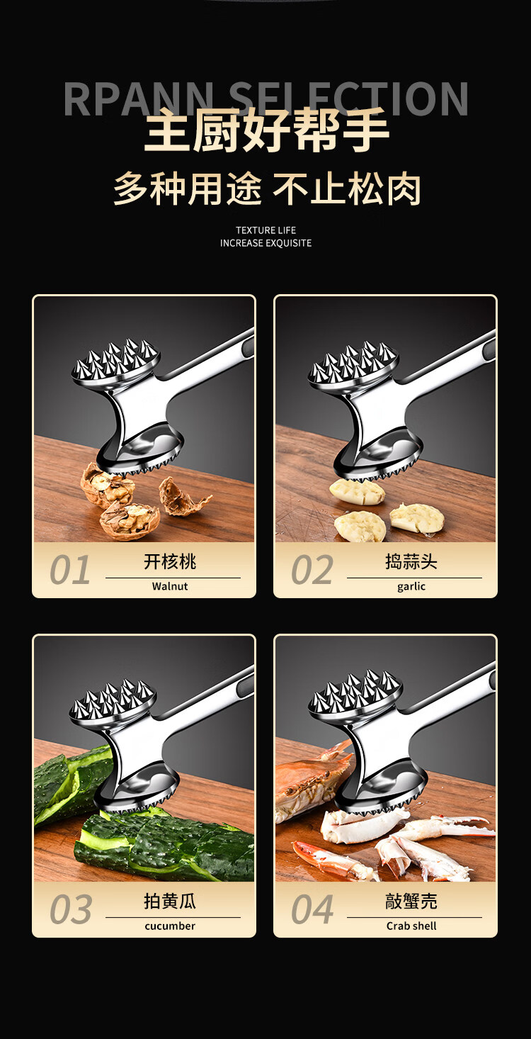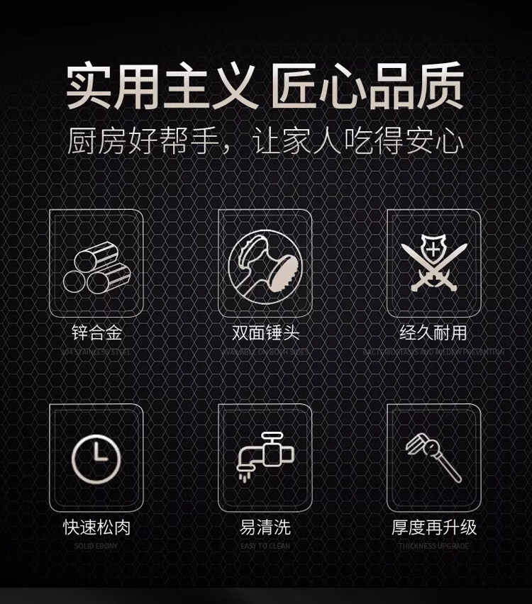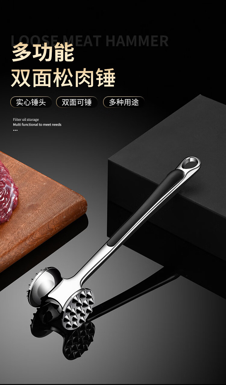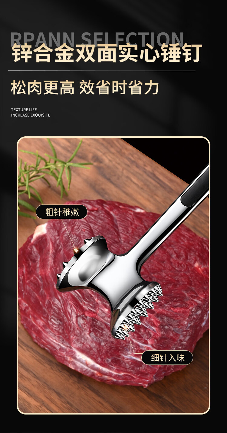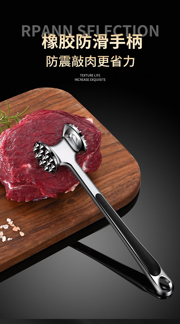 喜得利松肉锤松肉锤厨房牛排锤子牛扒敲肉锤家用牛排锤断筋器牛肉专用敲 双面断筋松肉锤 【送挂钩+小油刷】