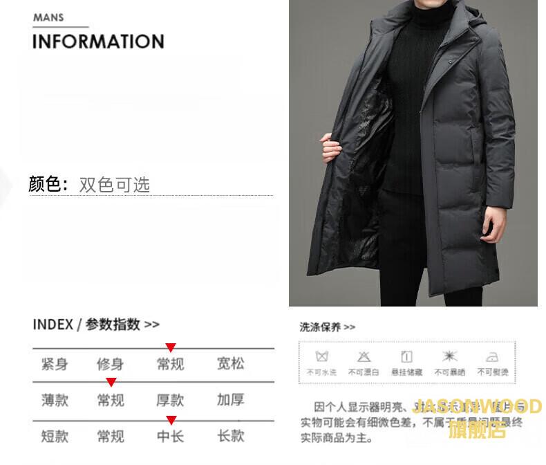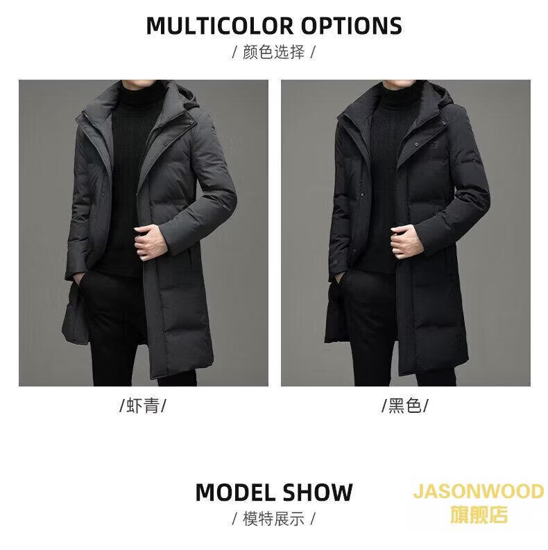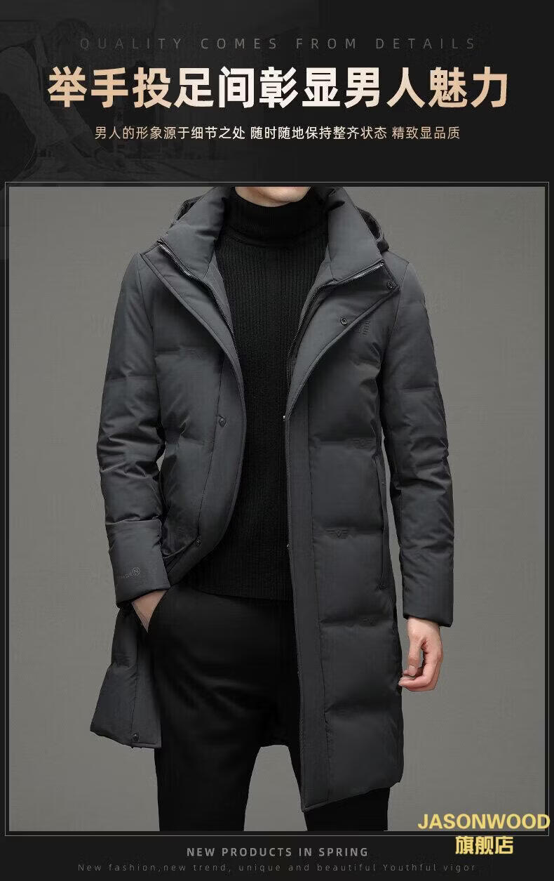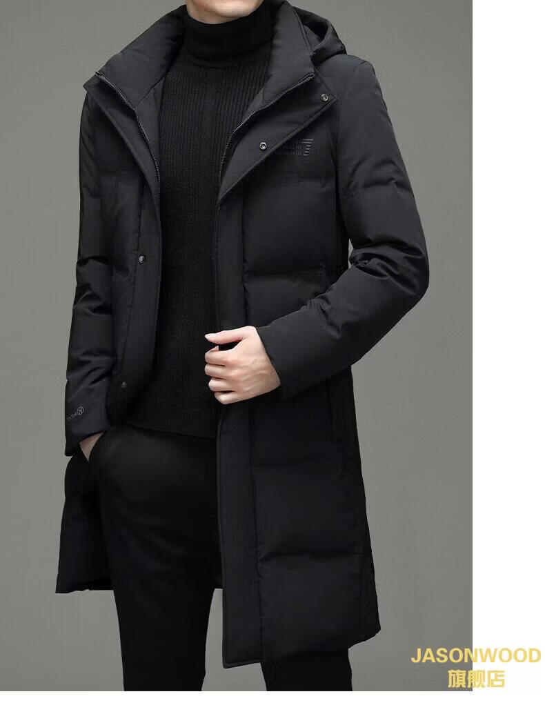 JASONWOOD роскошный элитный бренд мужской пуховик средней длины выше колена 2025 зима среднего возраста утолщенная теплая деловая куртка высокого класса креветки креветки известный бренд мужчины зима 4XL рекомендуется 180-200Jin Jin равен 0,5 кг