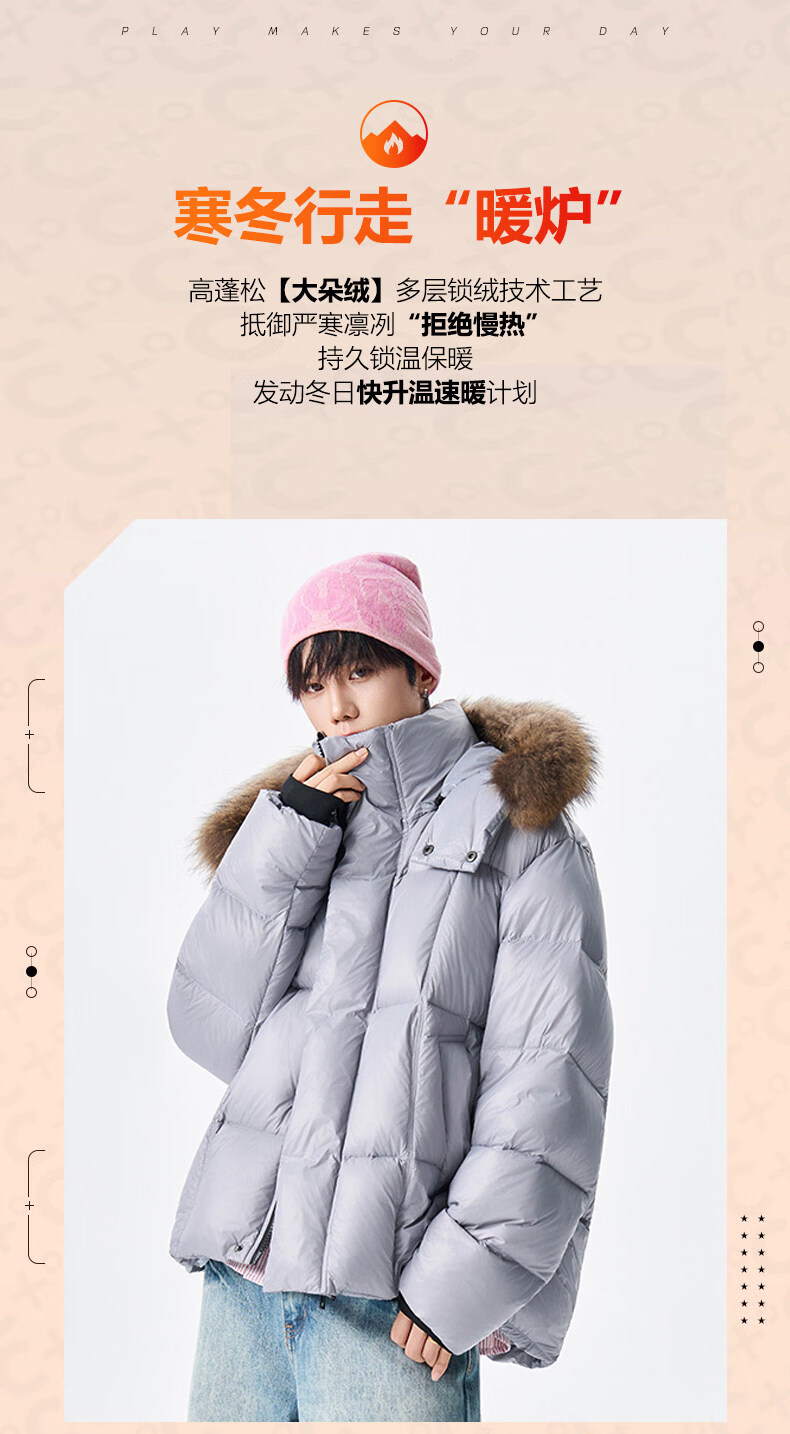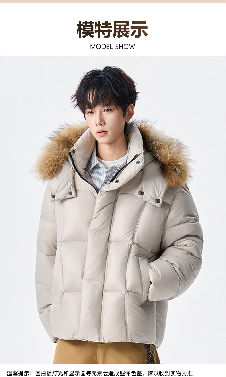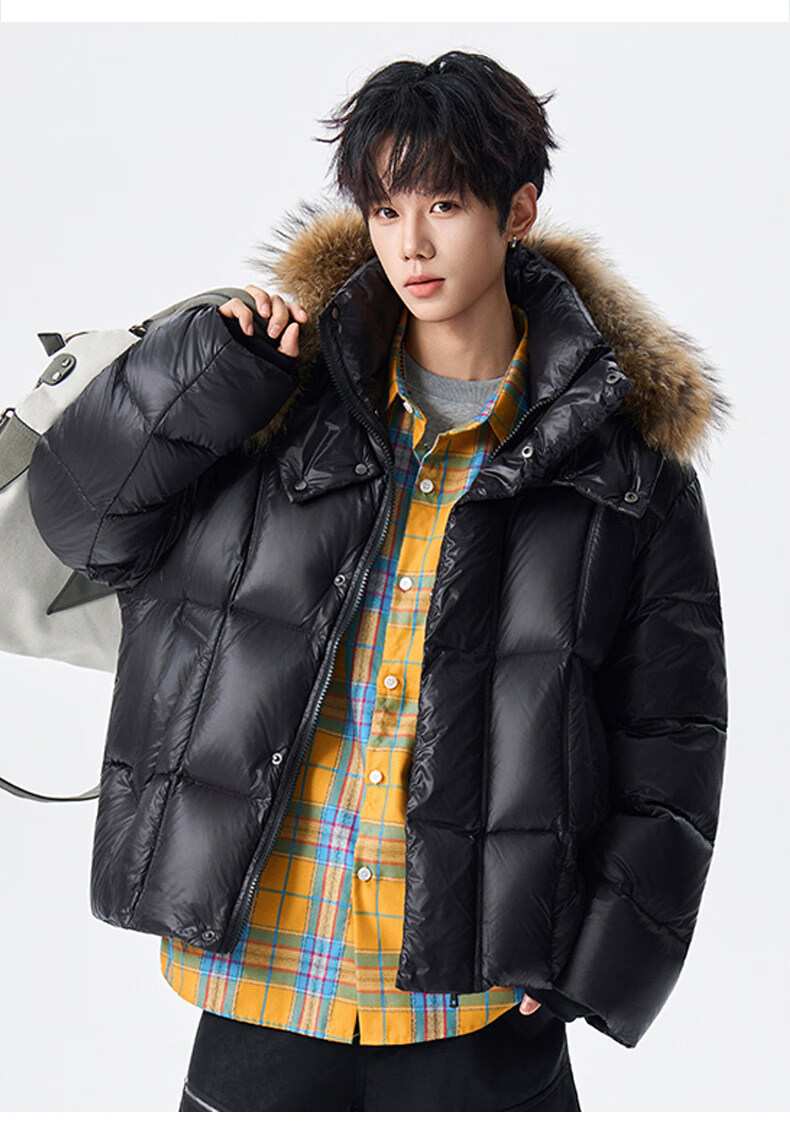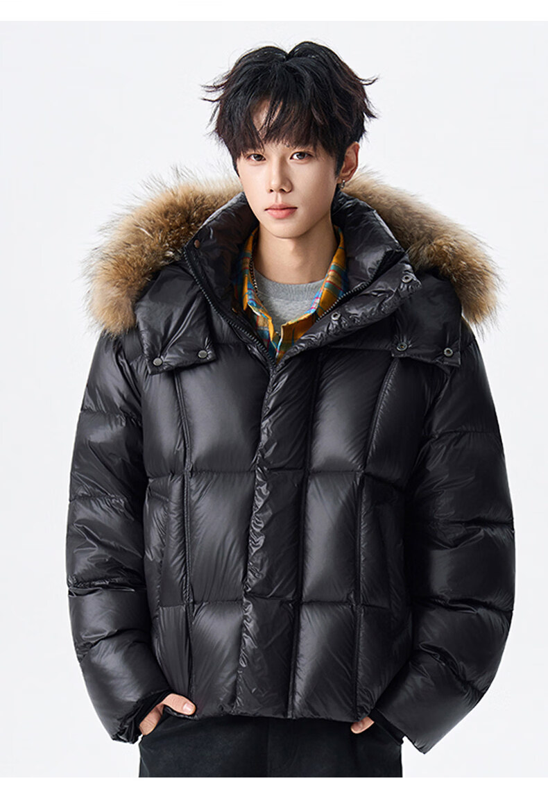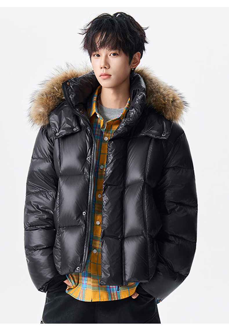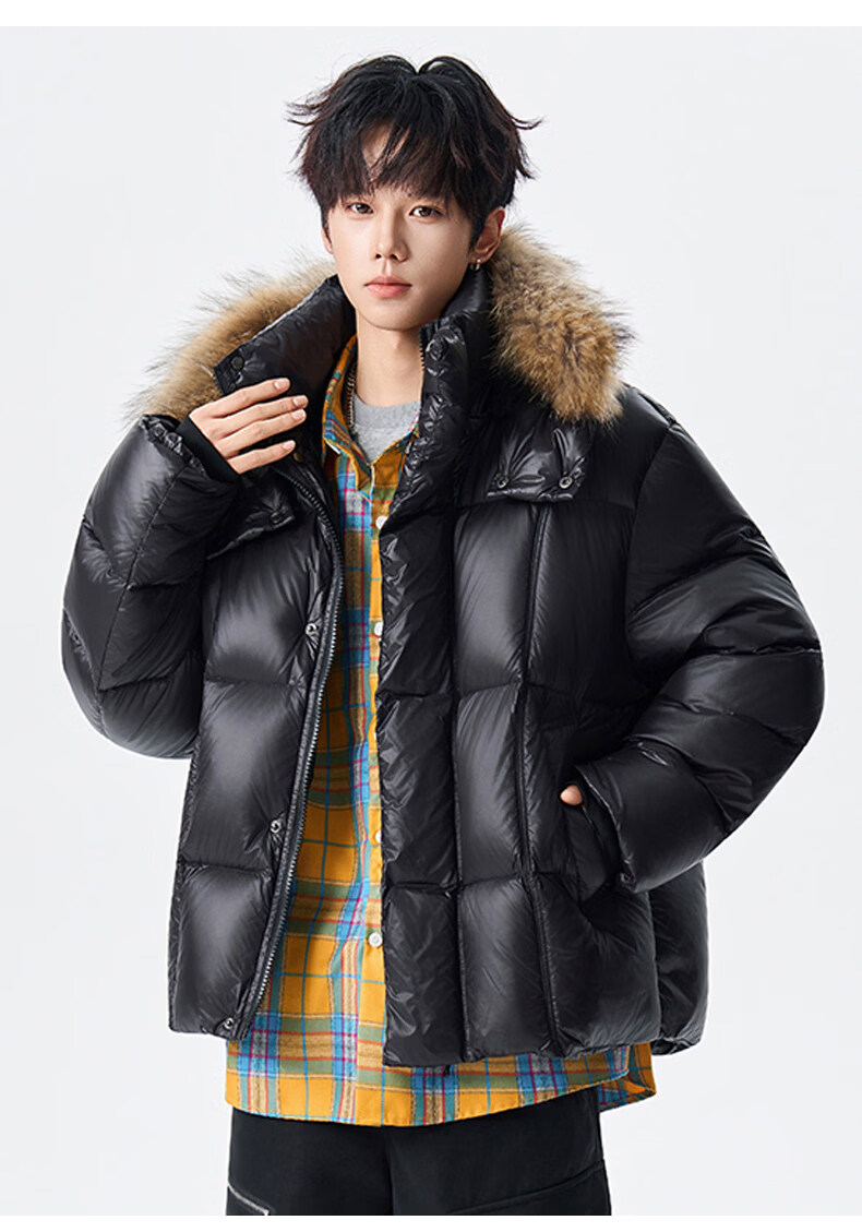 viishow冬季可拆卸毛领连帽羽绒服男女潮牌90绒保暖情侣防寒外套 黑色 S