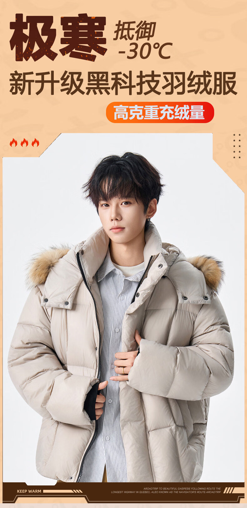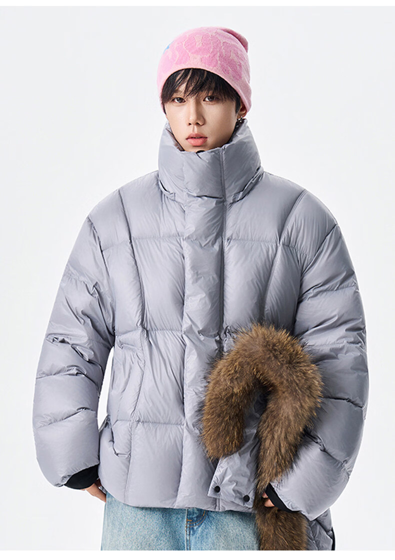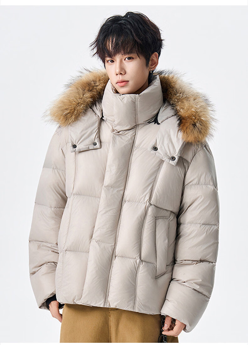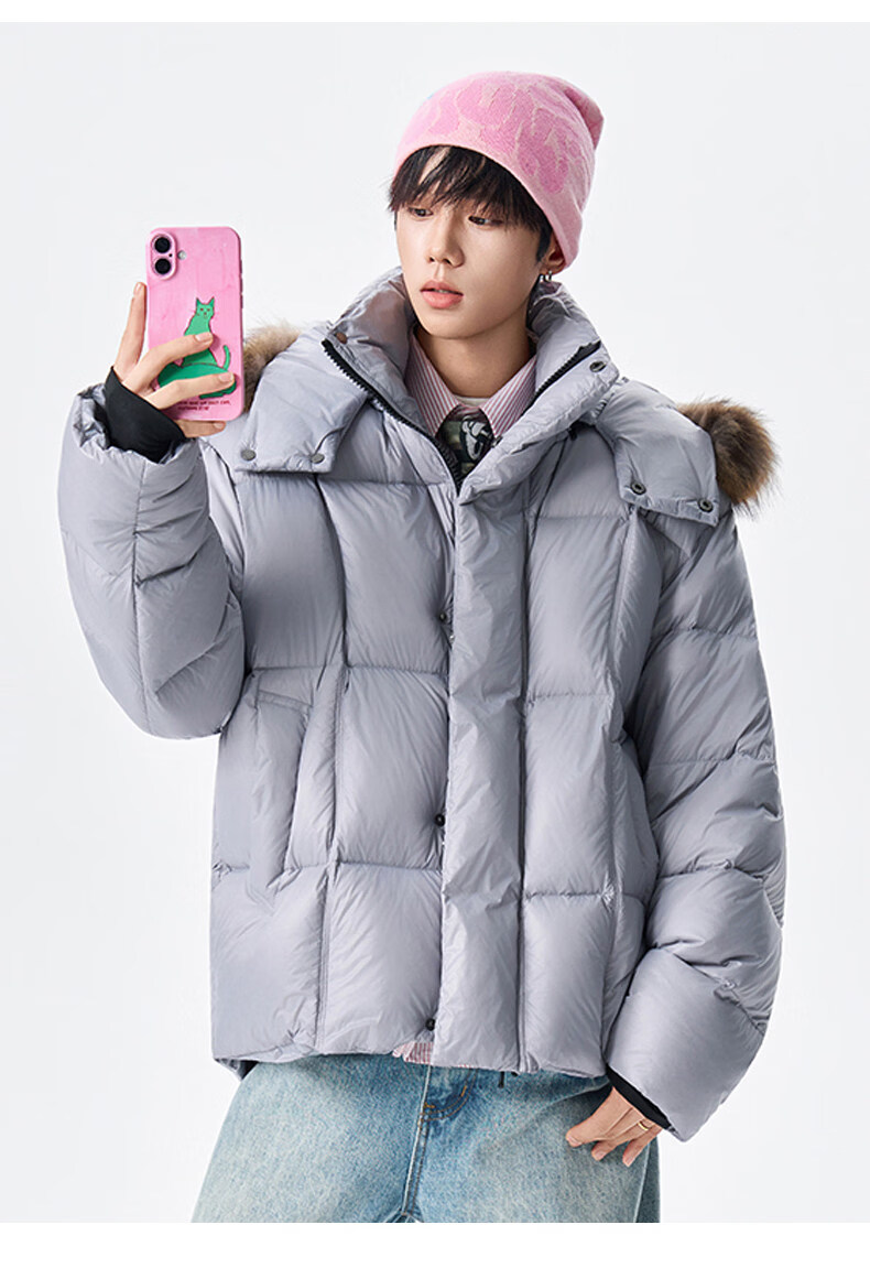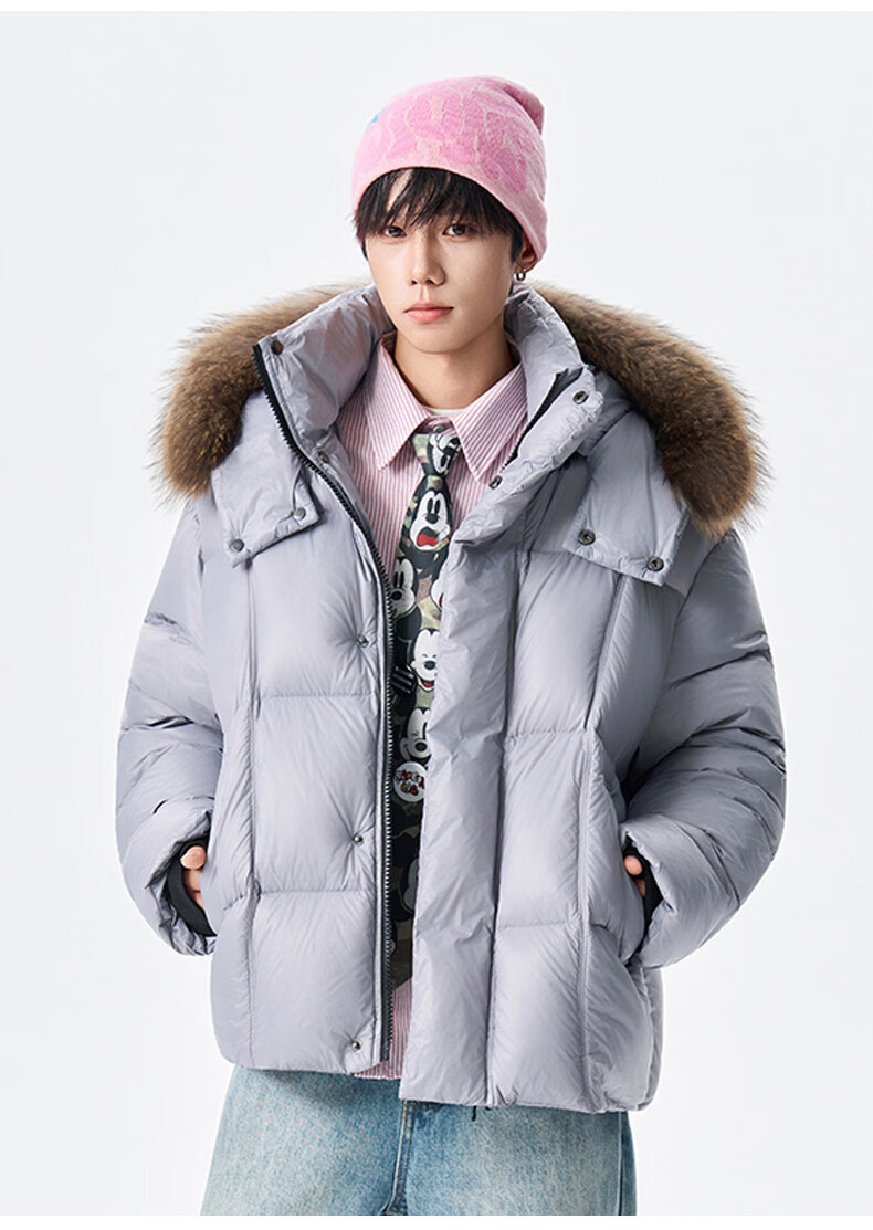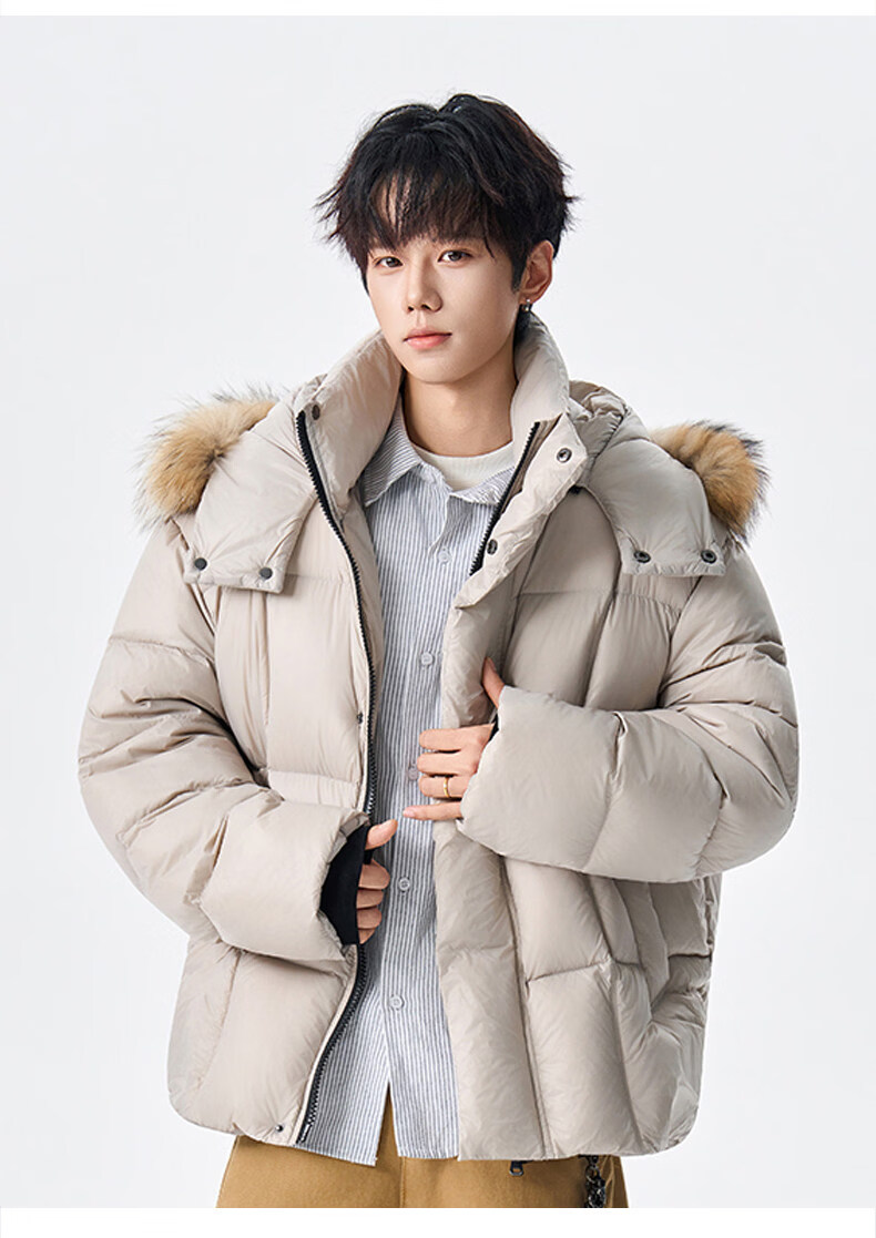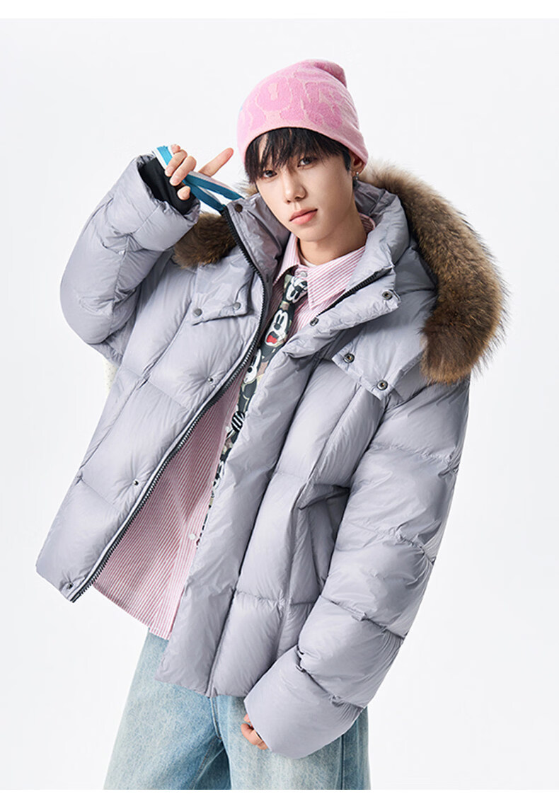 viishow冬季可拆卸毛领连帽羽绒服男女潮牌90绒保暖情侣防寒外套 黑色 S