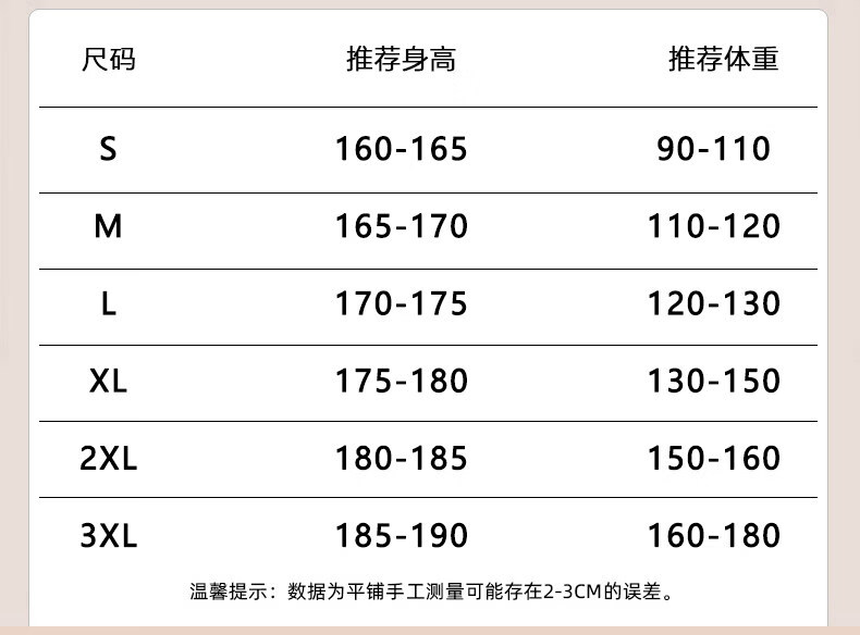 China (cm) 165 / 88-90 170 / 96-98 175 / 108-110 180 / 118-122 185 / 126-130