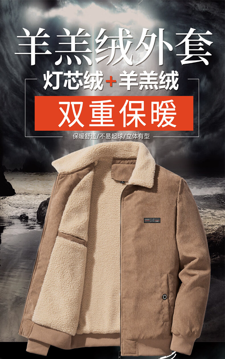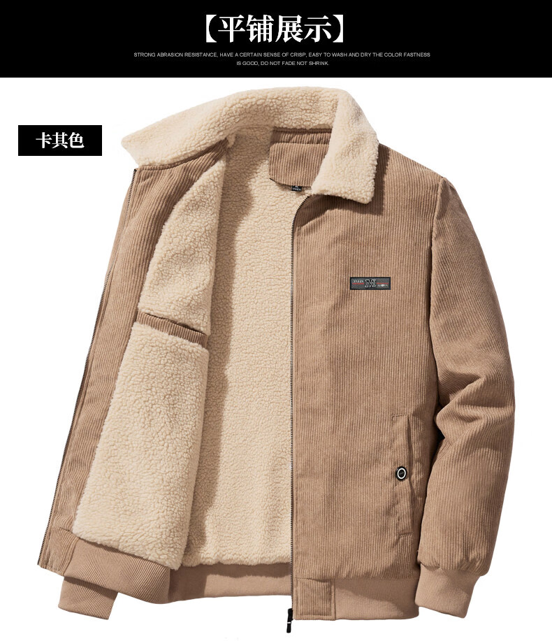 ROMON осенне-зимняя бархатная куртка из ягненка, мужская бархатная хлопчатобумажная куртка, вельветовая куртка с лацканами, новое утепленное хлопковое пальто среднего возраста, бархатное пальто цвета хаки из ягненка, рекомендуется M 80-Jin Jin равно 0,5 кг
