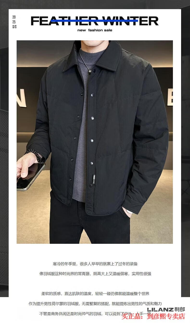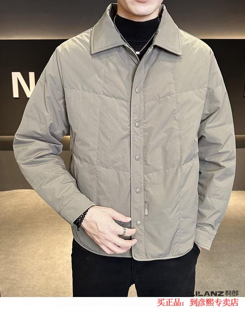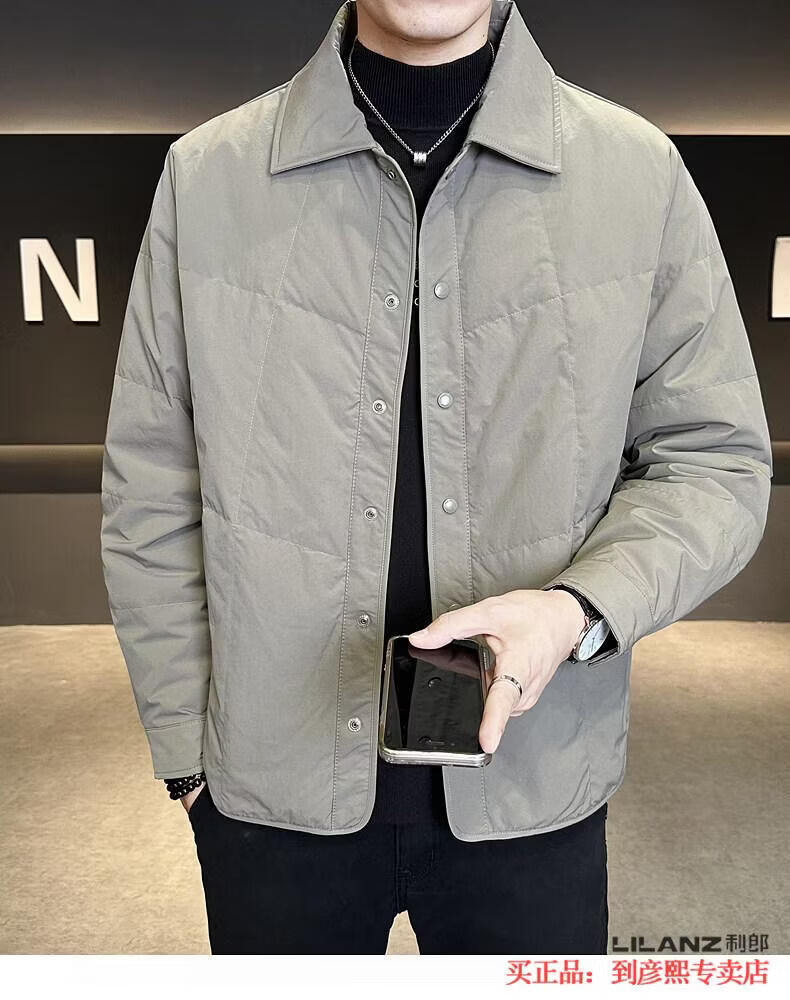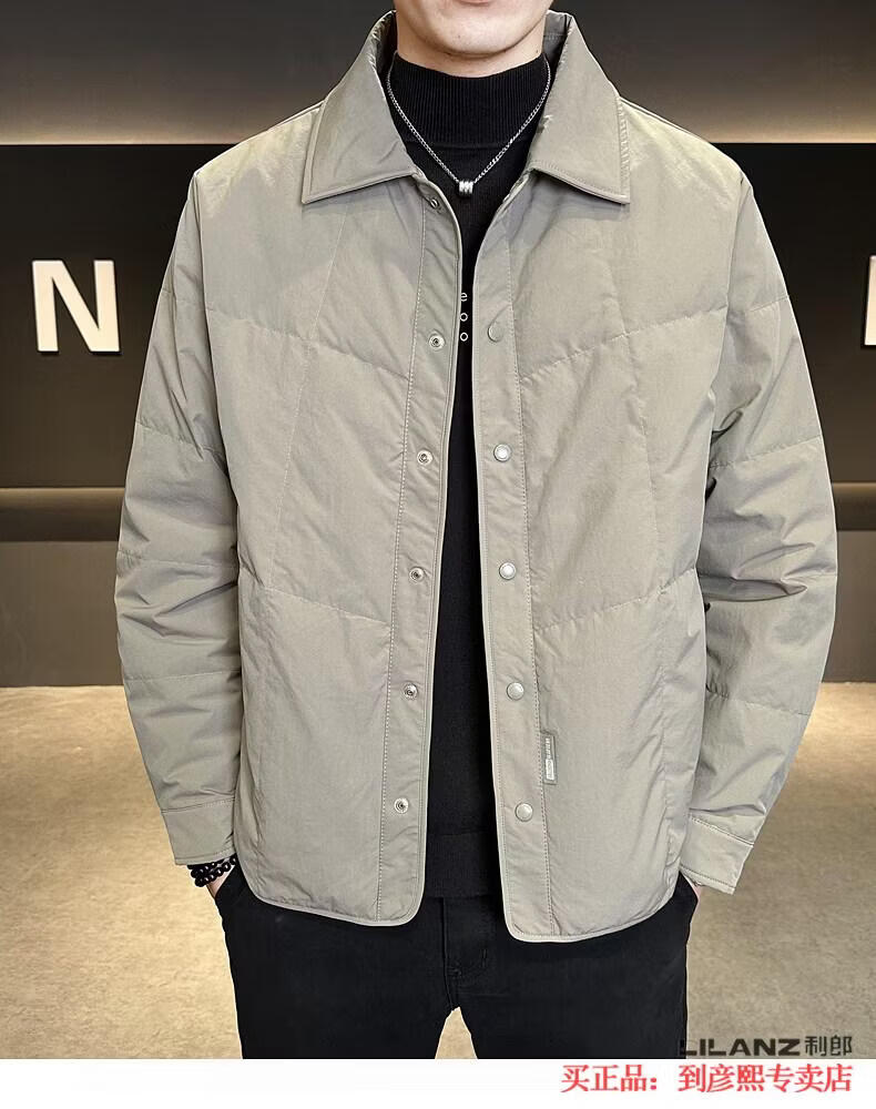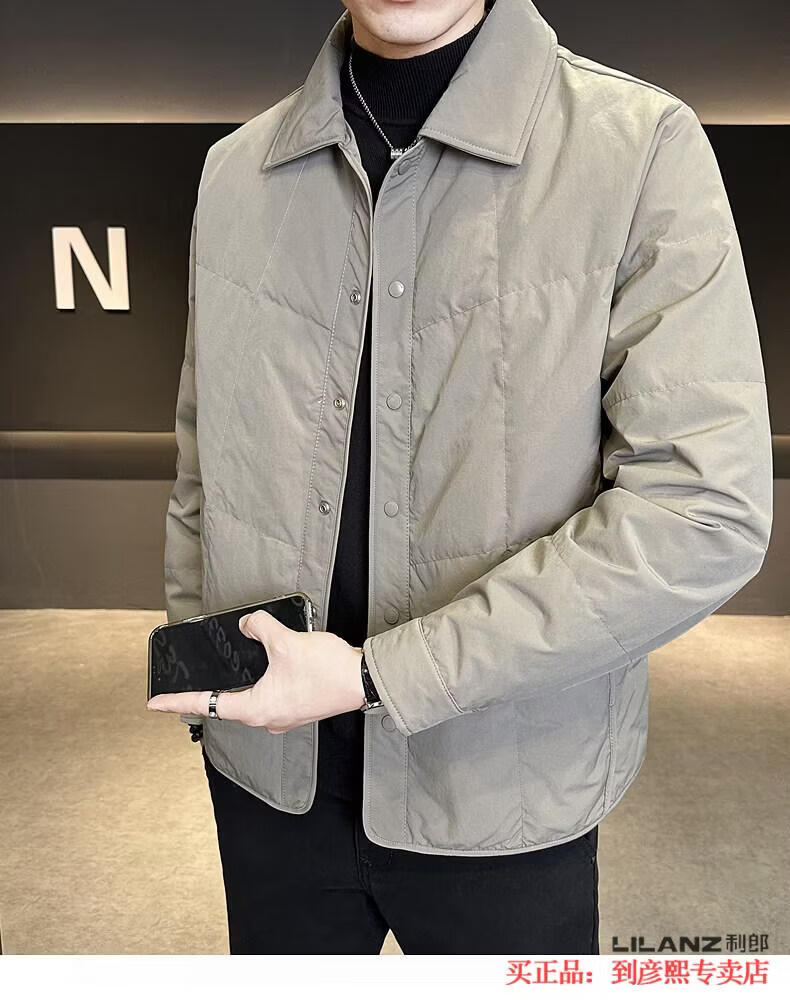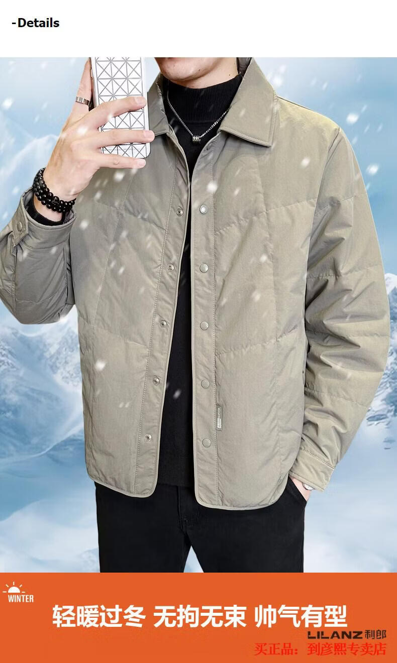 利郎(LILANZ)官方轻薄款羽绒服男冬季2025新款翻领短款冬天90白鸭绒羽绒外套男 灰色-旗舰款 L