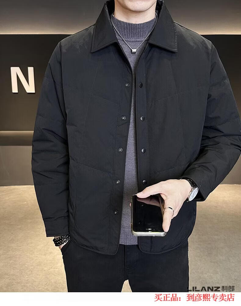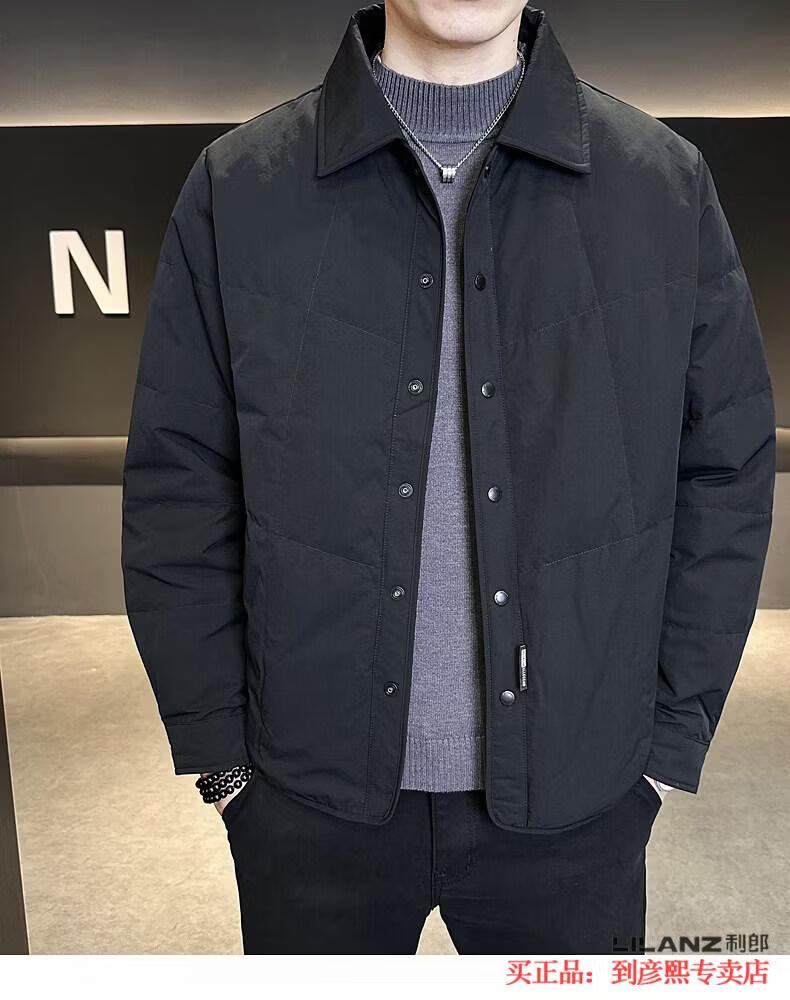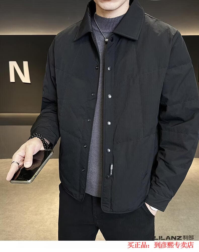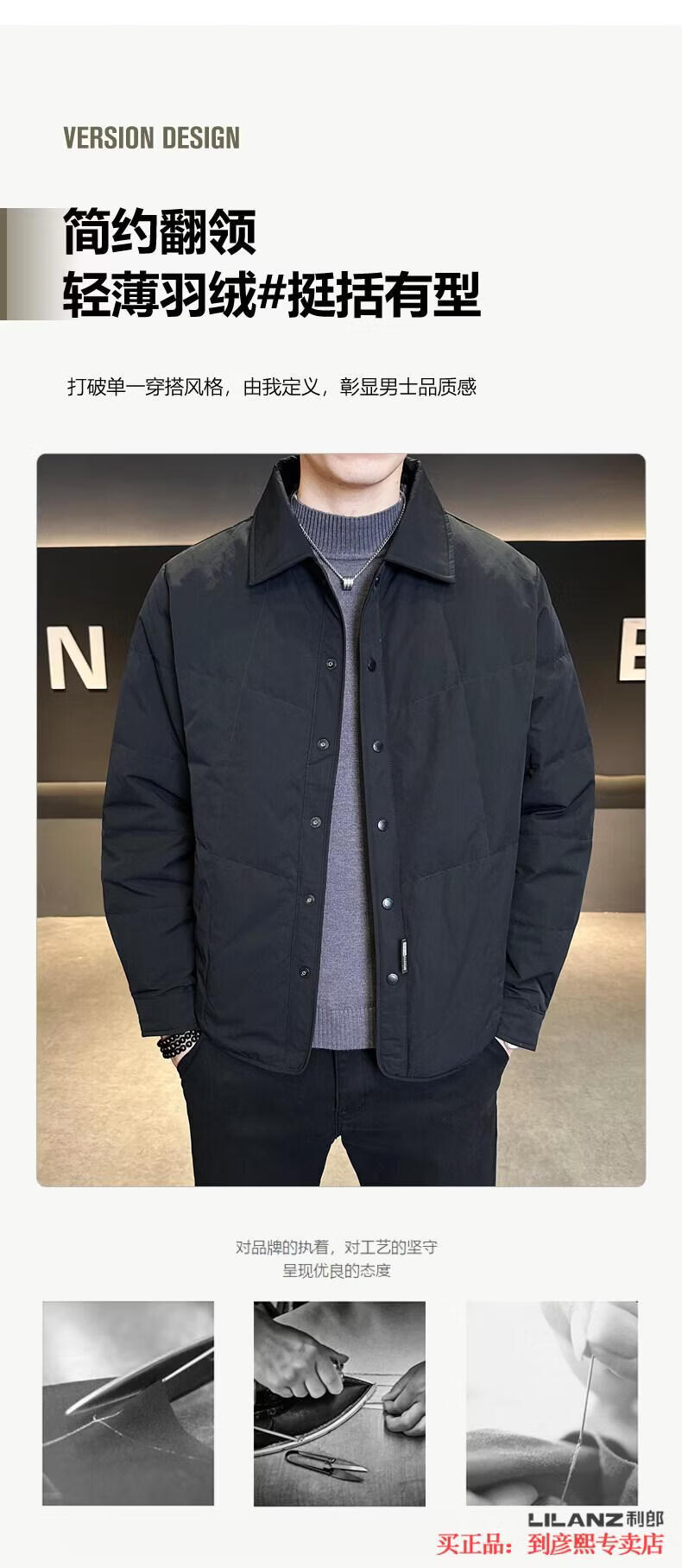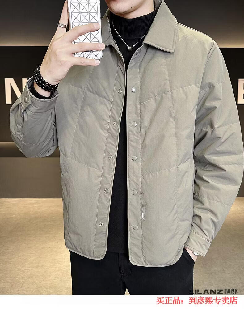 利郎(LILANZ)官方轻薄款羽绒服男冬季2025新款翻领短款冬天90白鸭绒羽绒外套男 灰色-旗舰款 L