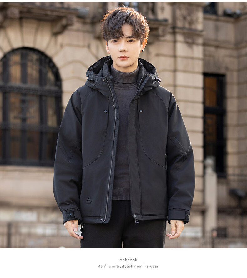 Мужская зимняя пуховая куртка ROMON с капюшоном, новый стиль, утолщенная и теплая уличная куртка, рабочая куртка, черная, XL, вес 140-160Jin Jin, вес 0,5 кг.