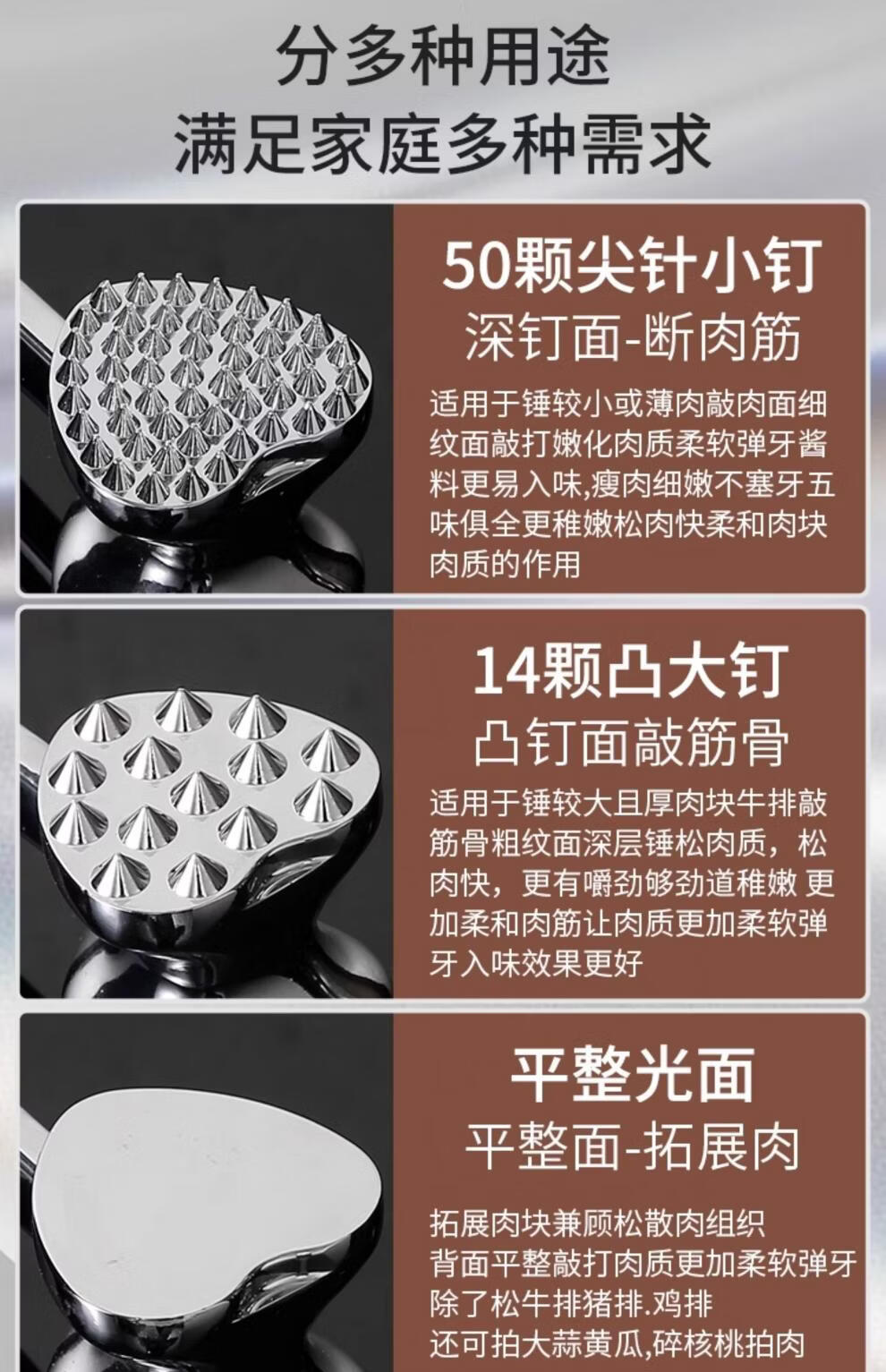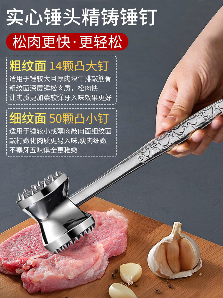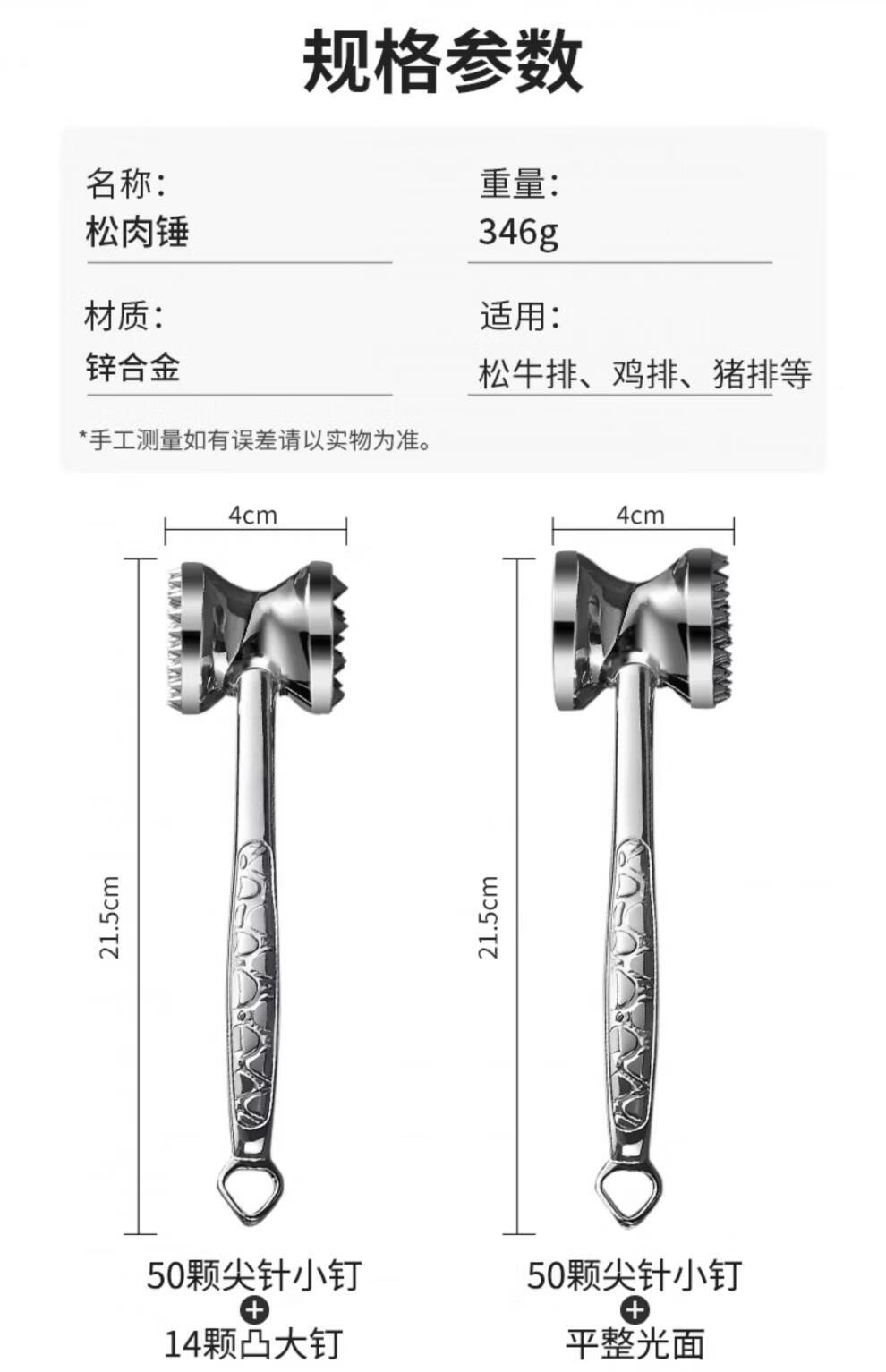 澳颜莱双面牛排锤家用敲肉神器断筋松肉拍打猪肉牛肉 A款双面敲肉锤50颗尖针小钉平整光面