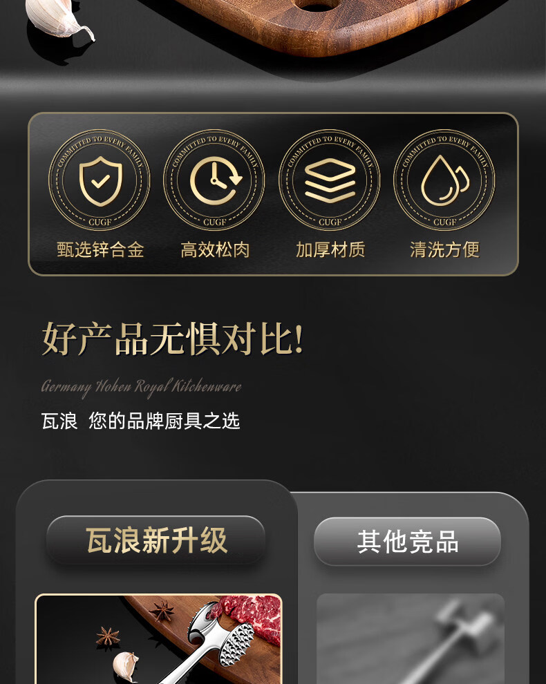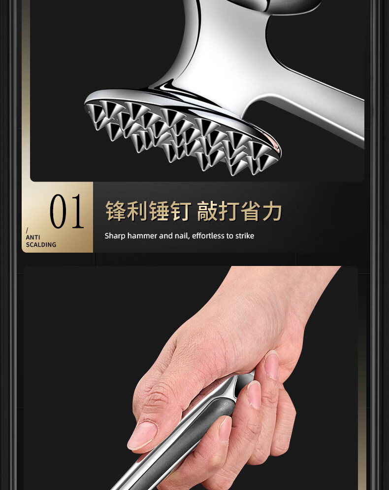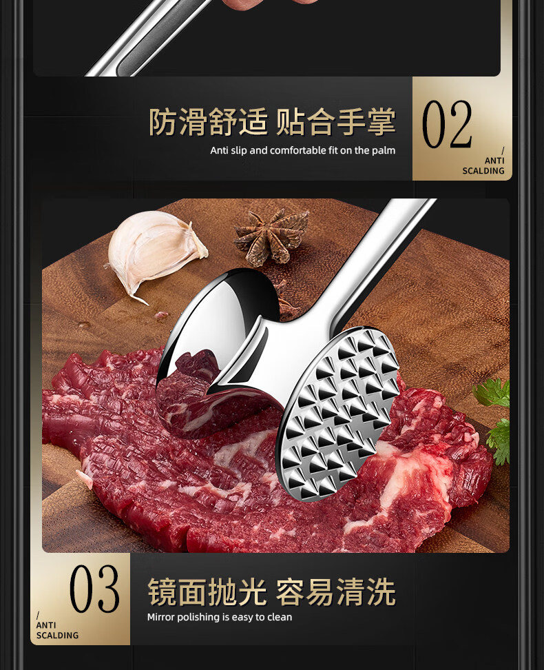 澳颜莱牛肉松肉锤家用拍打器断筋神器 标准款304钢食品级肉锤