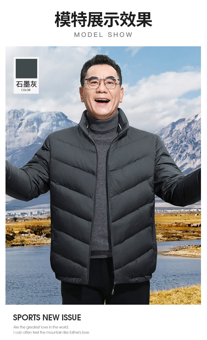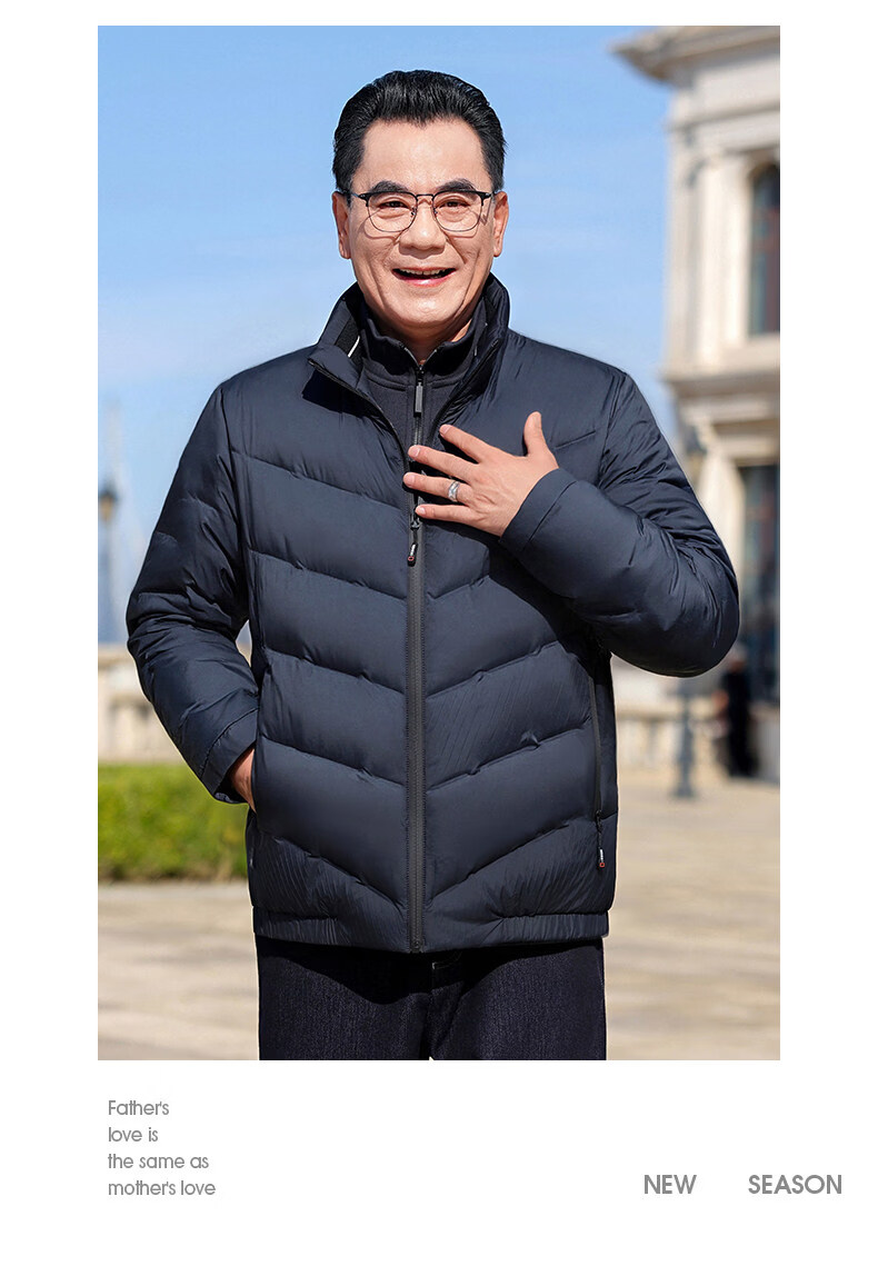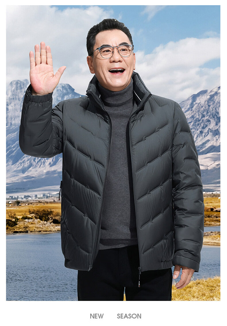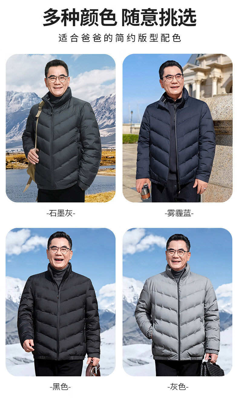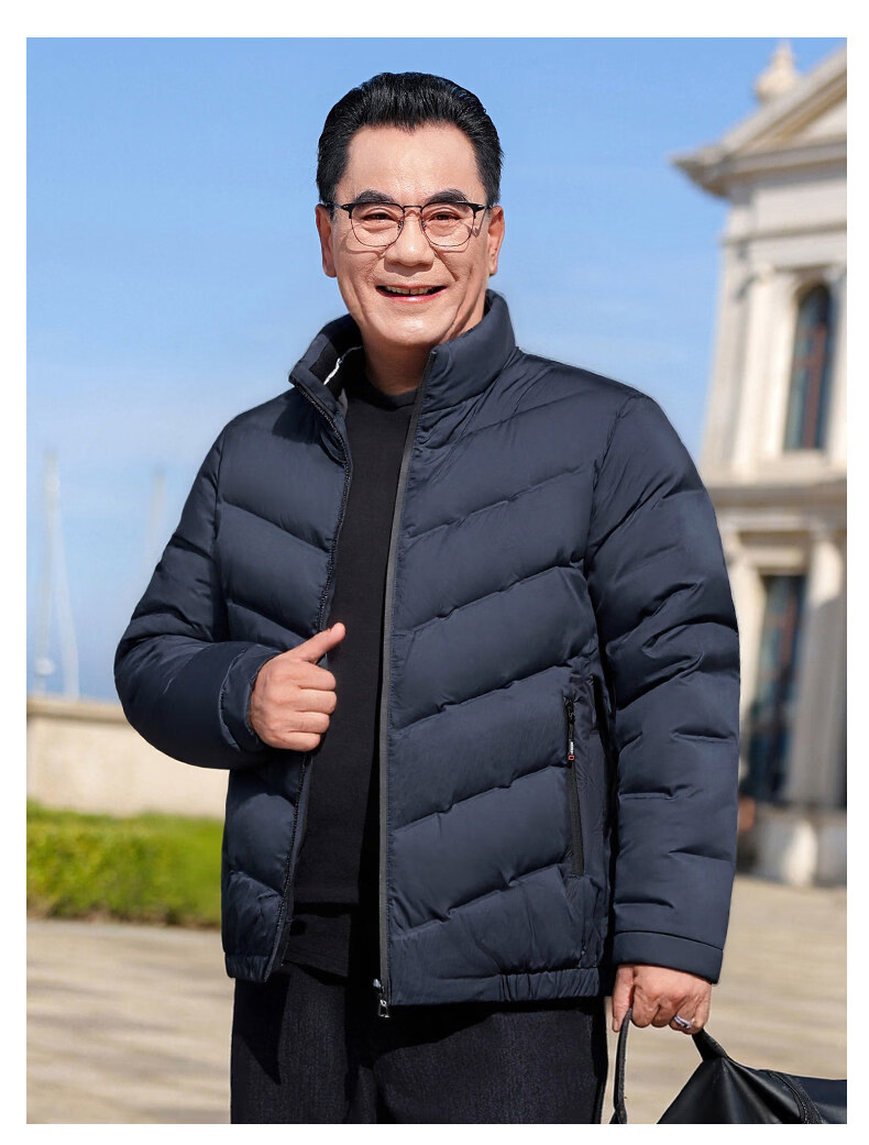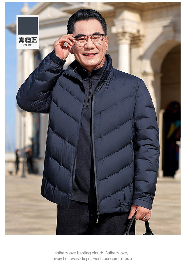 恒源祥轻奢中老年男士羽绒服冬季轻薄保暖外套爸爸装2026新款百搭上衣 雾霾蓝 M 170 【适合95斤-115斤】