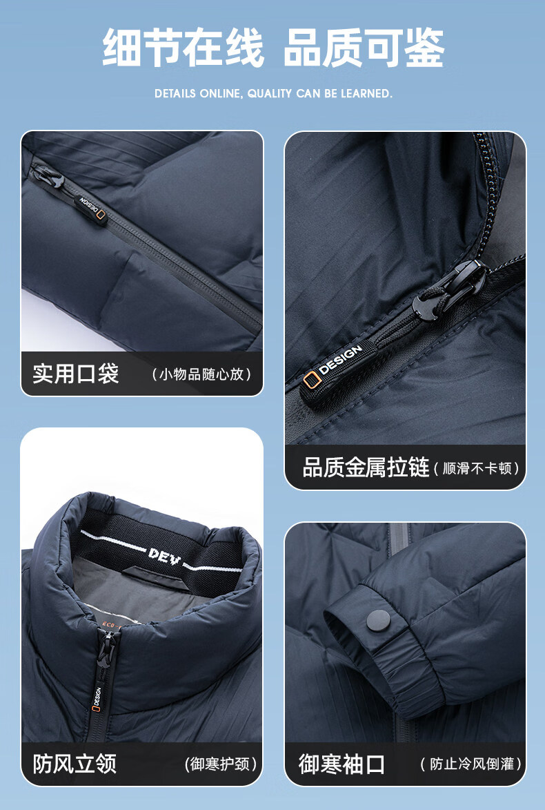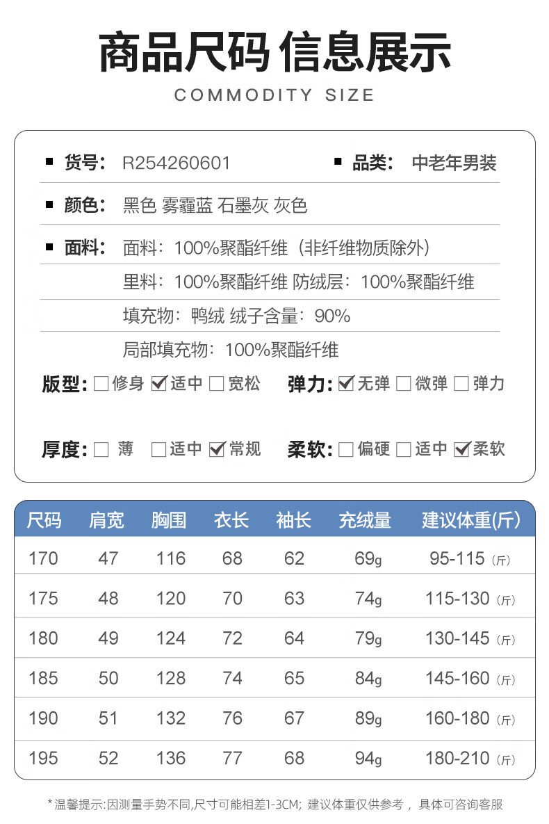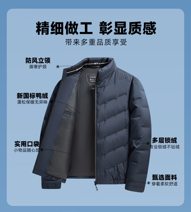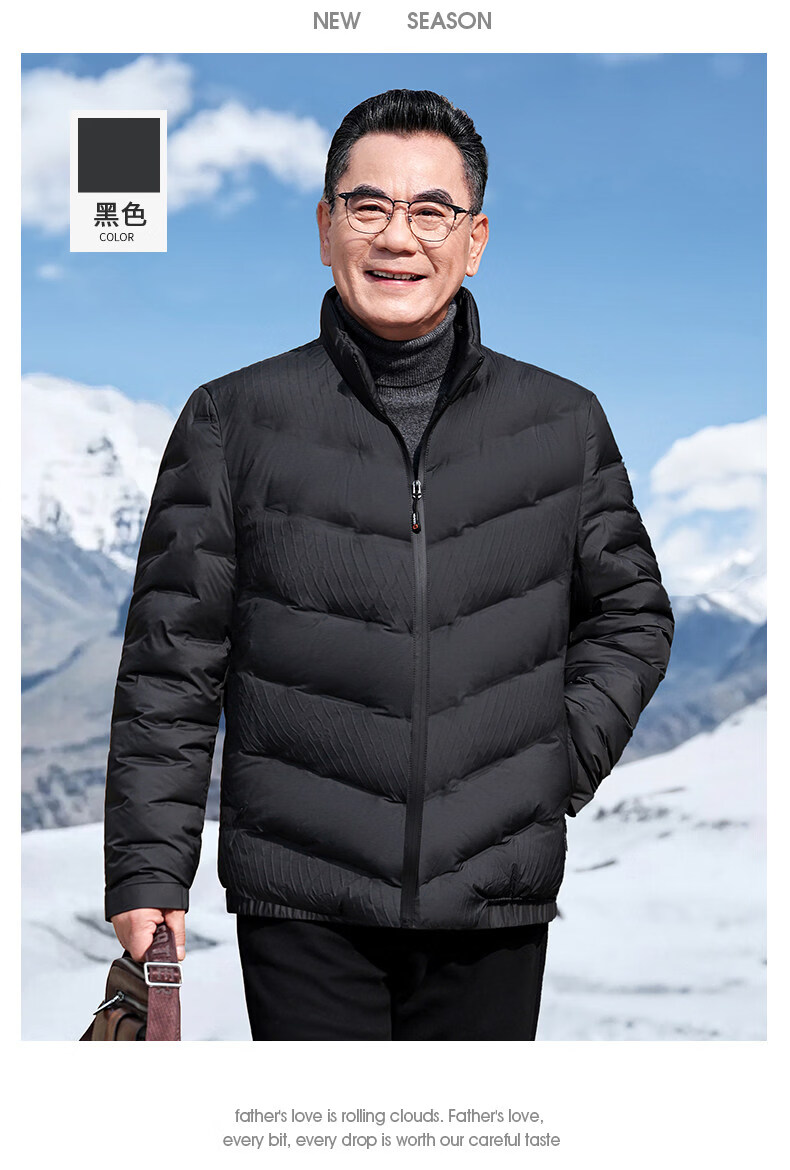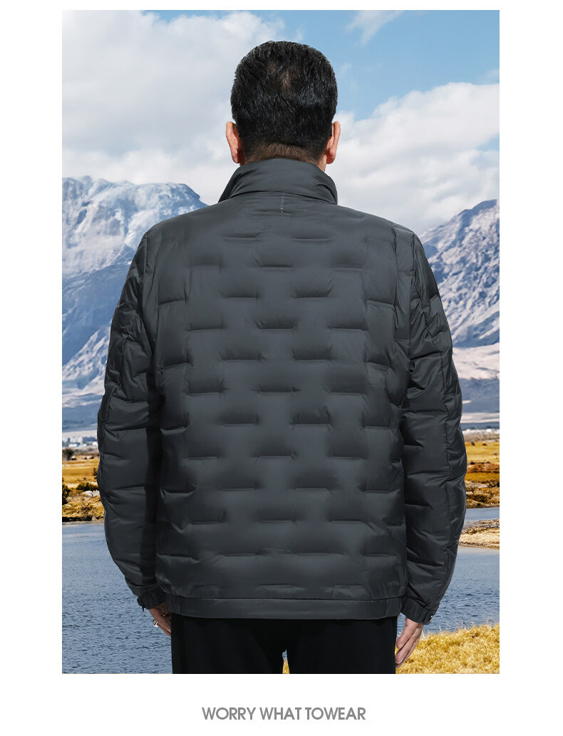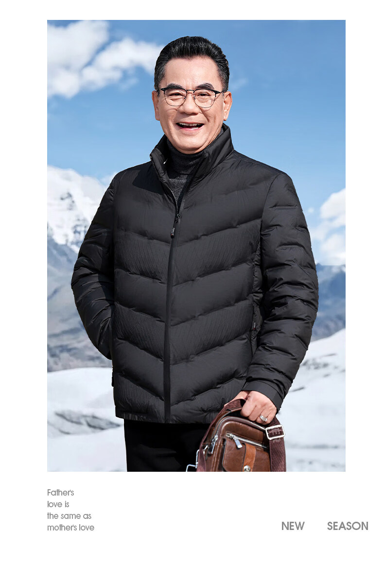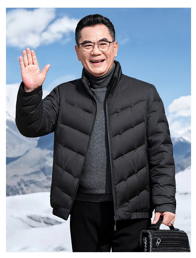 恒源祥轻奢中老年男士羽绒服冬季轻薄保暖外套爸爸装2026新款百搭上衣 雾霾蓝 M 170 【适合95斤-115斤】
