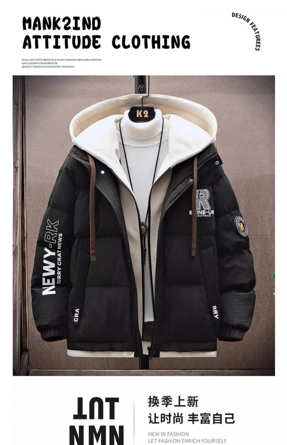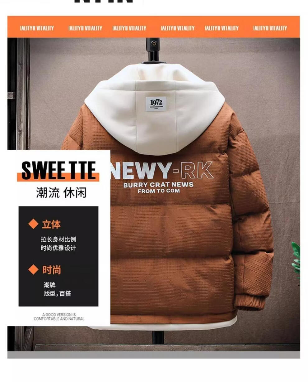 Playboy Men's Down Jacket Short Thickened Winter Jacket Men's Handsome Student Teen 633 Black Thickened M