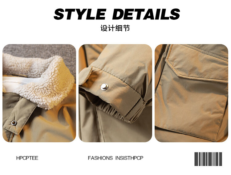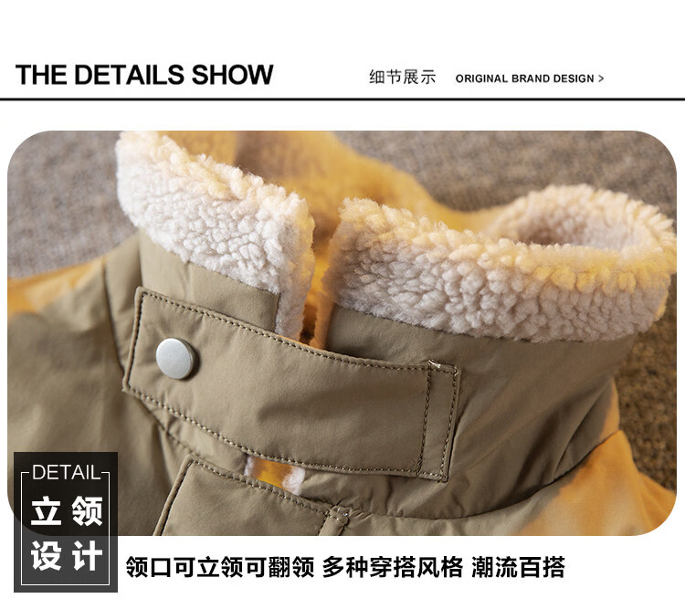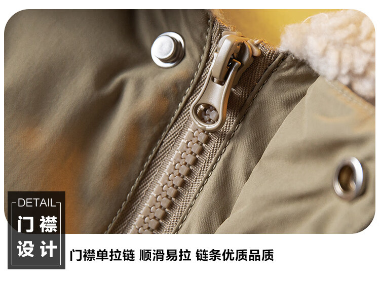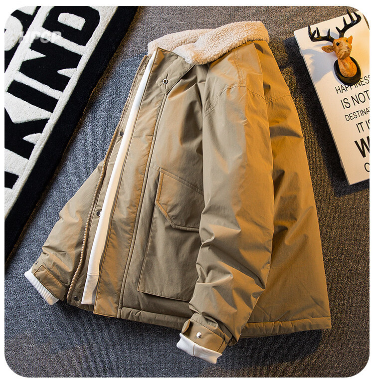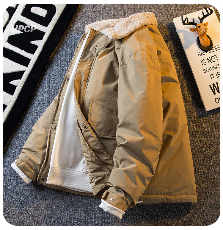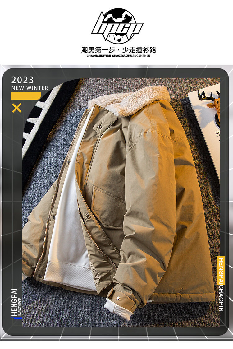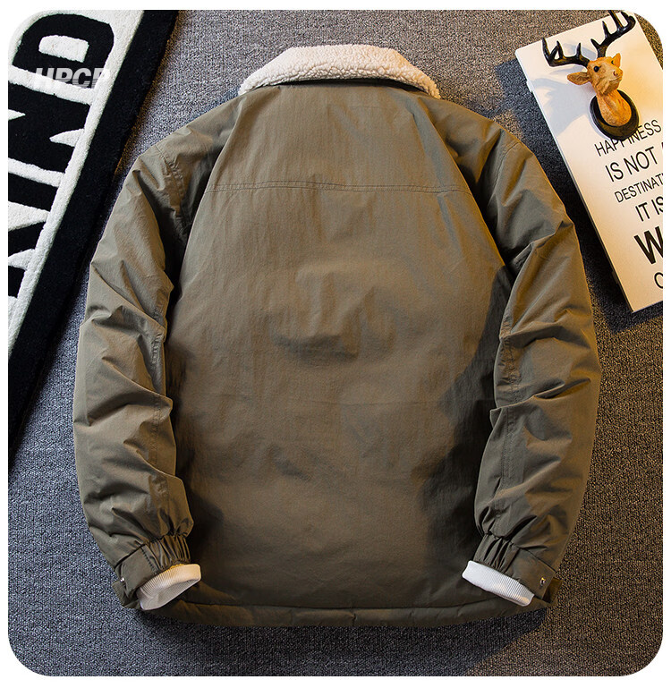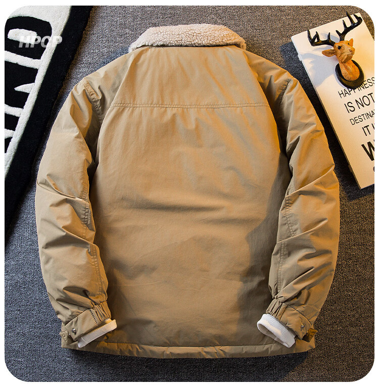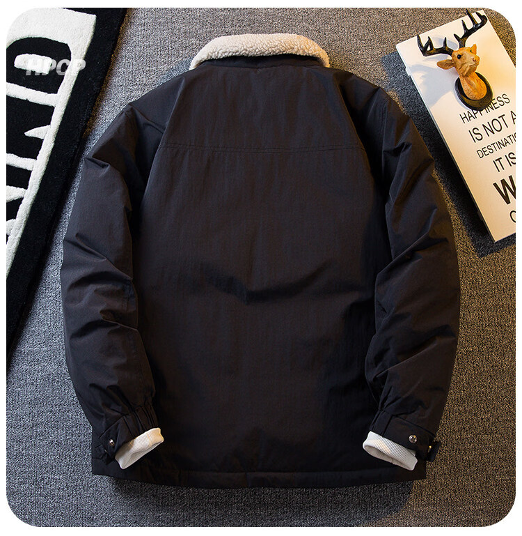 花花公子加厚保暖羊羔领工装羽绒服男秋冬日系覆古工装外套男 军绿色 90绒 L (121-140斤)