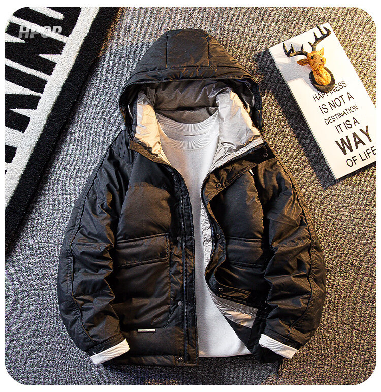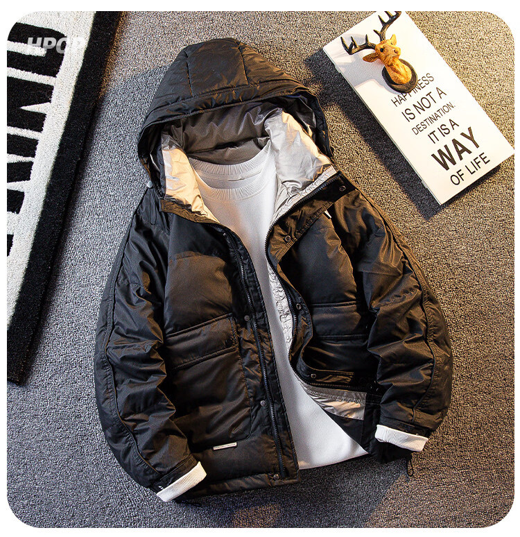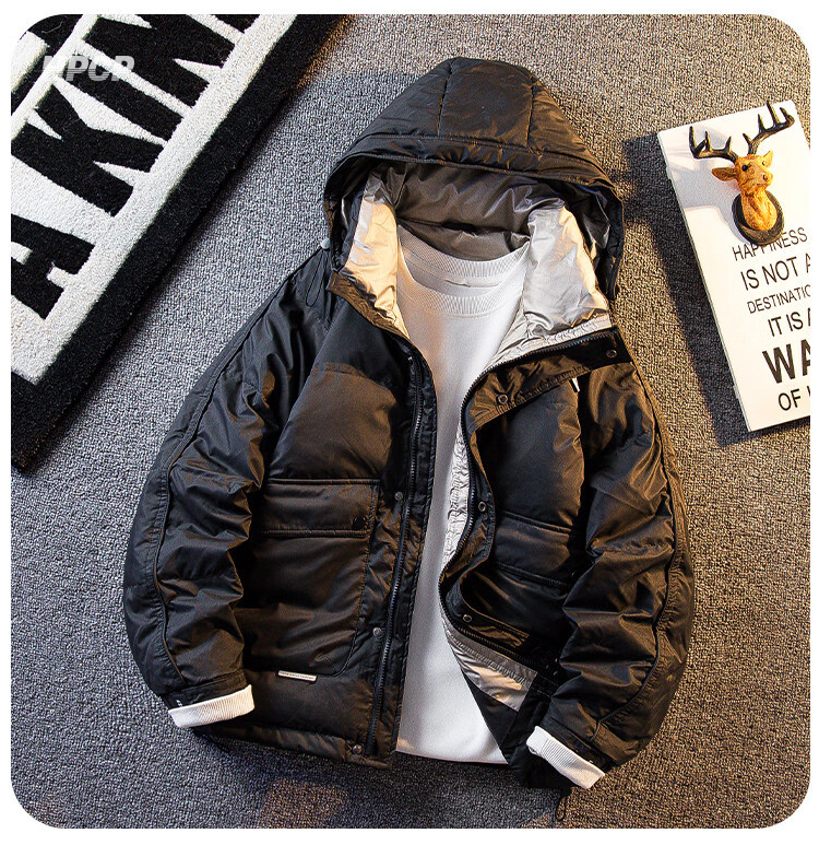 Зимний мужской пуховик Playboy, модный красивый, теплая утолщенная зимняя куртка с капюшоном, черный M (100-115Jin Jin равен 0,5 кг)