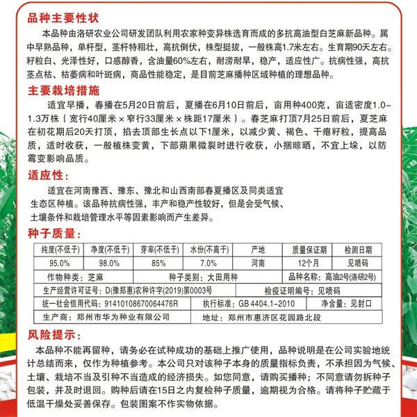 高油2号白芝麻种子稳产高油芝麻种子耐旱杂粮种子大田种植 200克/袋