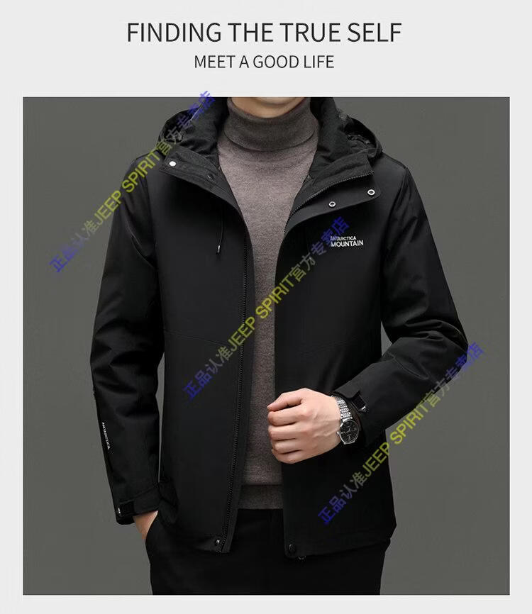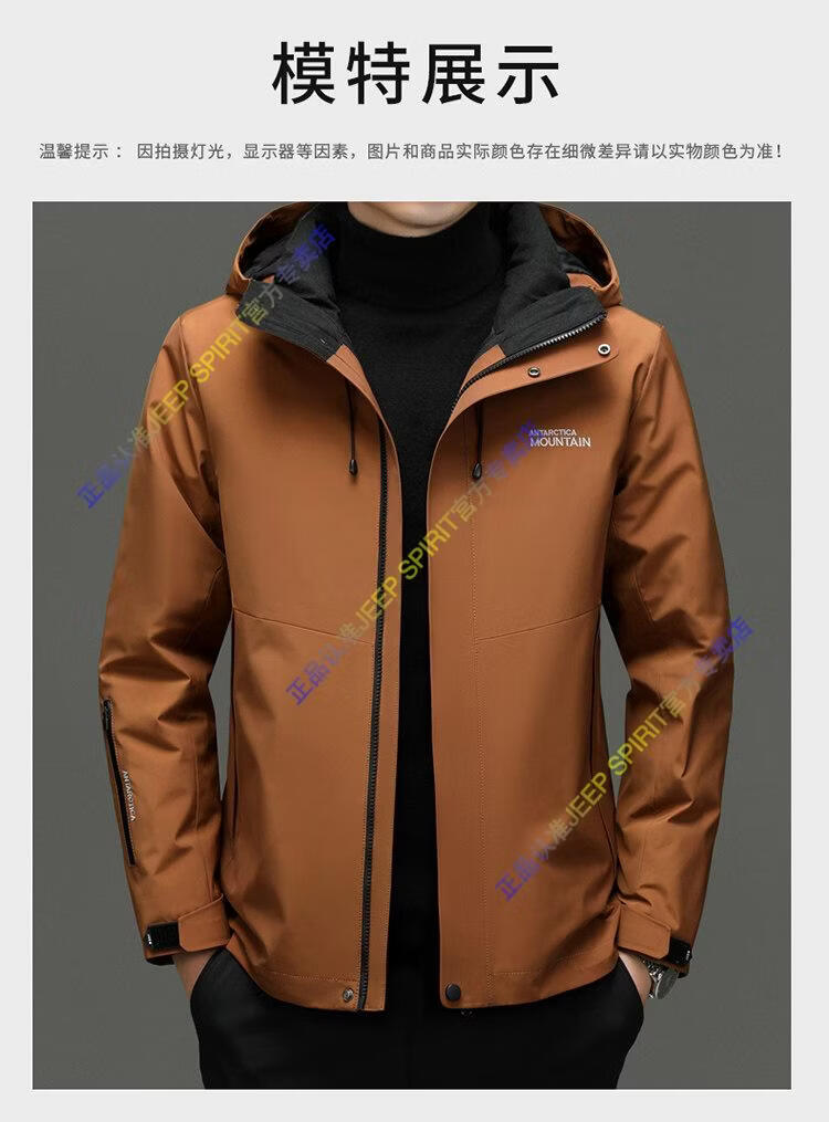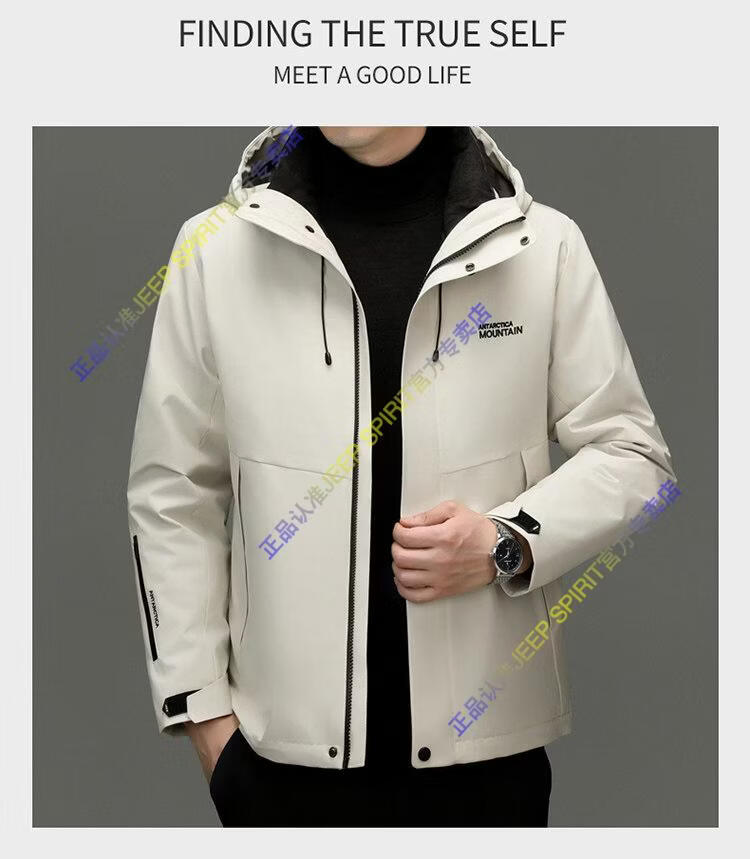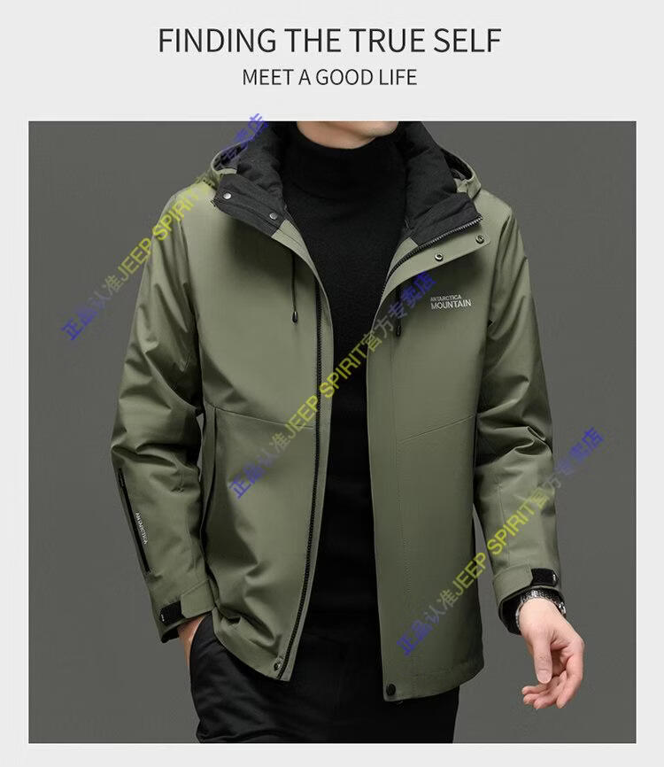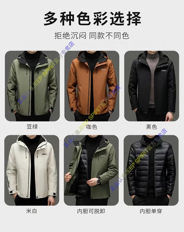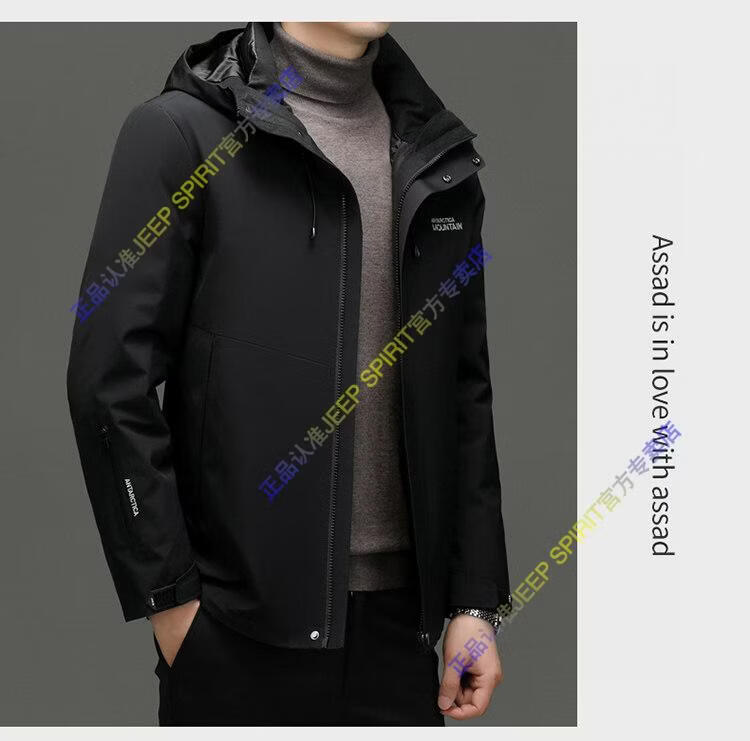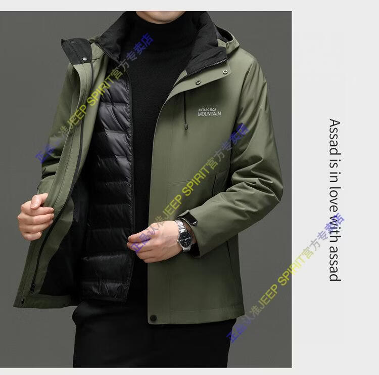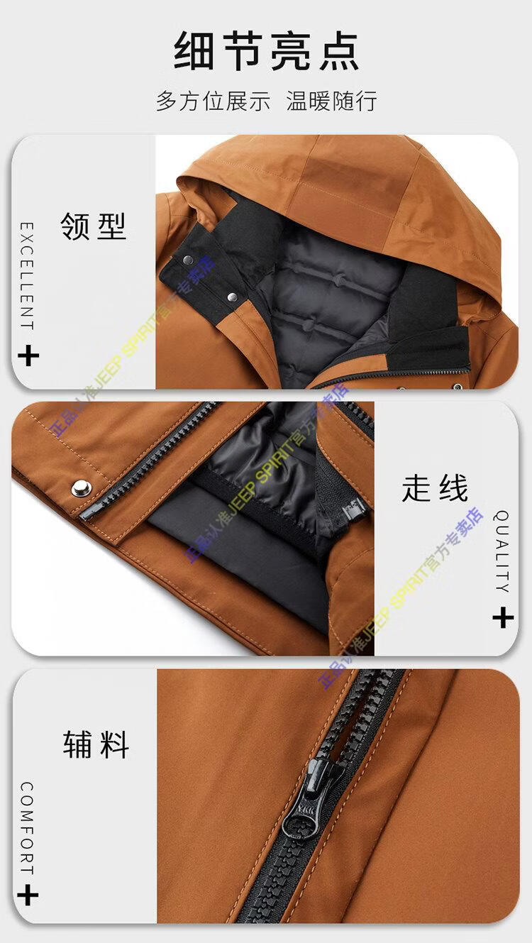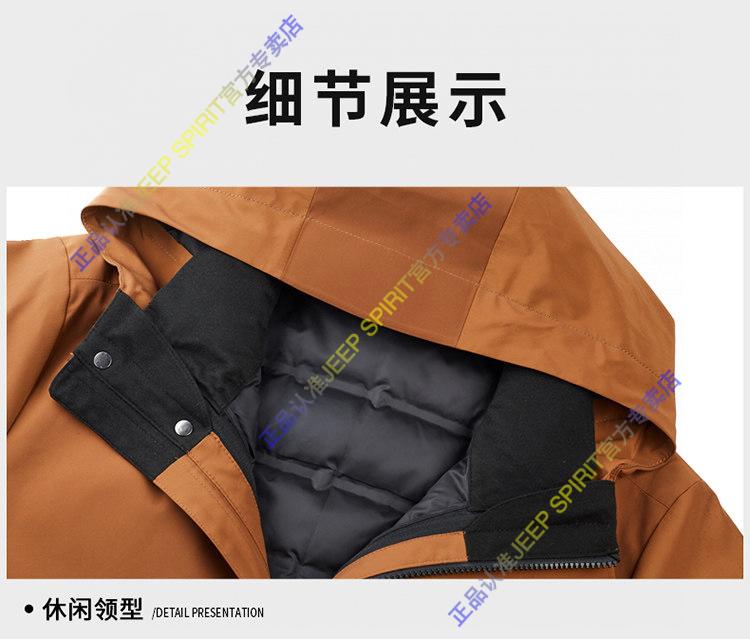 JEEP SPIRIT Jeep Assault Jacket Men's Down Jacket Removable Three-in-One Autumn and Winter Thickened Warm Windproof Jacket Brown S 165 (Recommended 80-110 Jin Jin equals 0.5 kg)