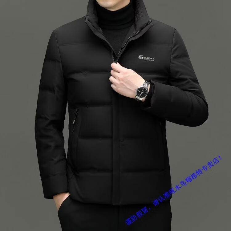 Мужской пуховик Woodpecker, короткий зимний утолщенный теплый белый утиный пух, модная куртка с воротником-стойкой, универсальная моющаяся куртка с защитой от холода 6183 черный M 170