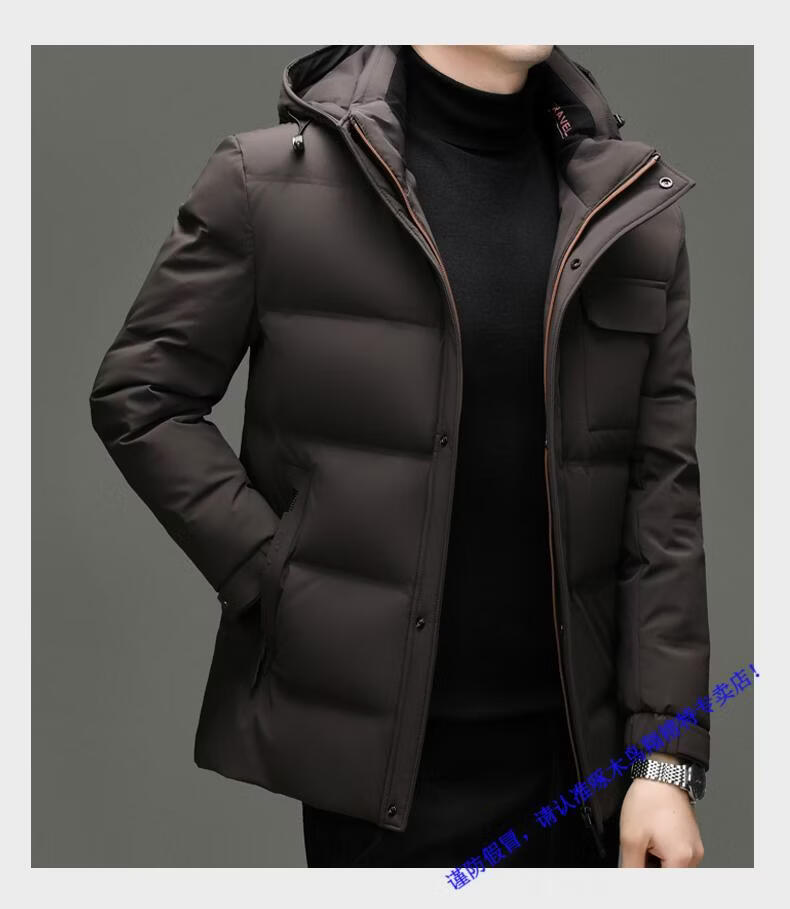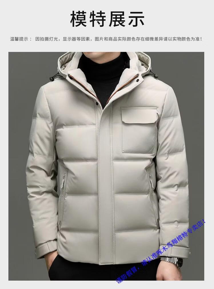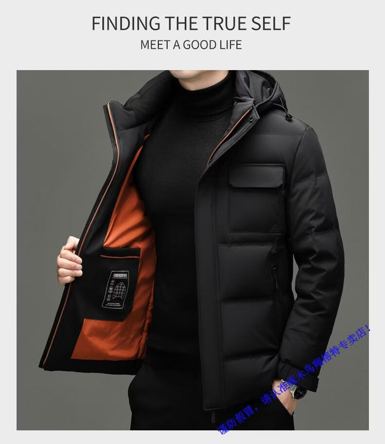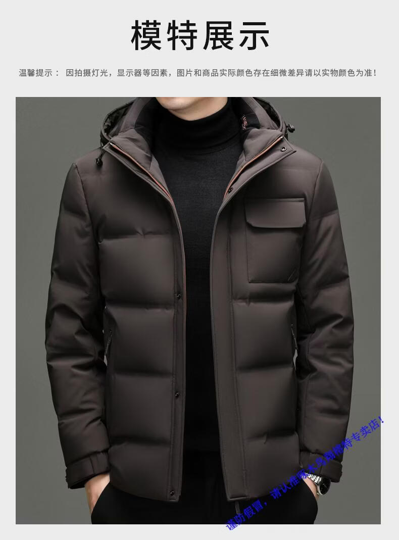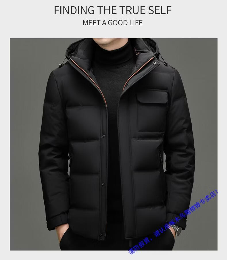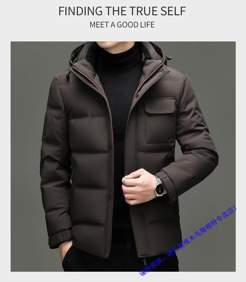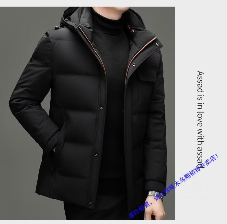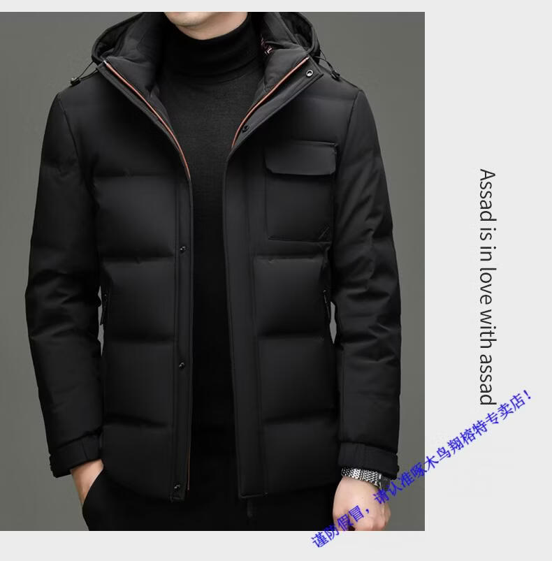 啄木鸟90白鸭绒羽绒服男士冬季加厚中年商务休闲保暖抗寒连帽面包服外套 98866黑色 M 170
