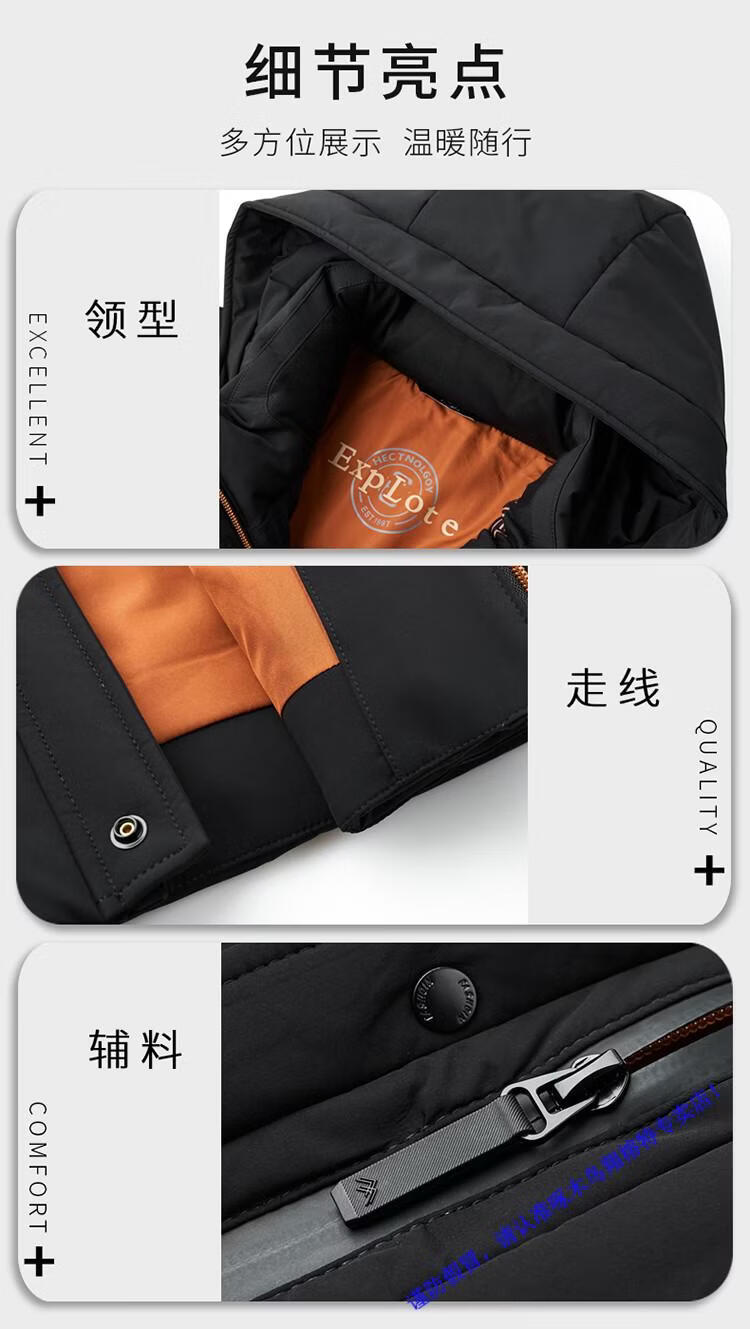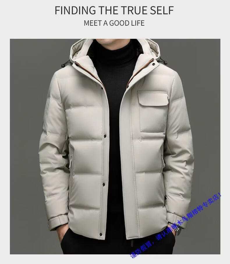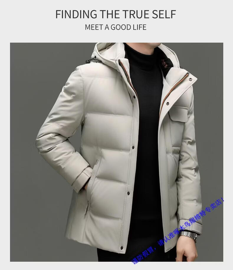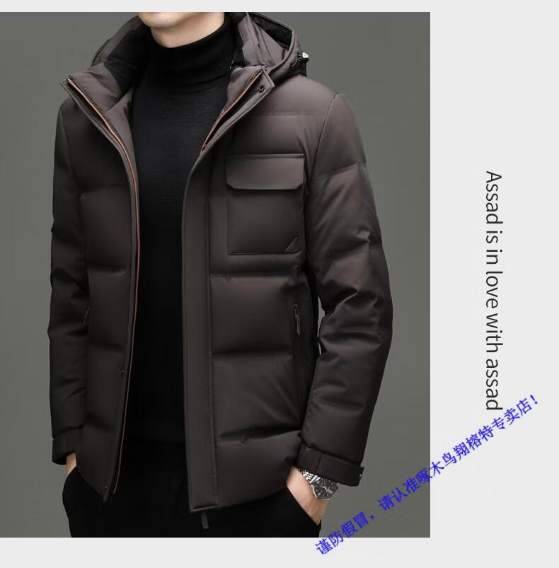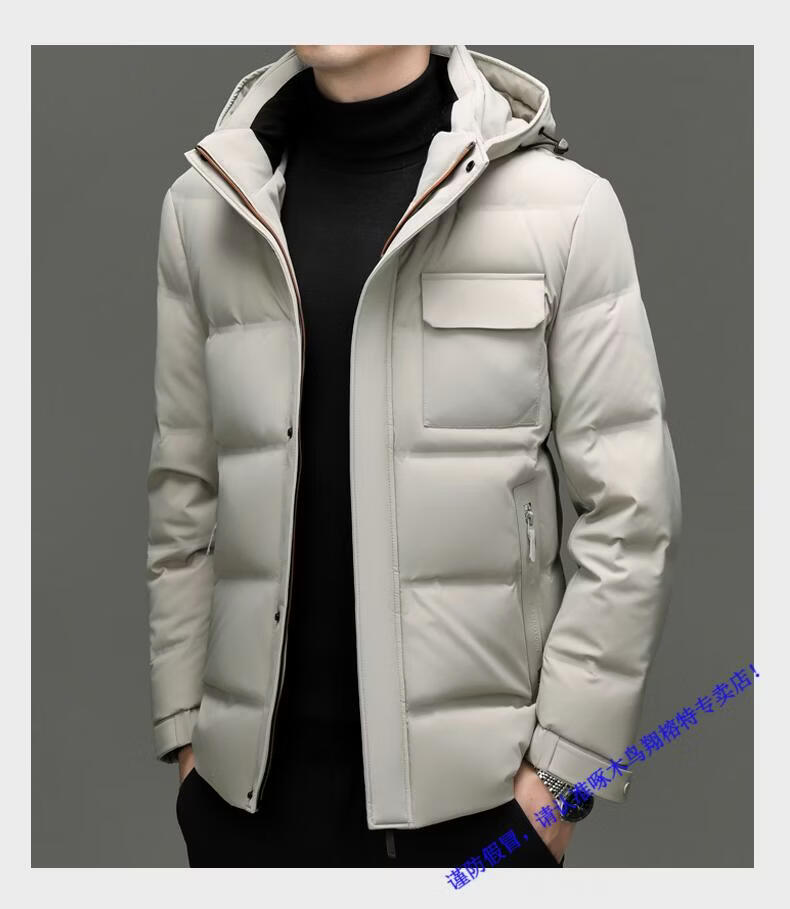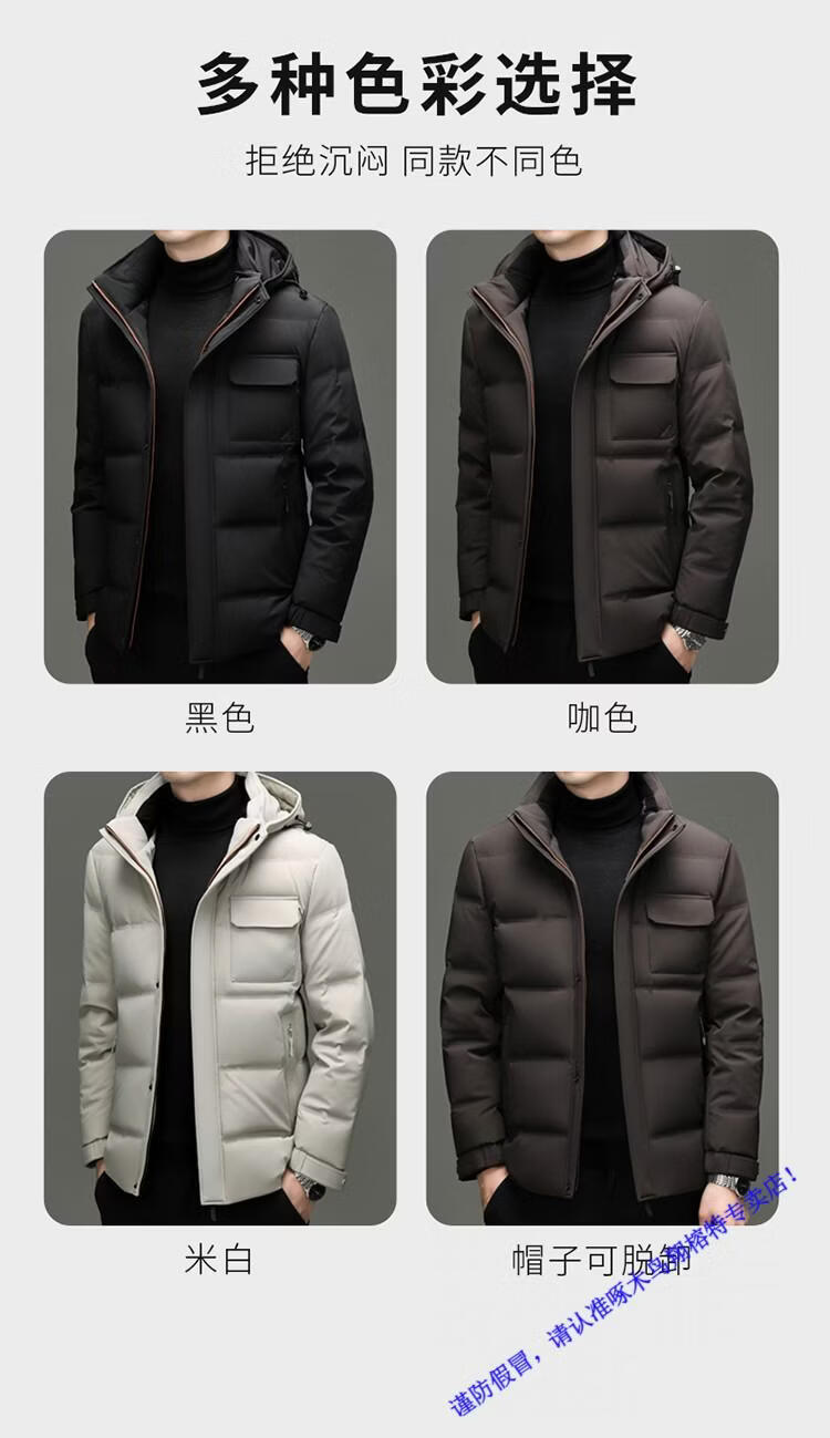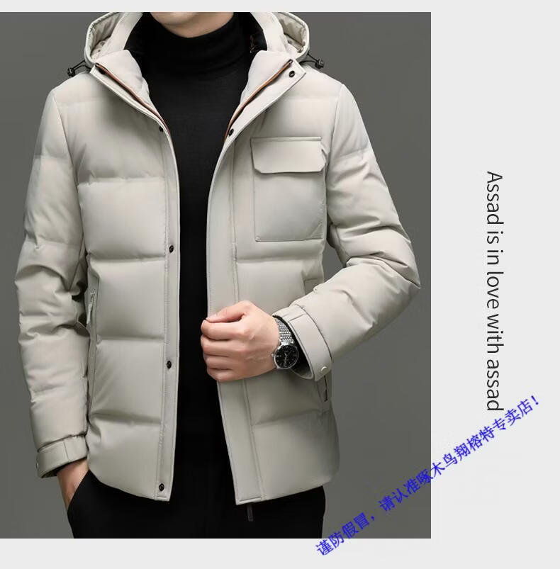 啄木鸟90白鸭绒羽绒服男士冬季加厚中年商务休闲保暖抗寒连帽面包服外套 98866黑色 M 170