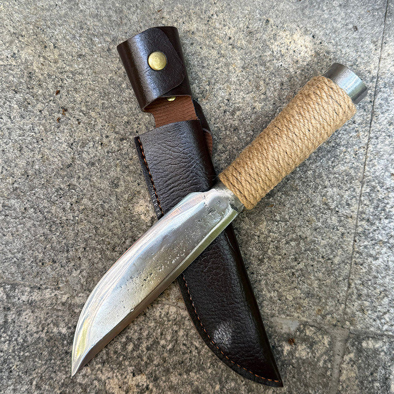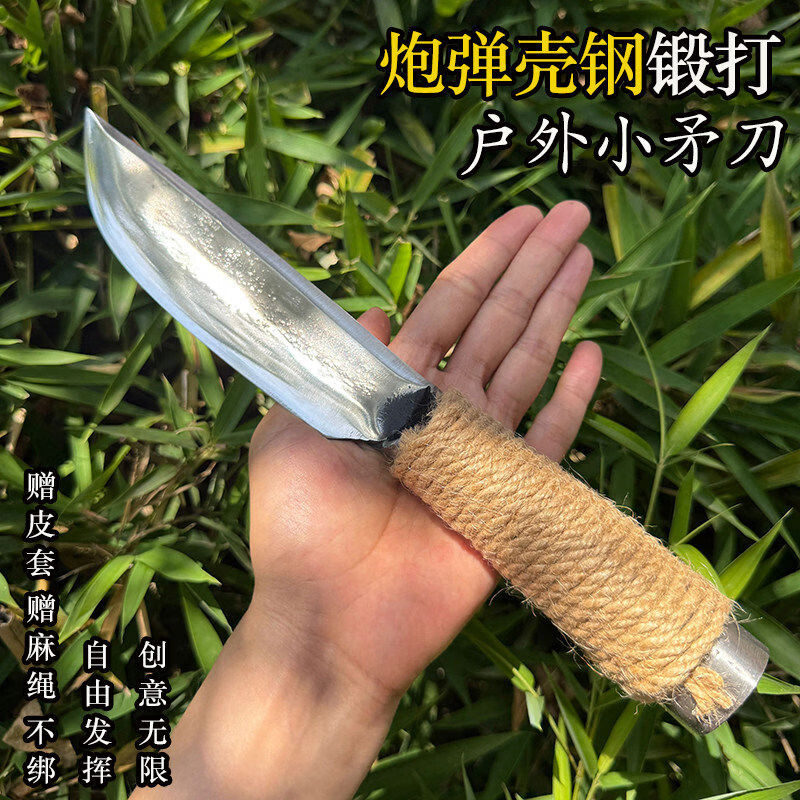 康掌柜屠宰剃骨刀炮弹壳钢锻打户外生存矛刀分割刀牛羊肉分割手把肉小刀 白 15cm