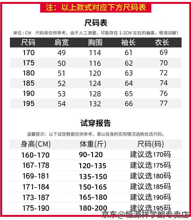 China (cm) 165 / 88-90 170 / 96-98 175 / 108-110 180 / 118-122 185 / 126-130