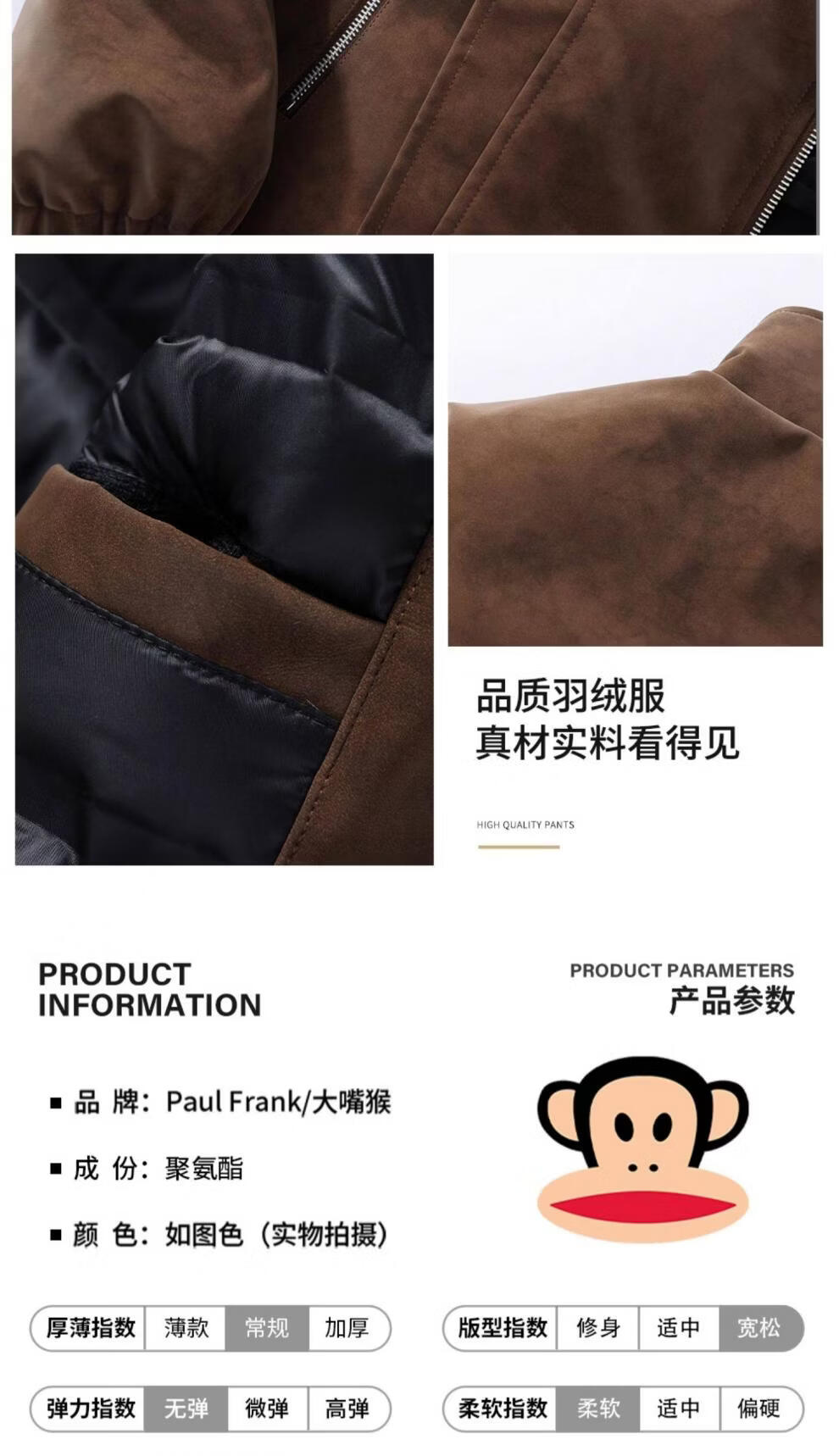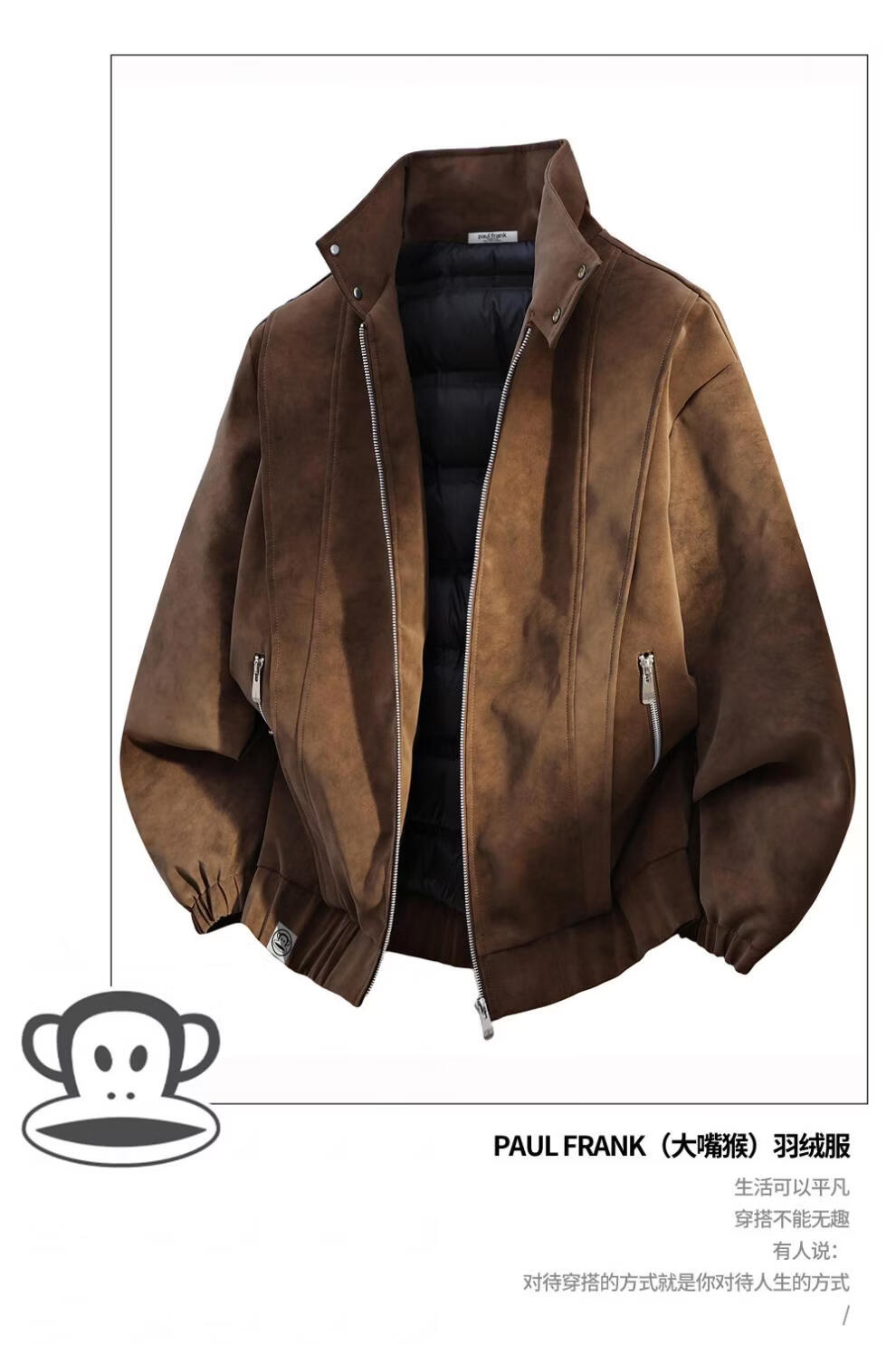 Мужской повседневный пуховик Paul Frank в японском стиле ретро, зима 2025, новинка 2025 года, свободный удобный модный модный бренд универсальный модный топ коричневый 90% белый утиный пух 4XL рекомендуется 185-220Jin Jin равен 0,5 кг