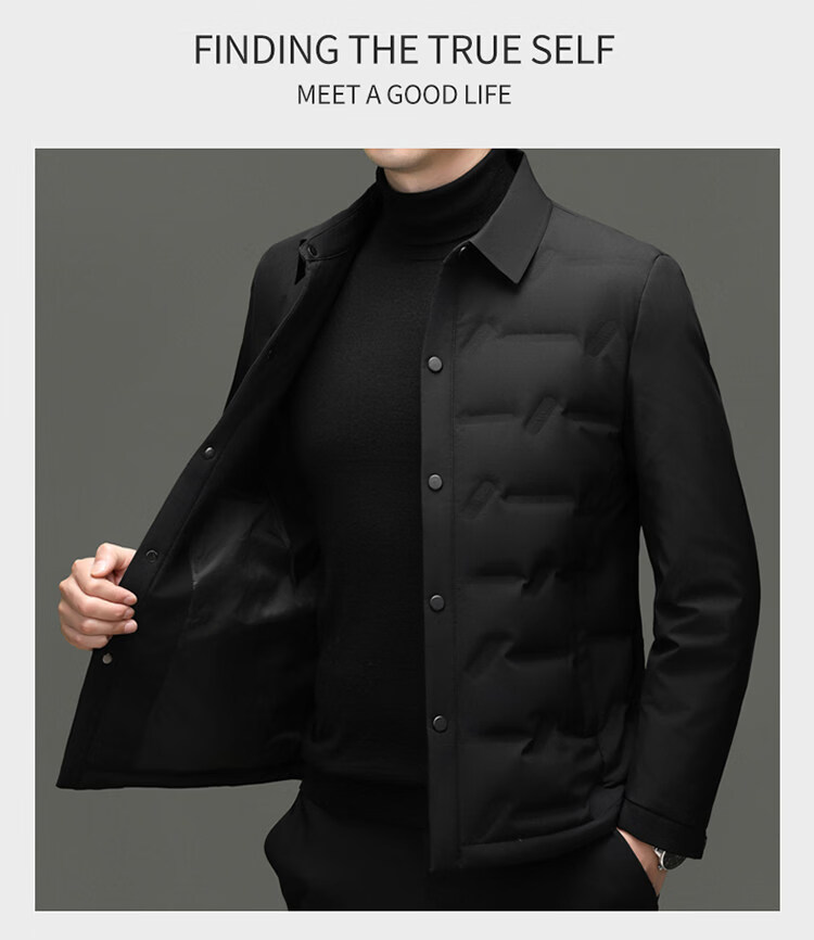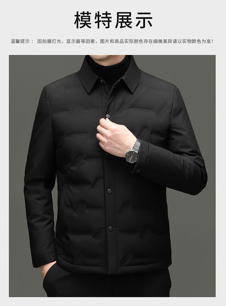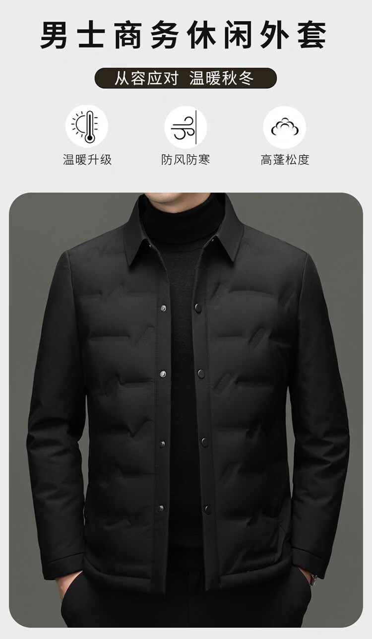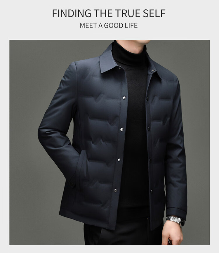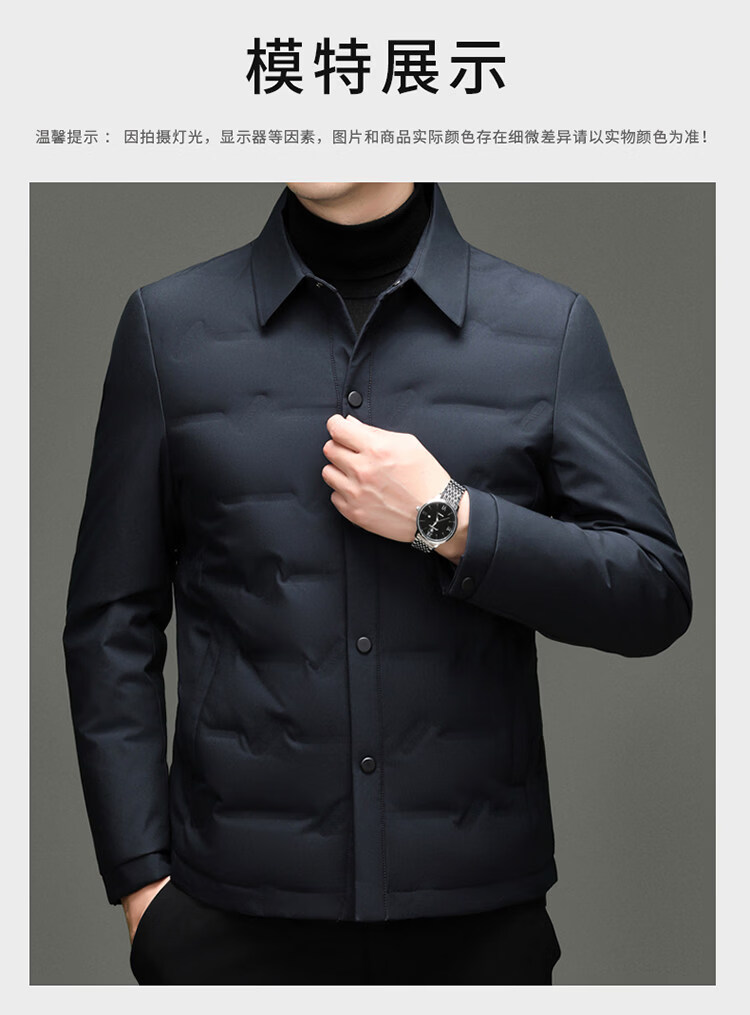 Hengyuanxiang Men's Lightweight Down Jacket 2026 New Lightweight Winter Jacket Business Lapel Casual Top Men's Winter Clothes YR25622 Navy Blue M 170_90-120Jin Jin is equal to 0.5 kg