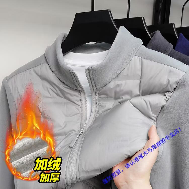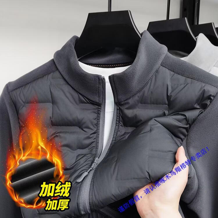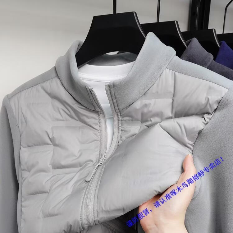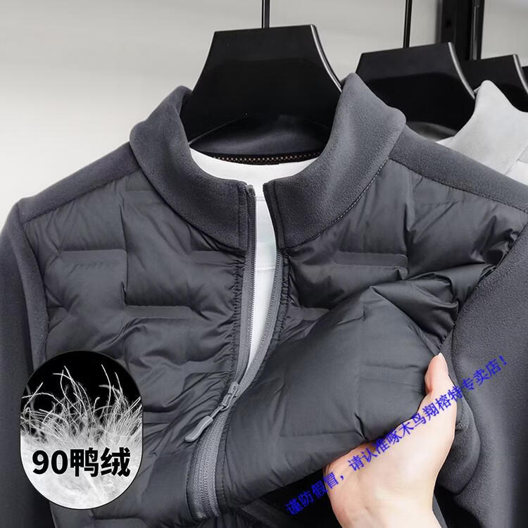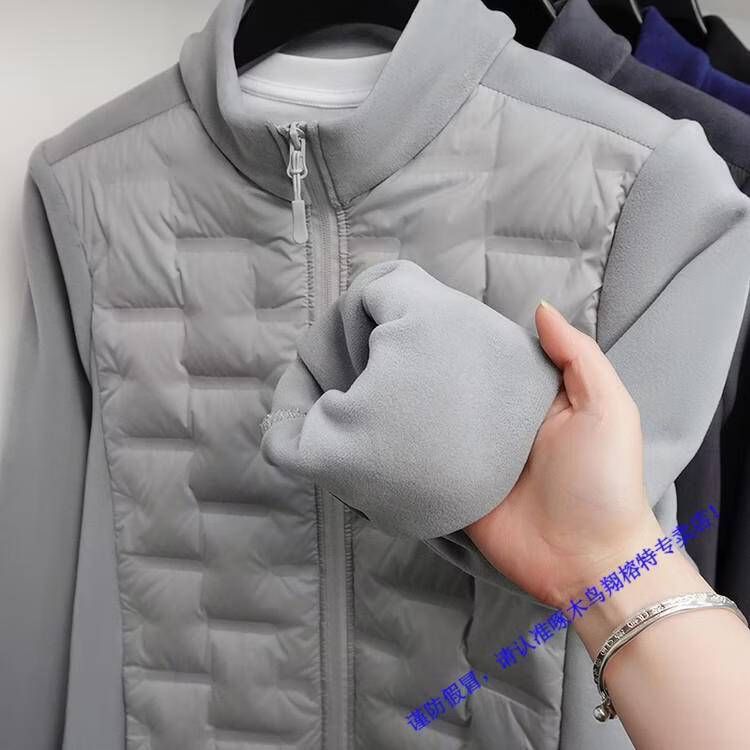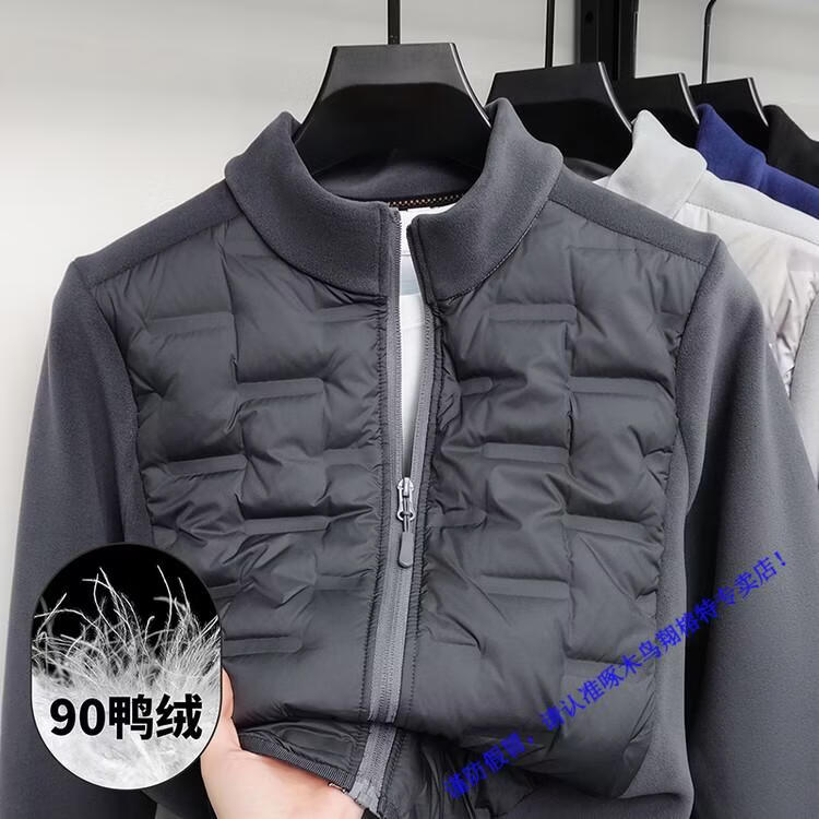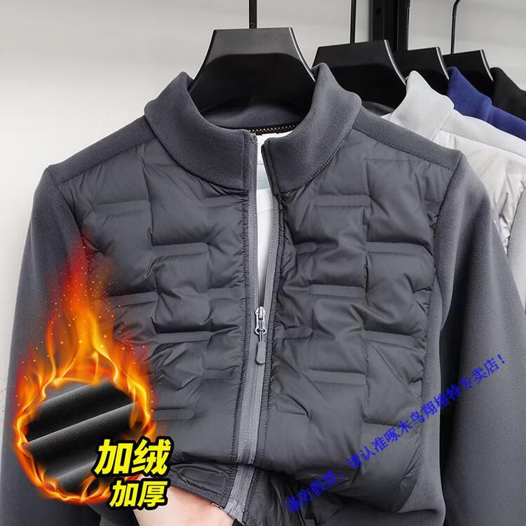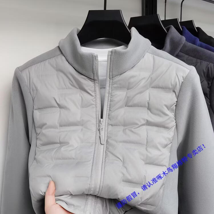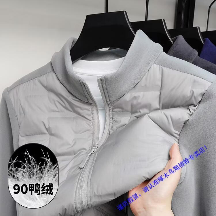 Дятел, тонкий белый утиный пух, мужской лоскутный пуховик для молодых и средних лет, осенне-зимний повседневный одинарный флисовый жилет с воротником-стойкой YR258168 светло-серый 2XL
