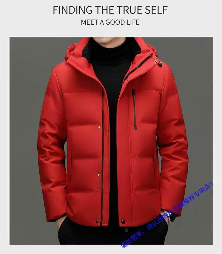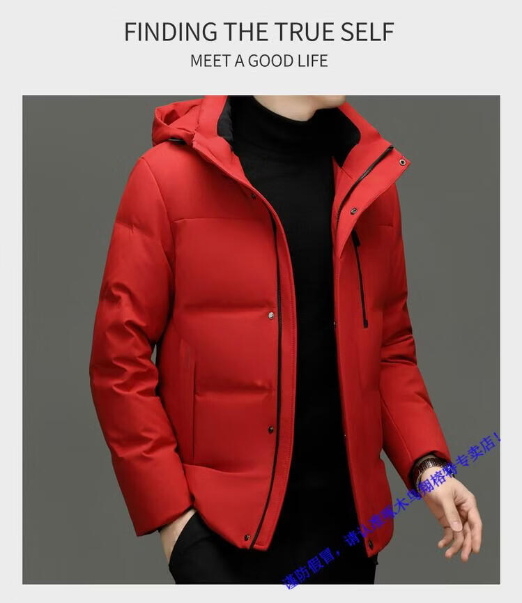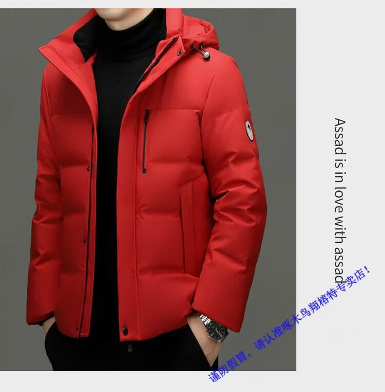 Woodpecker Short Down Jacket Men's Winter 2026 New 90 White Duck Down Thickened Warm Lock Hooded Bread Jacket RR-YR9829 Red M