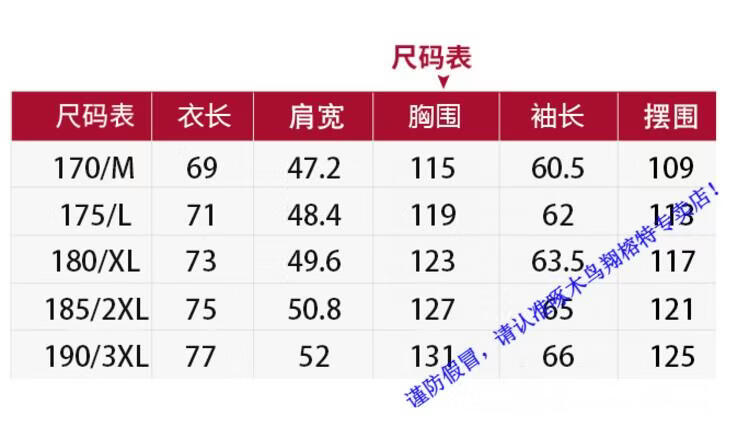 China (cm) 165 / 88-90 170 / 96-98 175 / 108-110 180 / 118-122 185 / 126-130