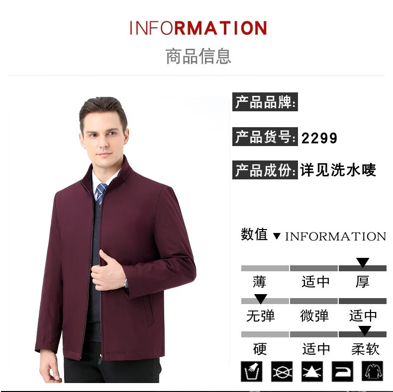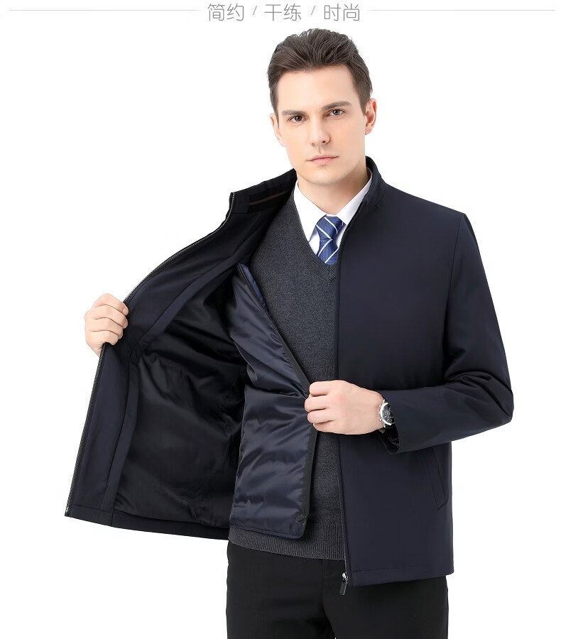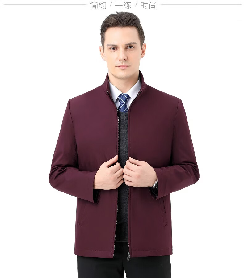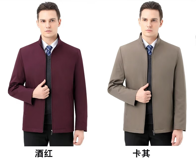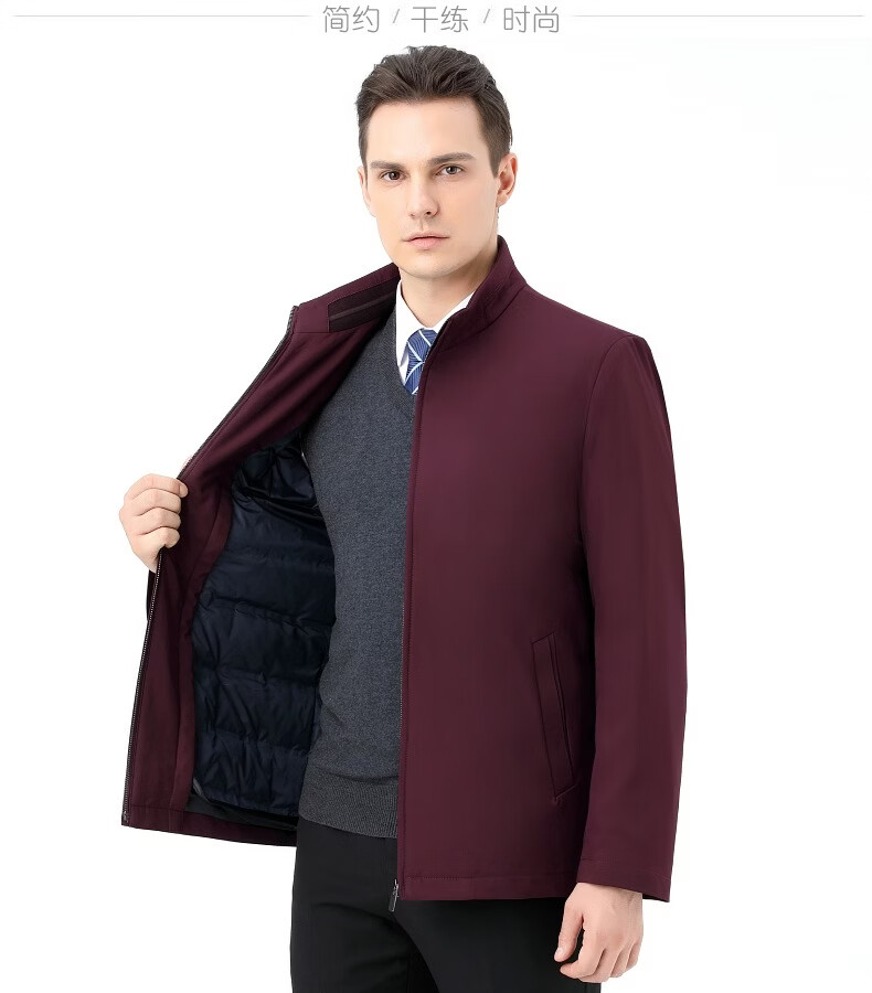 KBXNG Мужская пуховая куртка со съемной подкладкой и воротником-стойкой, зимняя новая деловая повседневная теплая одежда для среднего и пожилого возраста для папы 2299 Бордовый (съемная подкладка) M 170/48
