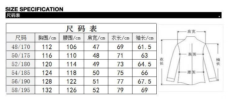China (cm) 165 / 88-90 170 / 96-98 175 / 108-110 180 / 118-122 185 / 126-130