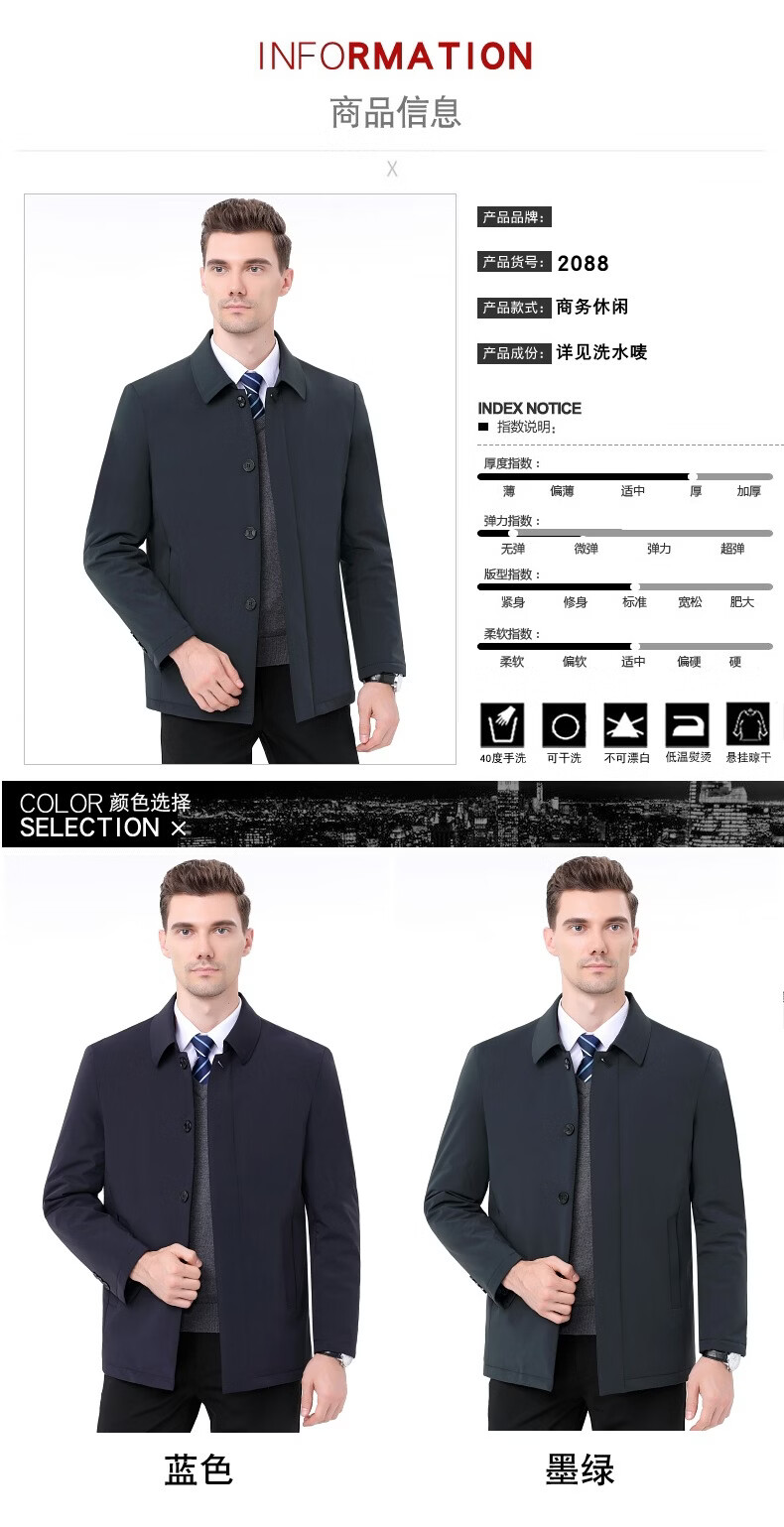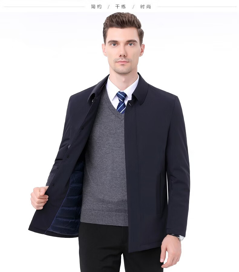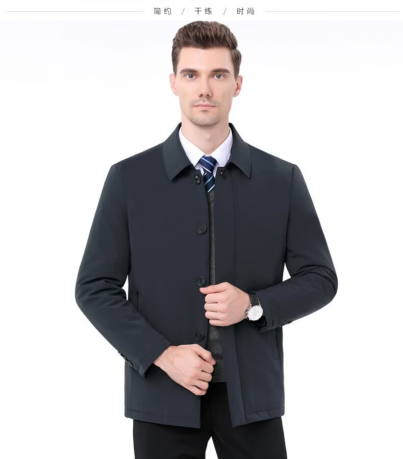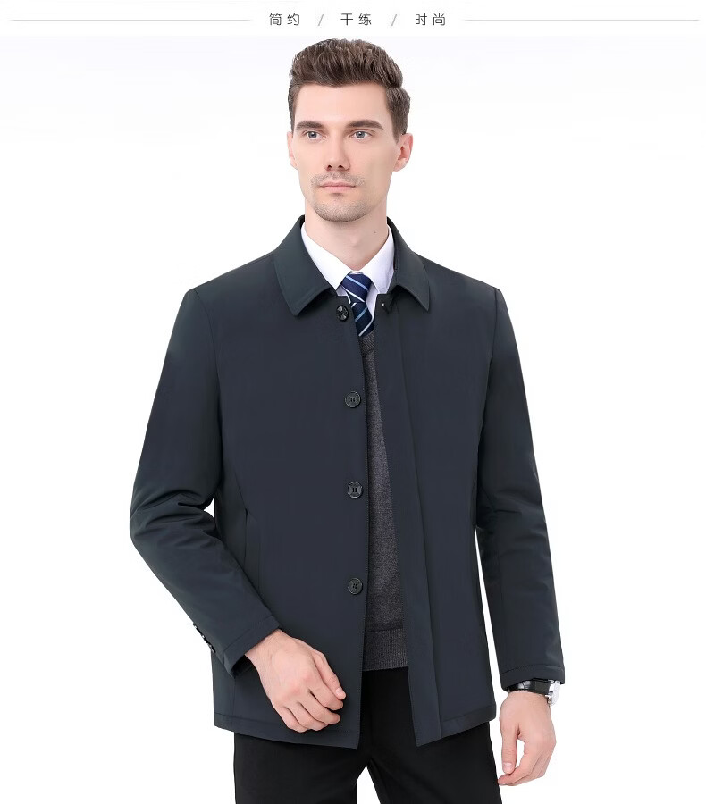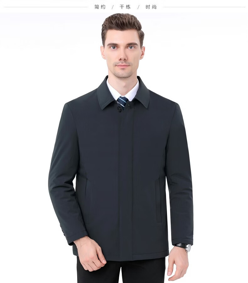 KBXNG Jinba Winter New Down Jacket Men's Middle-aged and Elderly Business Mid-Length Men's Jacket Dad's Casual Lapel Feather 2088 Dark Green M 170/88A ( )