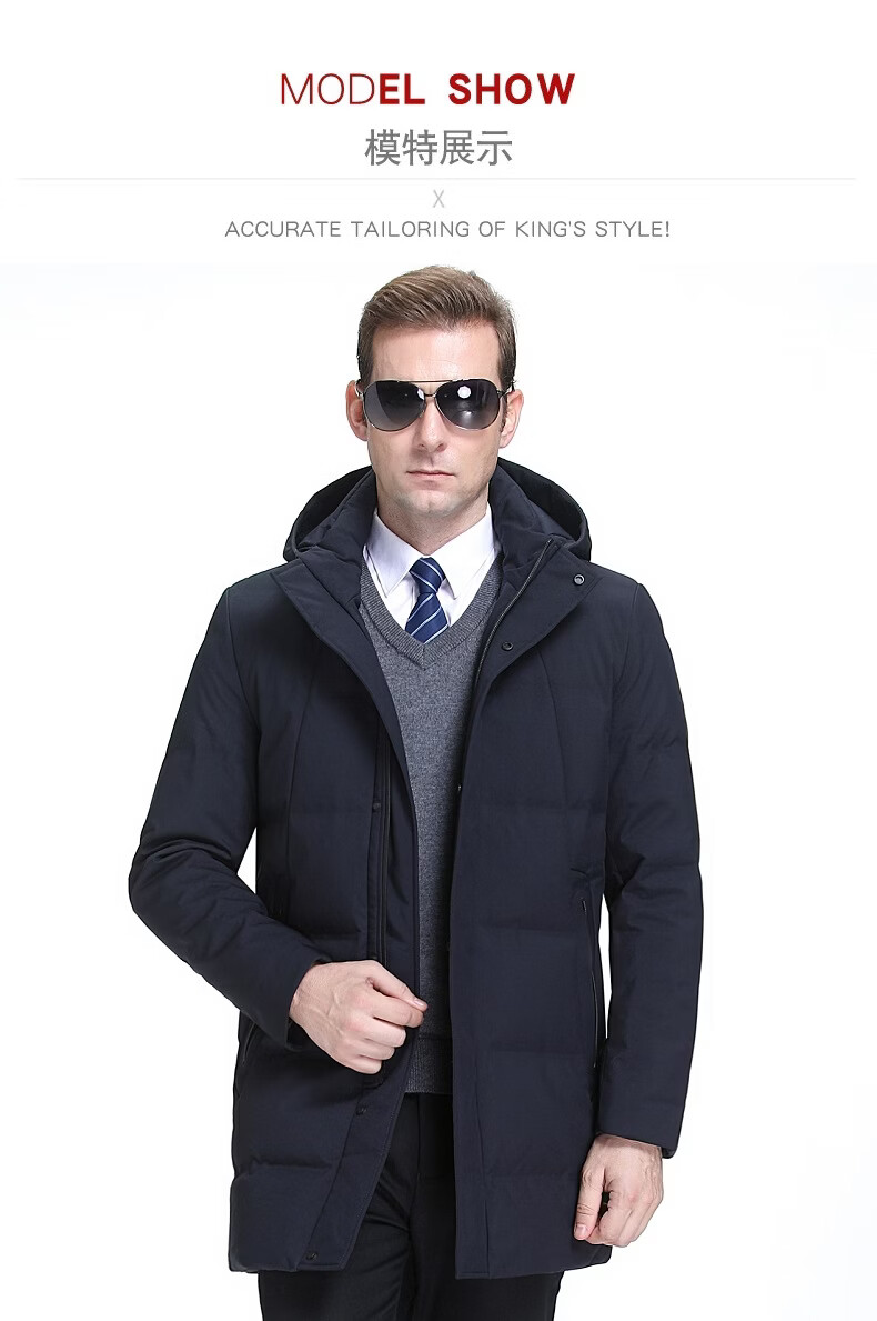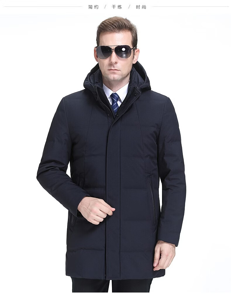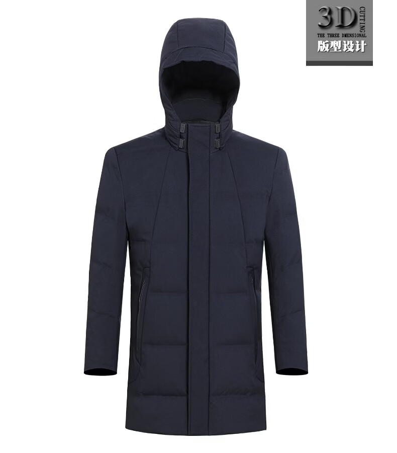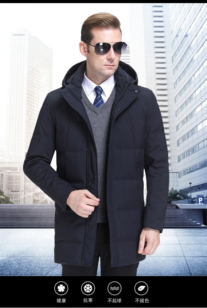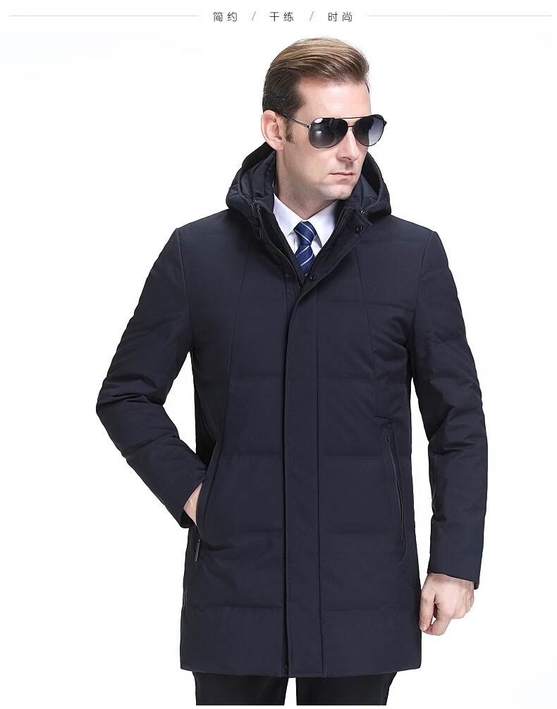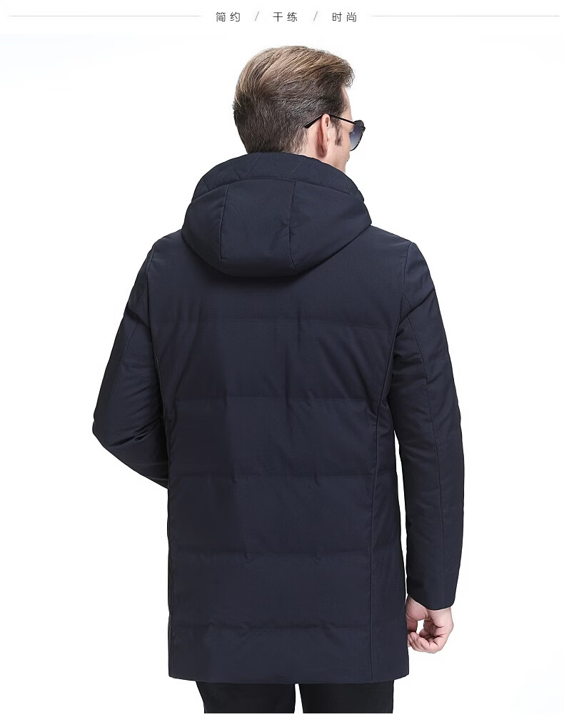 KBXNG Jinba Мужской пуховик средней длины Утолщенный белый утиный пух с капюшоном Корейская одежда для пап Свободная повседневная верхняя одежда для среднего и пожилого возраста 2063 Синий XL 180/52