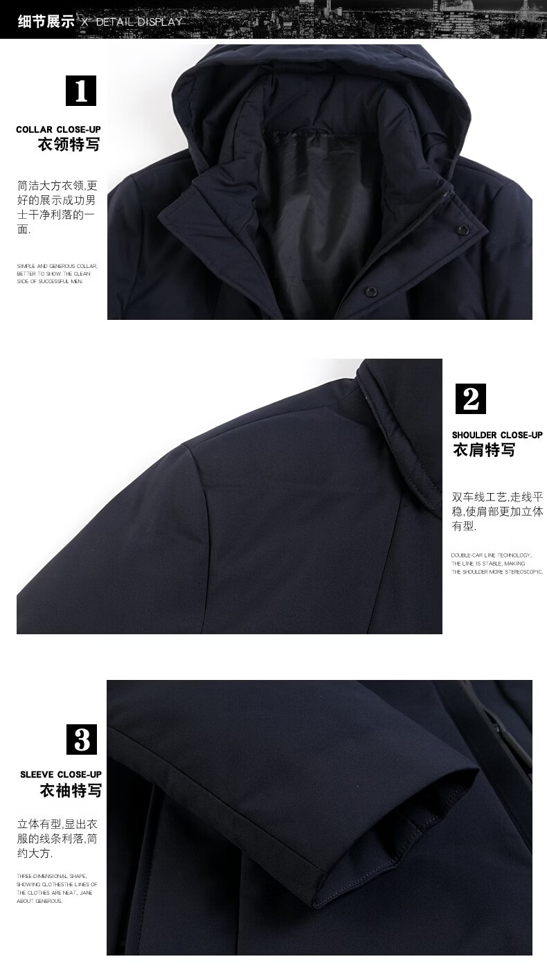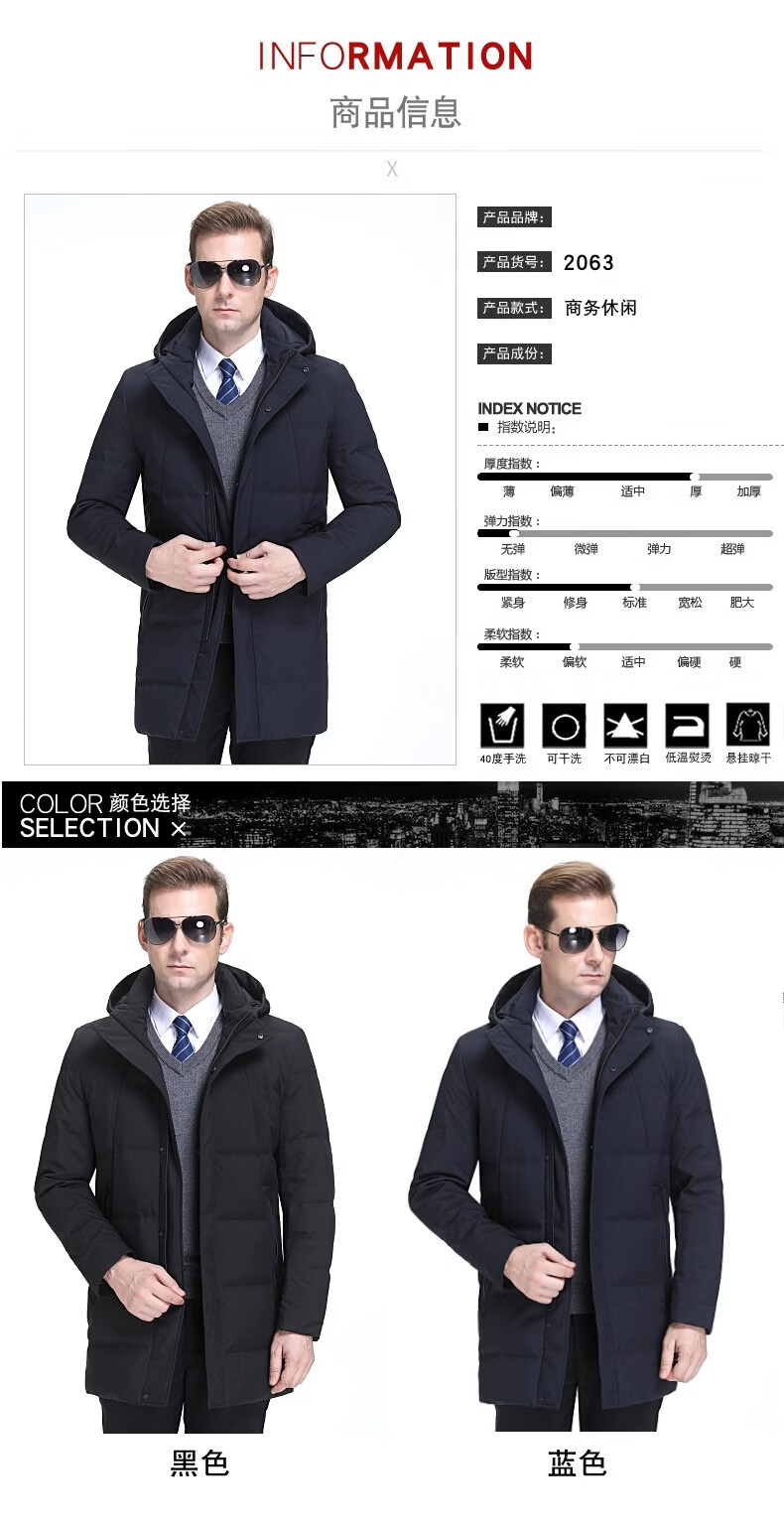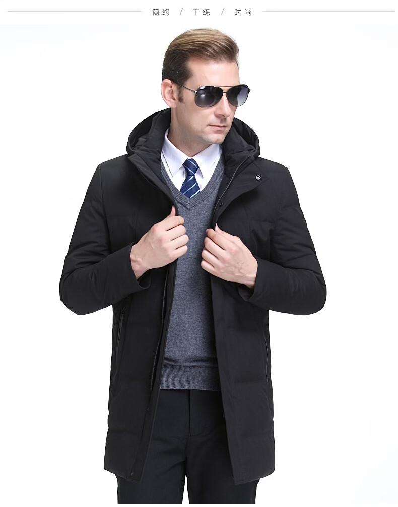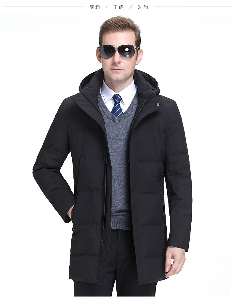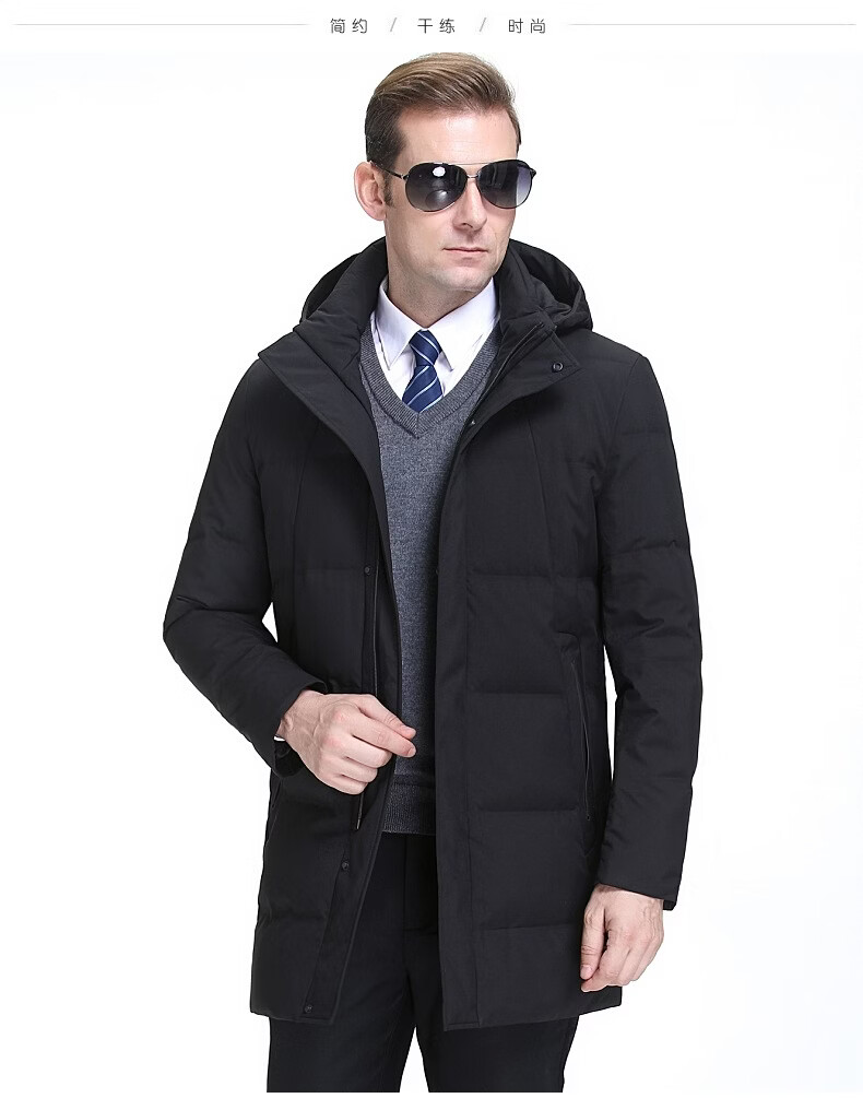 KBXNG Jinba Мужской пуховик средней длины Утолщенный белый утиный пух с капюшоном Корейская одежда для пап Свободная повседневная верхняя одежда для среднего и пожилого возраста 2063 Синий XL 180/52