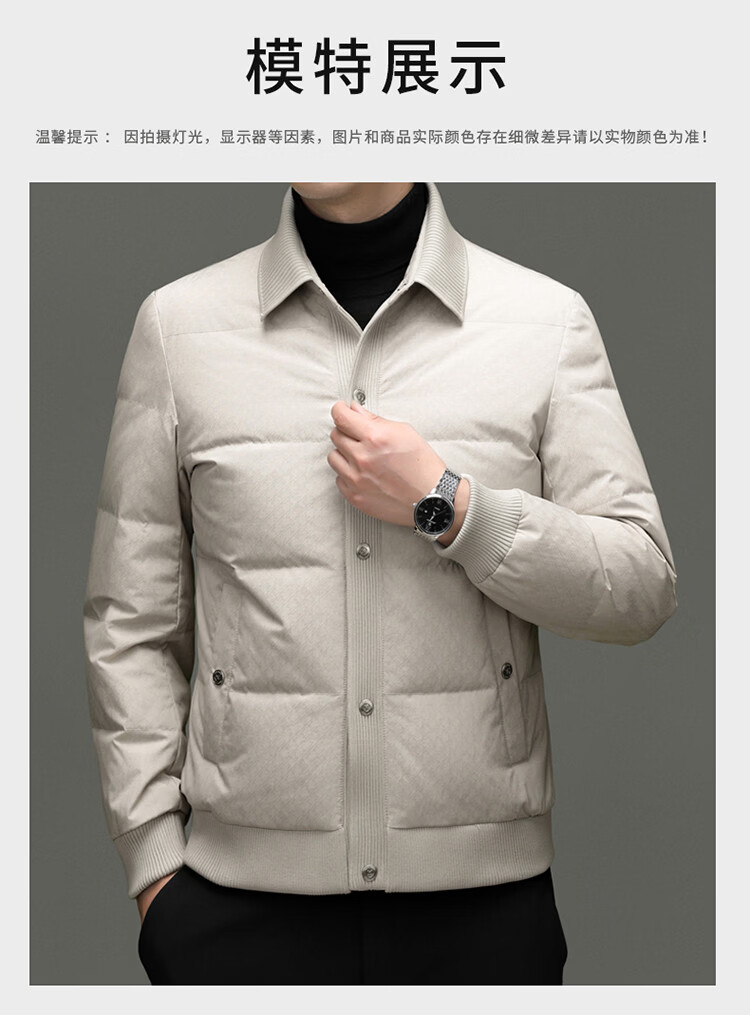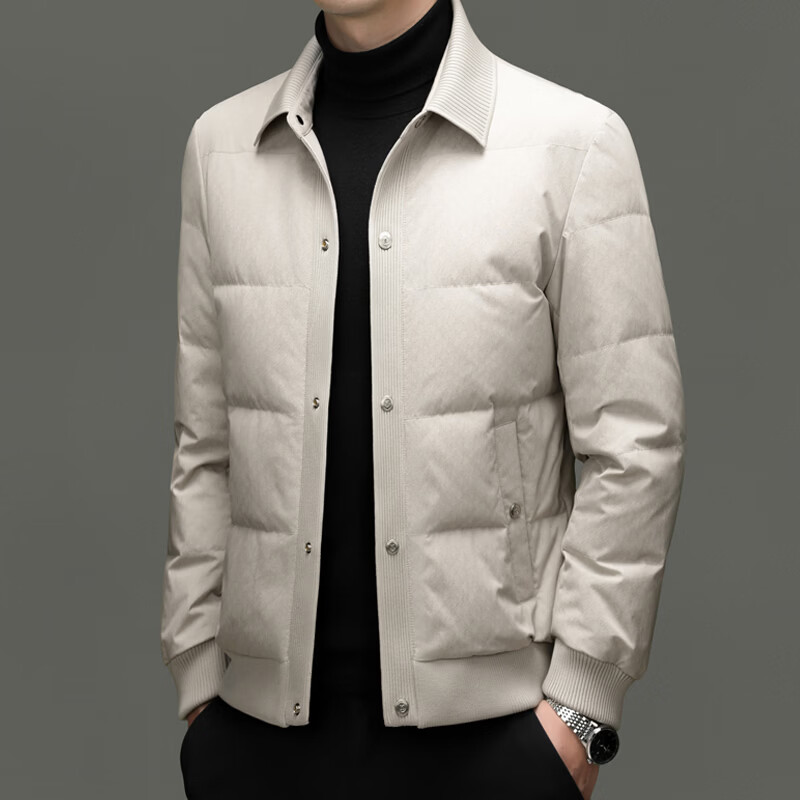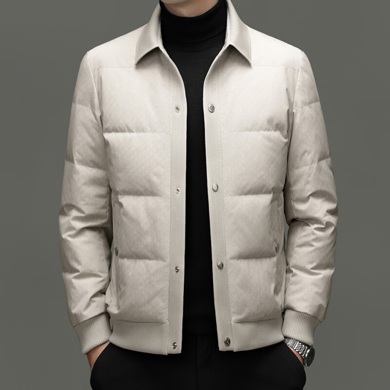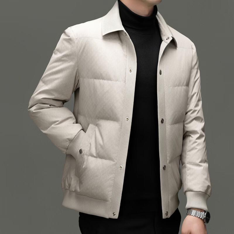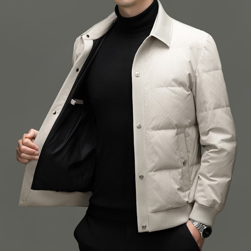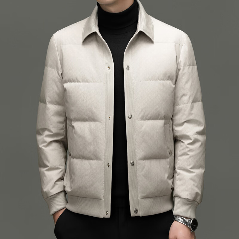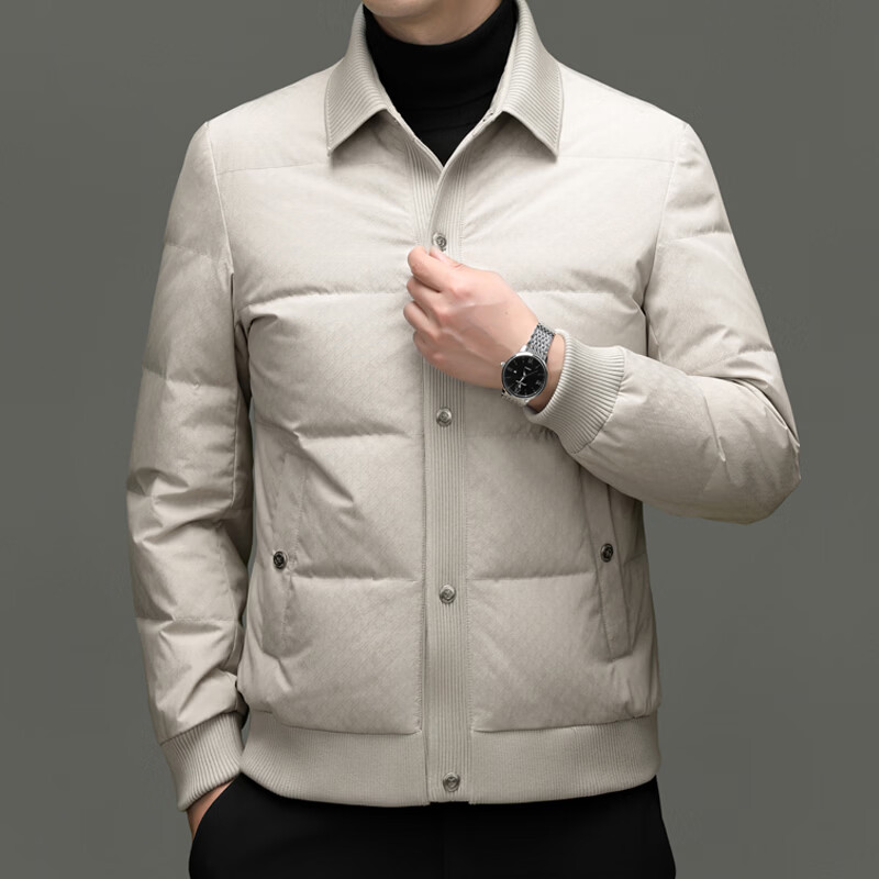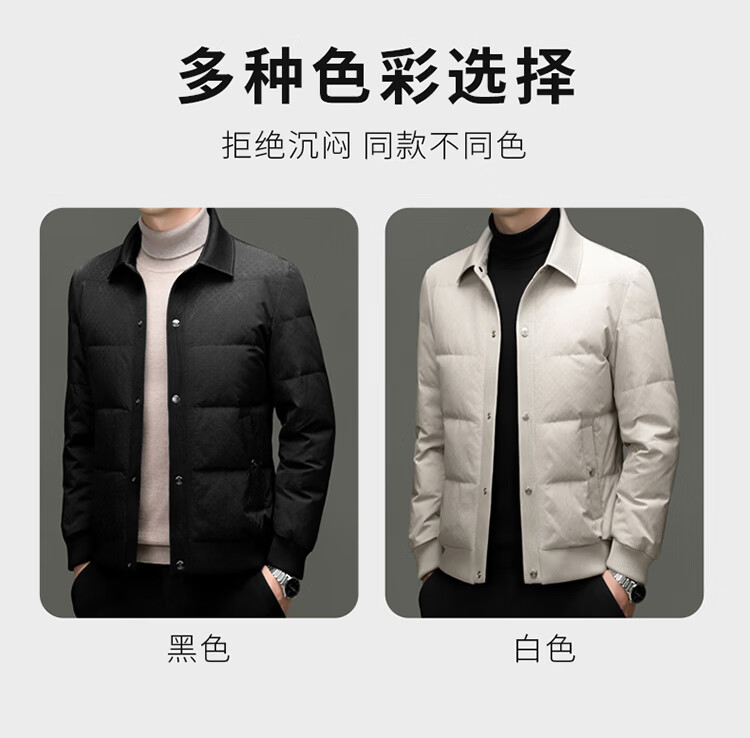 恒源祥2025冬季新款男士短款羽绒服商务休闲时尚中年翻领百搭保暖外套男 白色 M 170