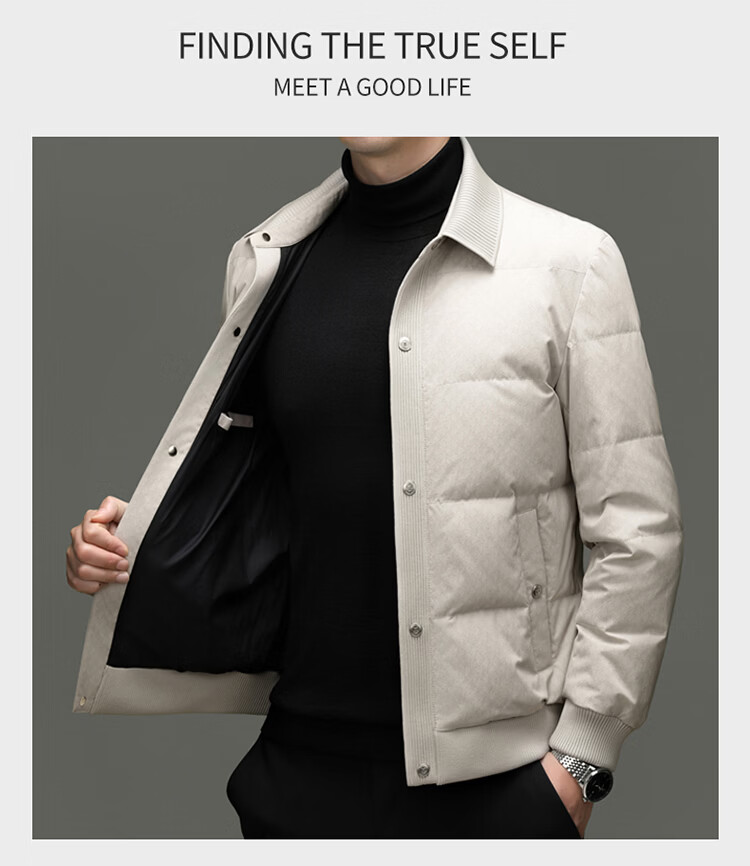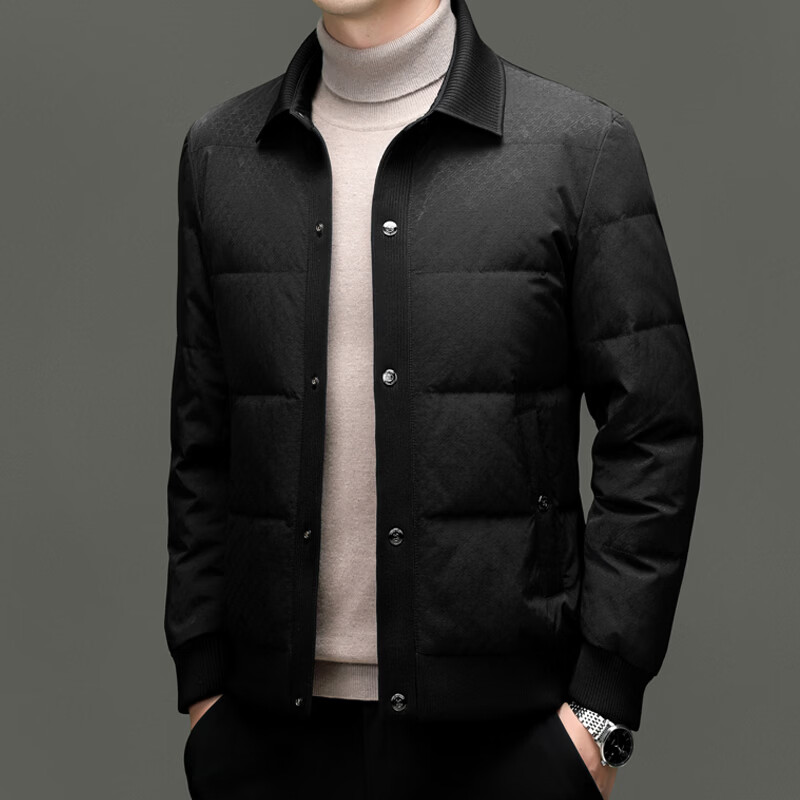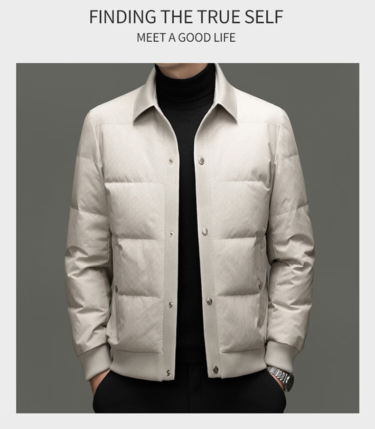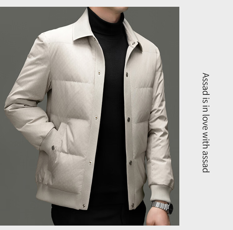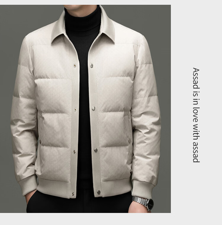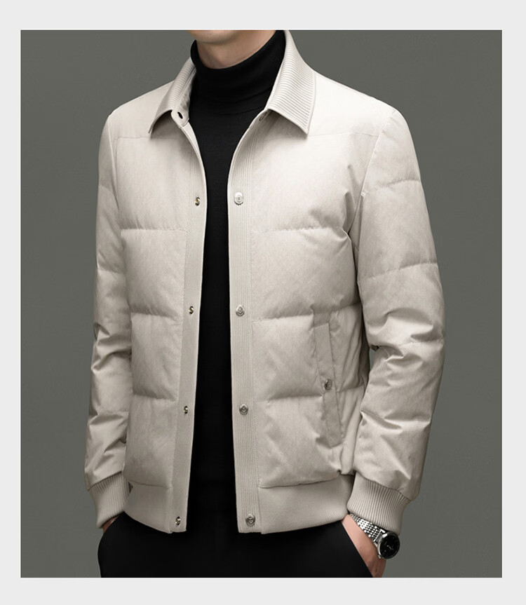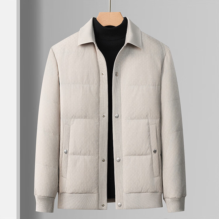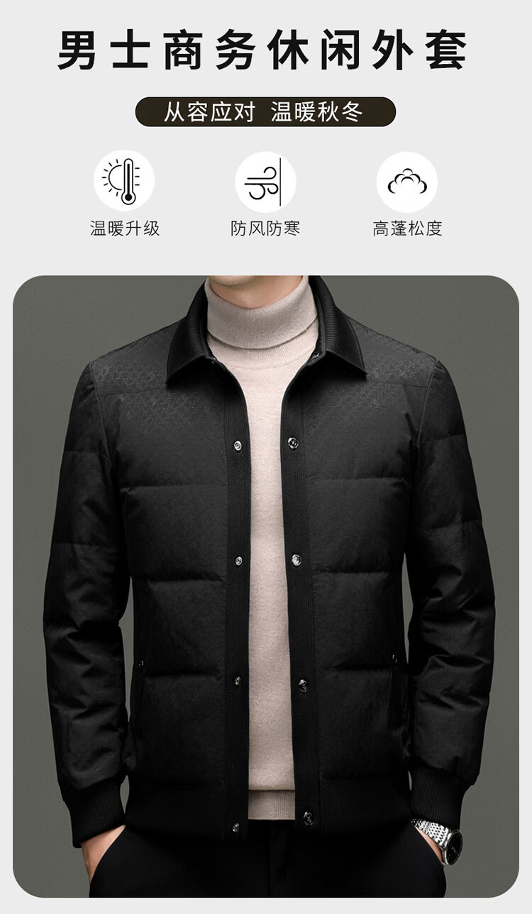 恒源祥2025冬季新款男士短款羽绒服商务休闲时尚中年翻领百搭保暖外套男 白色 M 170