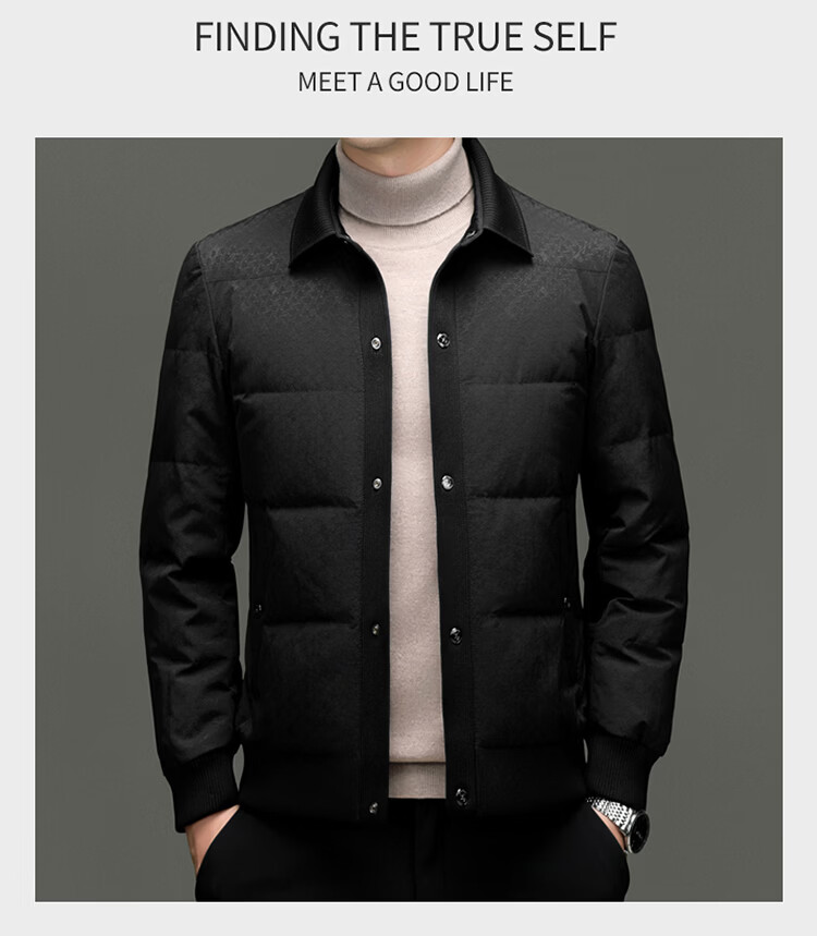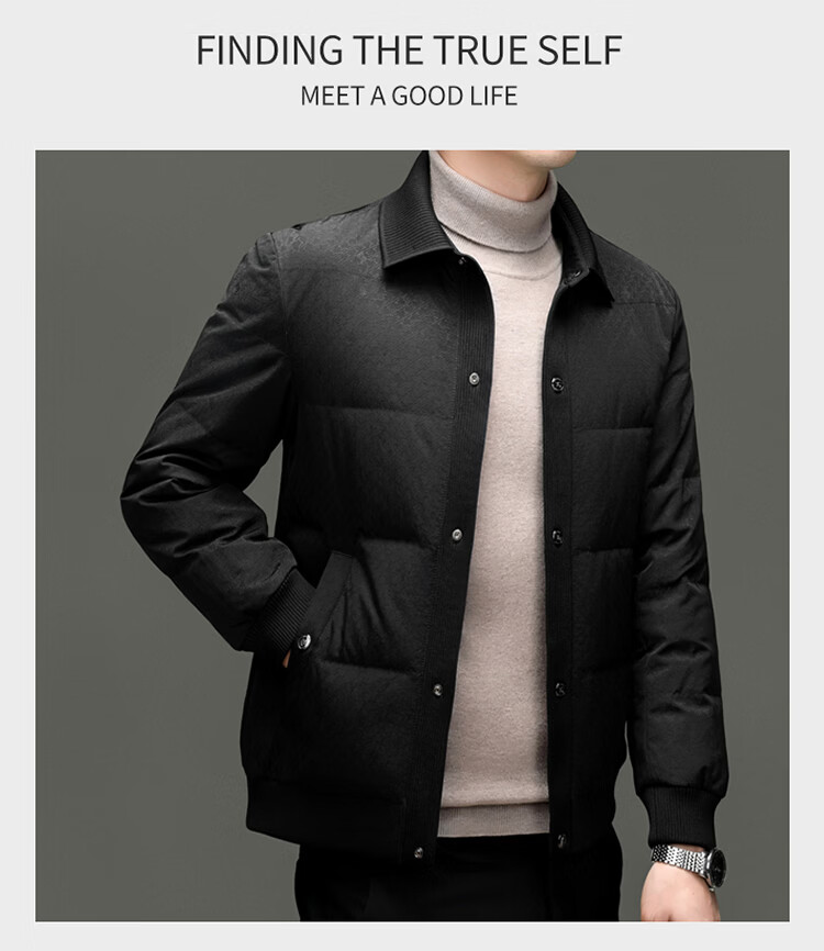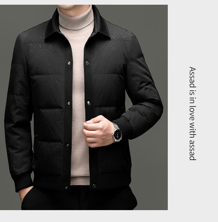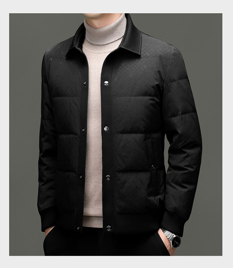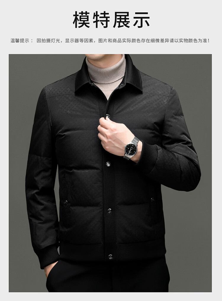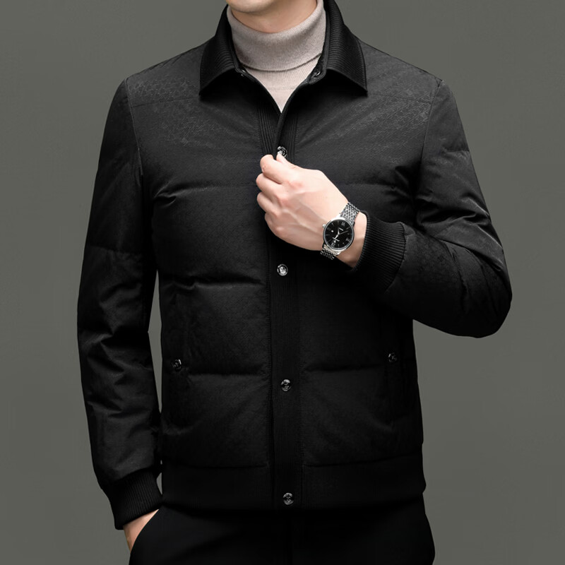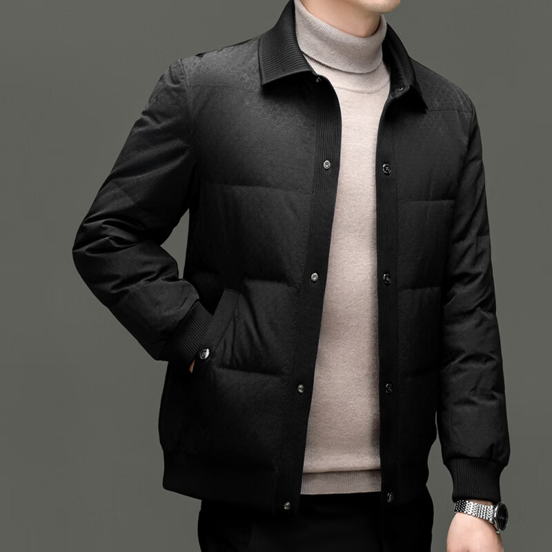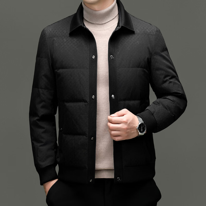 恒源祥2025冬季新款男士短款羽绒服商务休闲时尚中年翻领百搭保暖外套男 白色 M 170