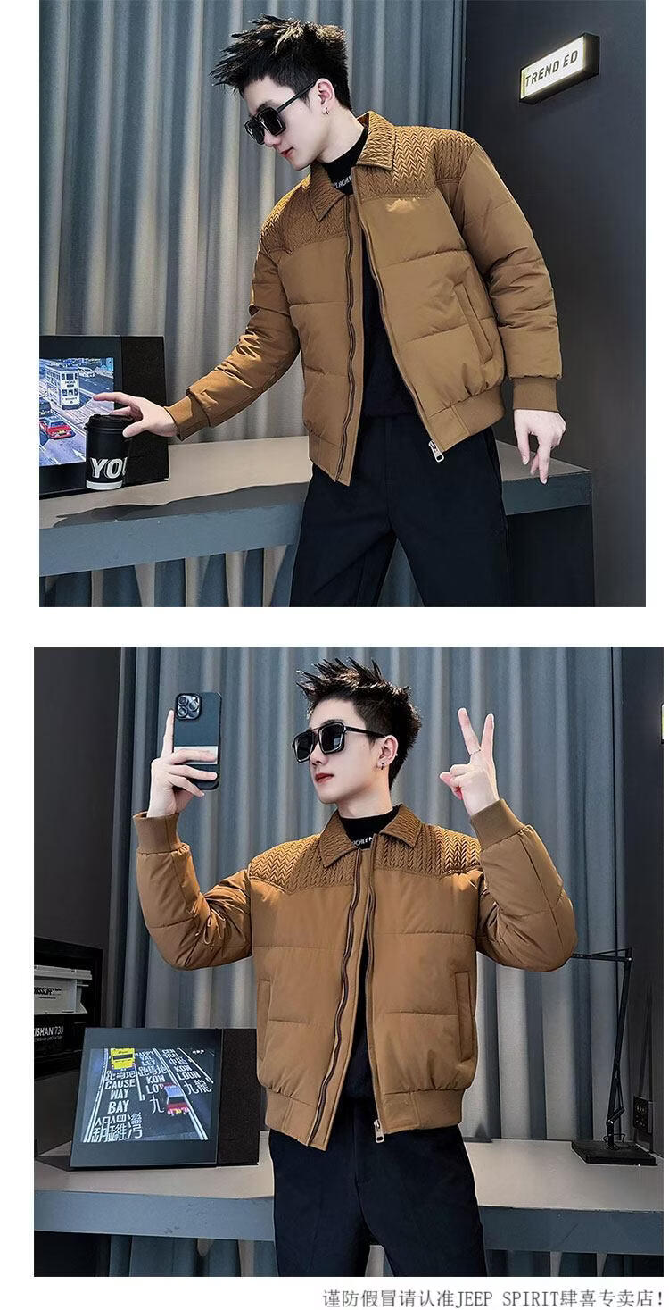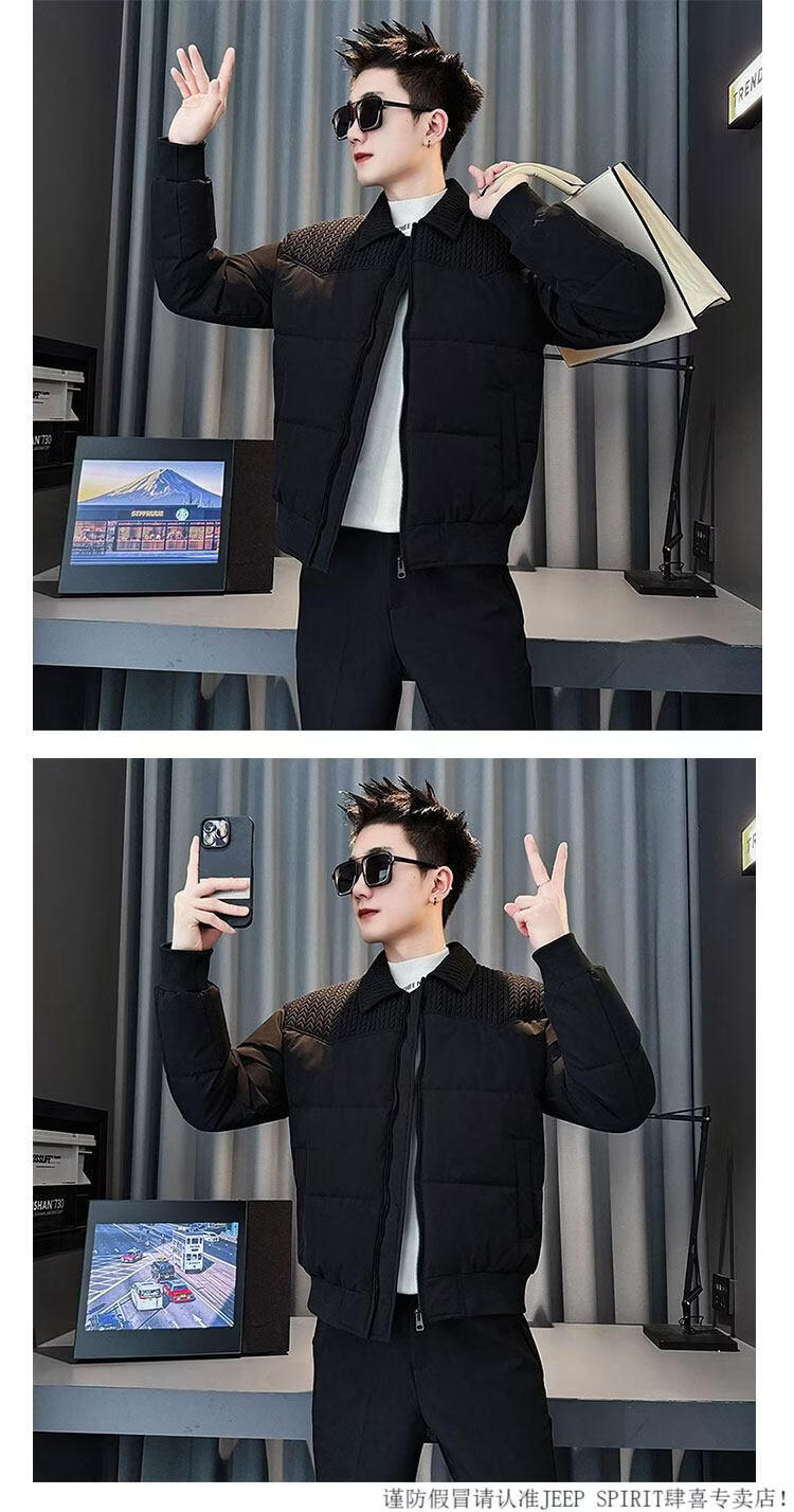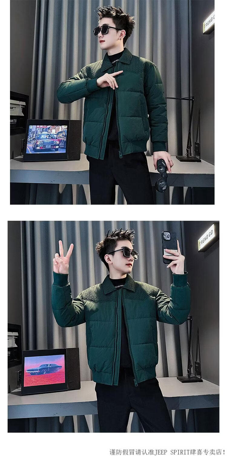 Зимний сращенный мужской пуховик JEEP SPIRIT, популярный в 2025 году, новый стиль, красивая куртка зеленого цвета, размер 2XL, рекомендуется 141 ~ 155Jin Jin, вес 0,5 кг.
