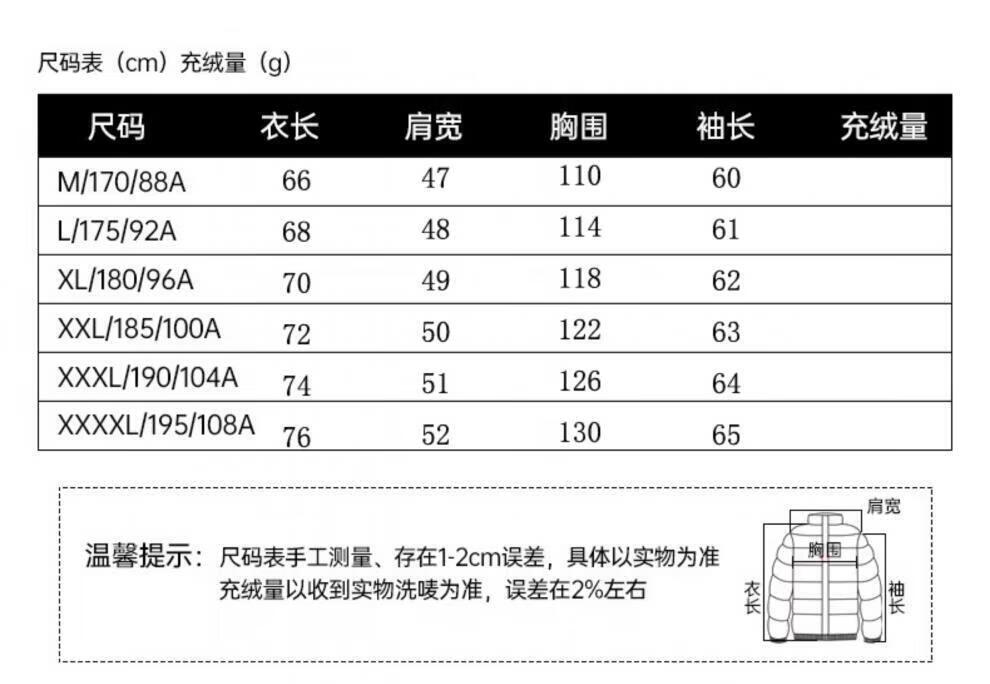 China (cm) 165 / 88-90 170 / 96-98 175 / 108-110 180 / 118-122 185 / 126-130