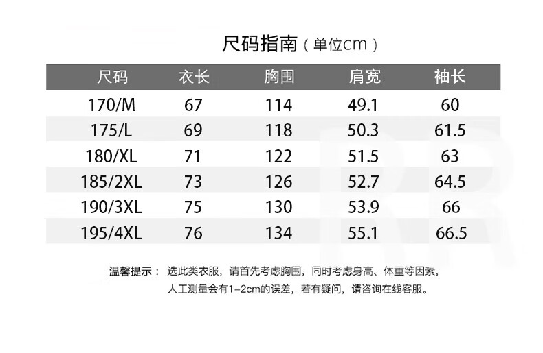 China (cm) 165 / 88-90 170 / 96-98 175 / 108-110 180 / 118-122 185 / 126-130