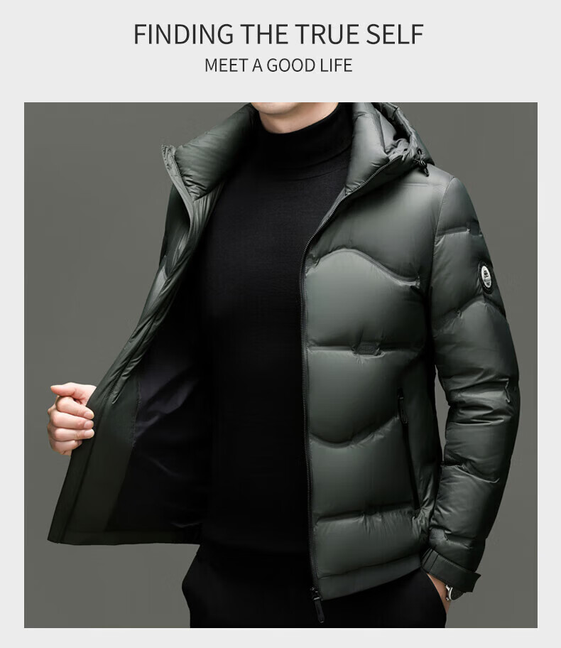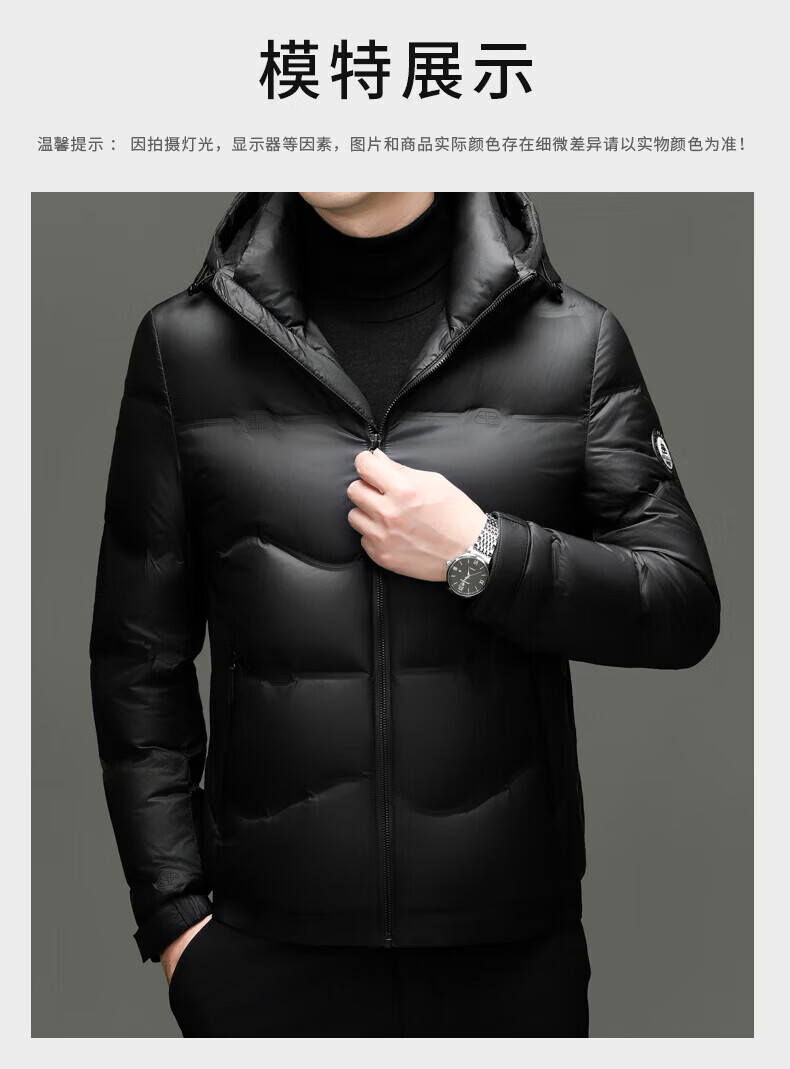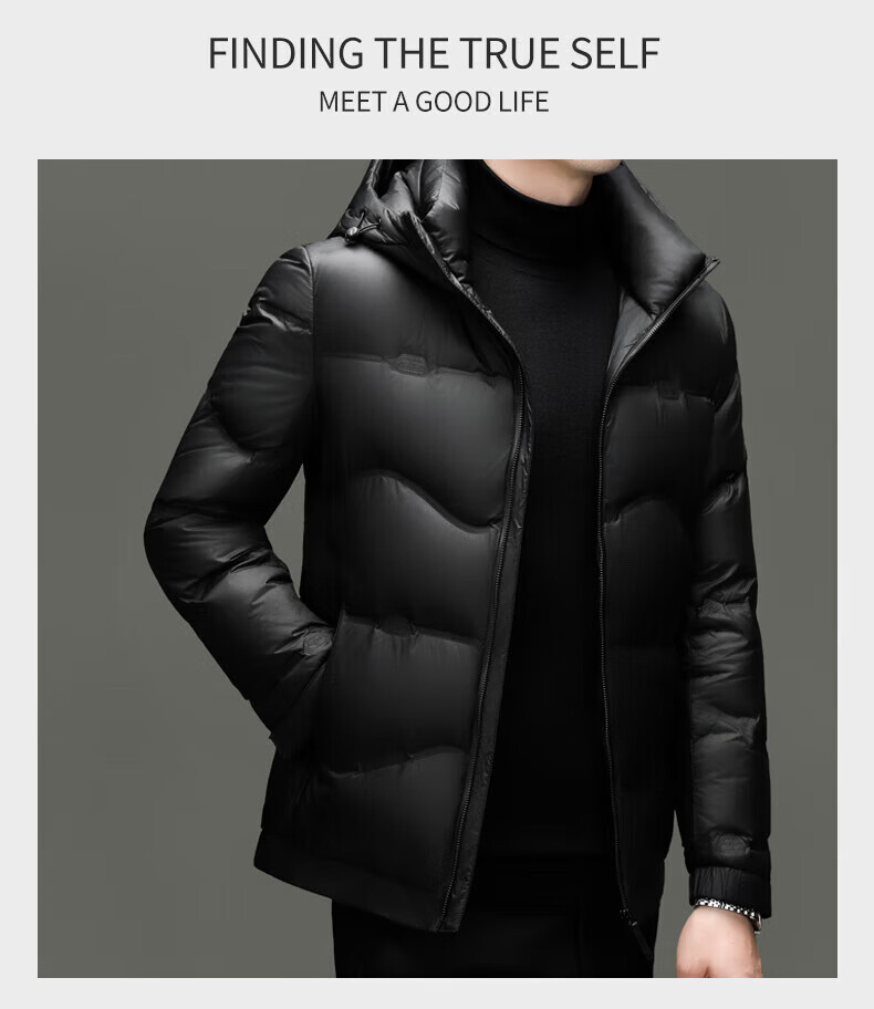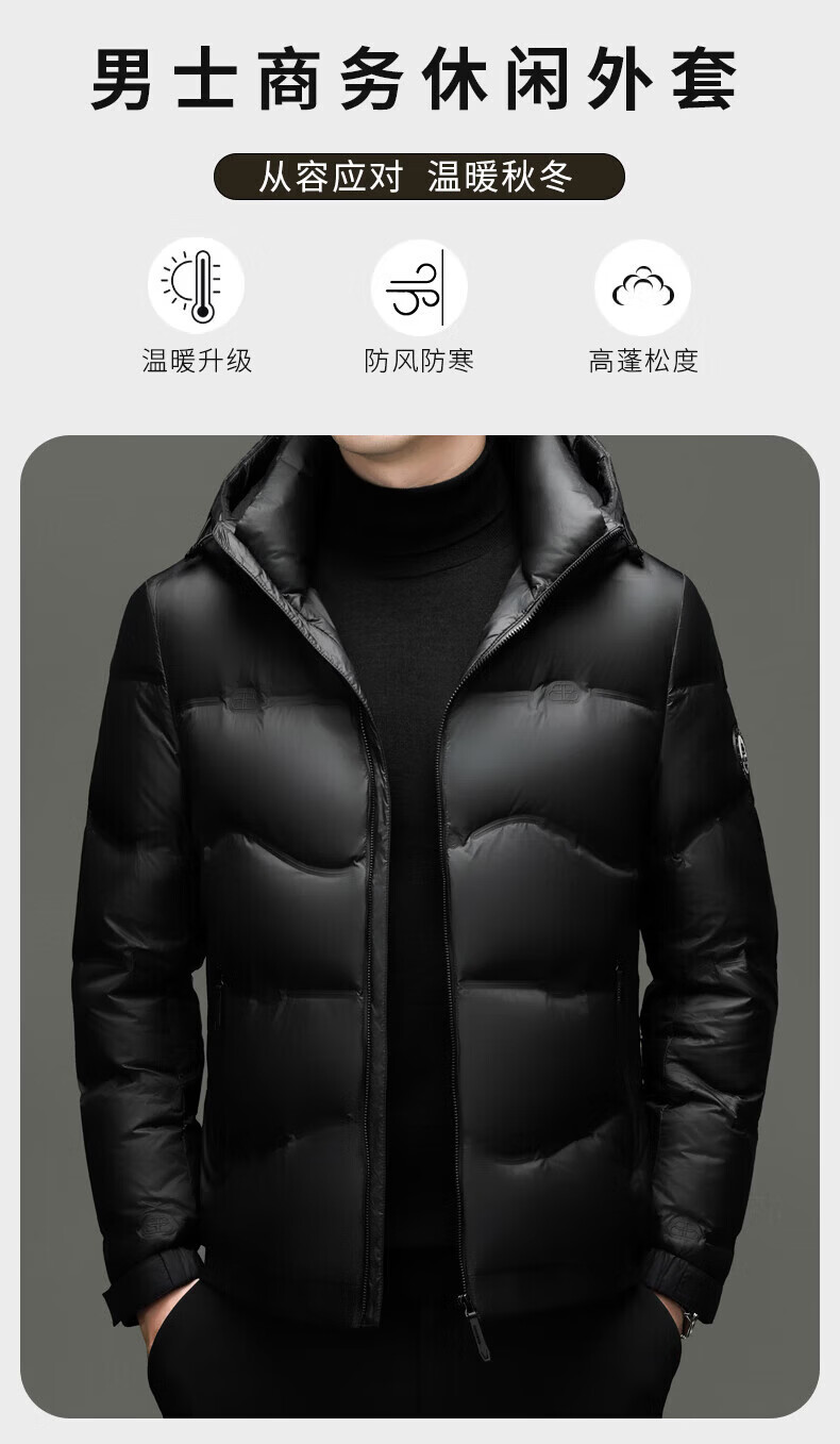 LILANZ высококачественный однотонный мужской пуховик, короткий черный с капюшоном, 90% утиный пух, холодостойкая и теплая куртка, черный L 175 вес 120-135 Jin Jin равен 0,5 кг