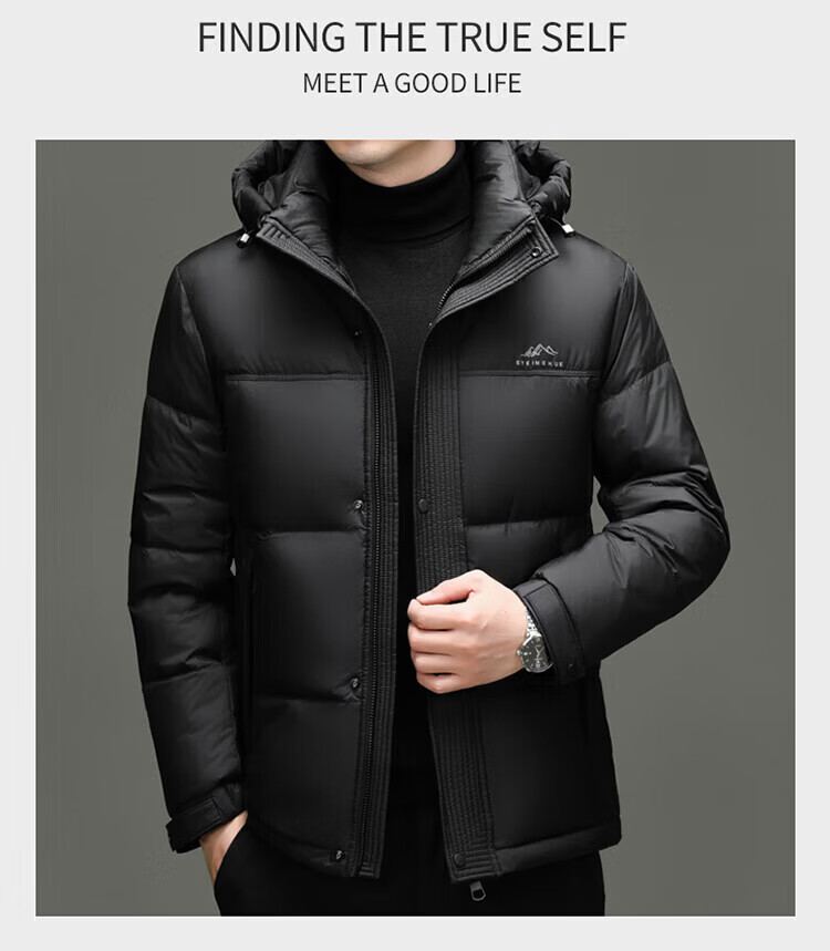 LILANZ 2025, новый зимний пуховик, мужской утепленный съемный капюшон, высококачественный белый гусиный пух, холодостойкая куртка, черный M 170/84A