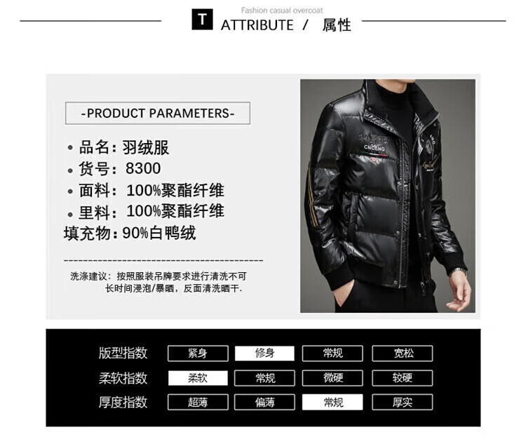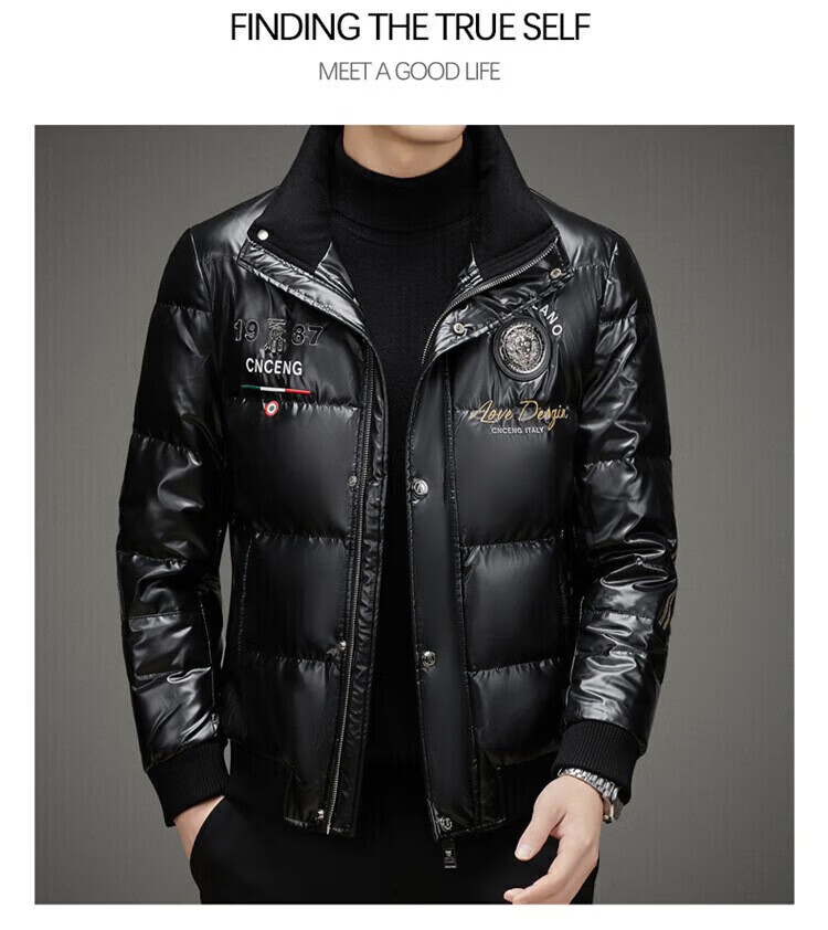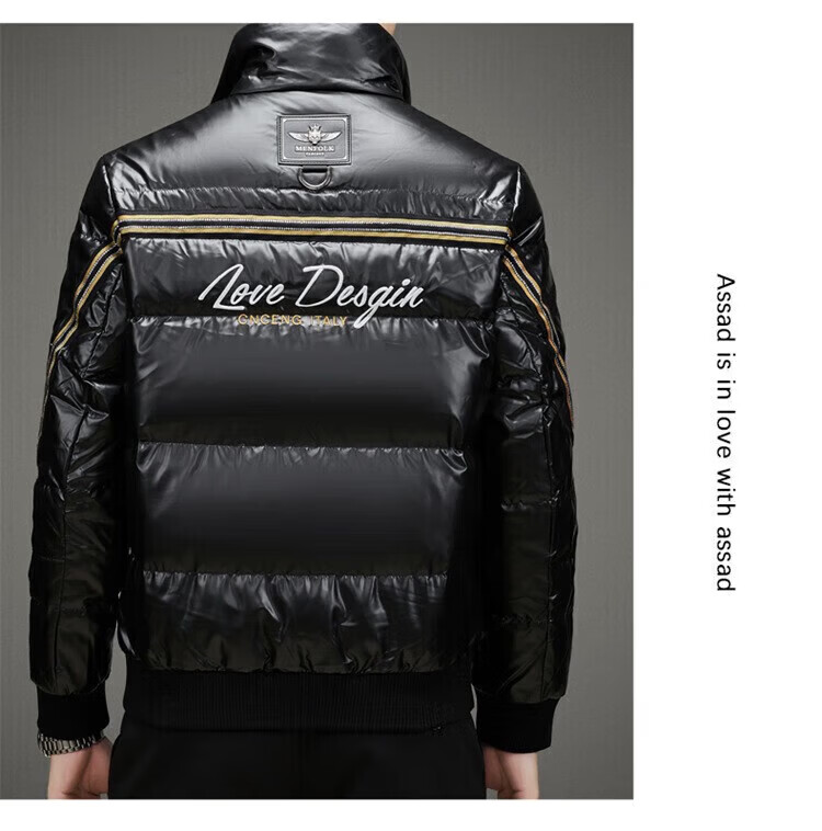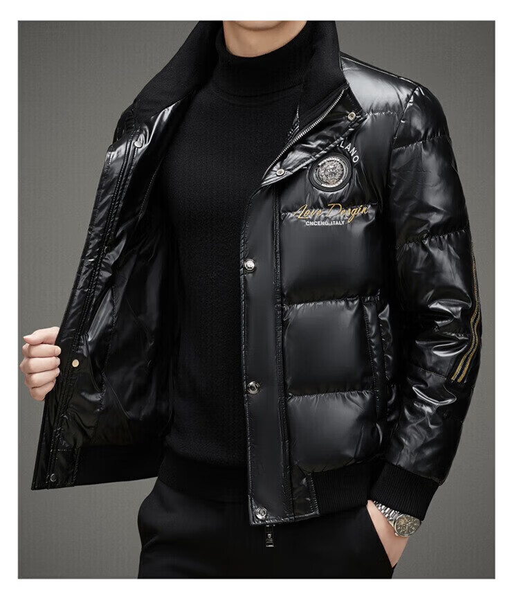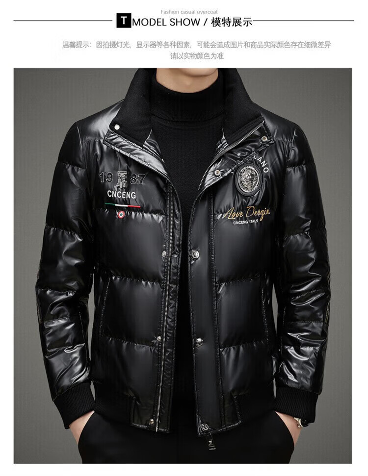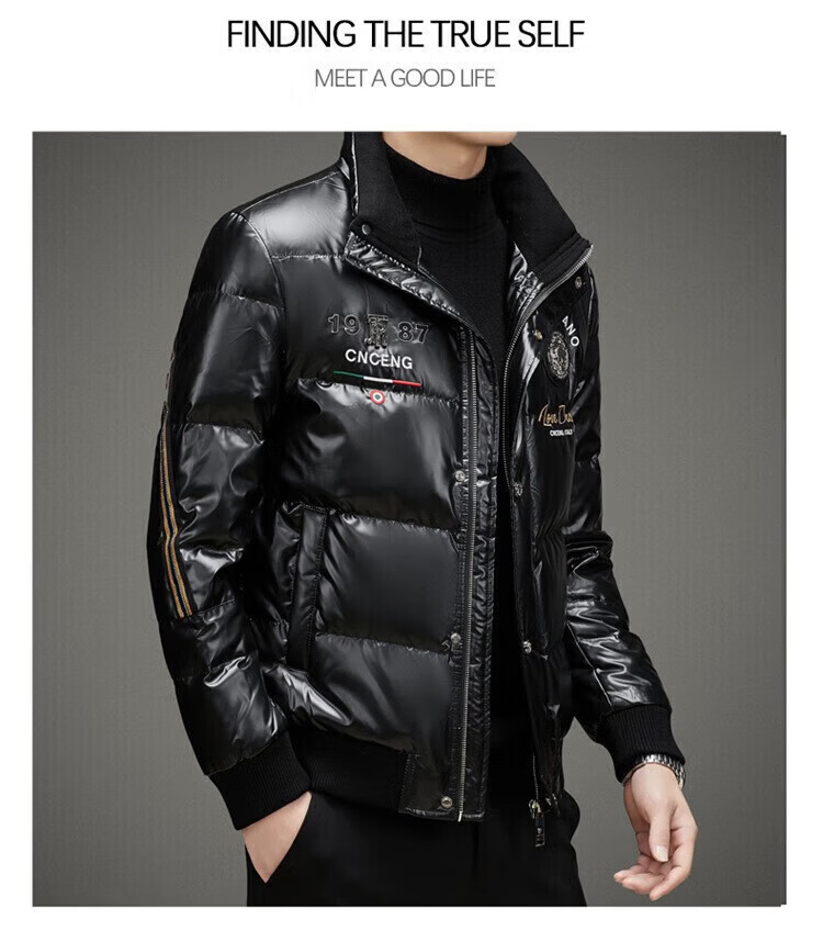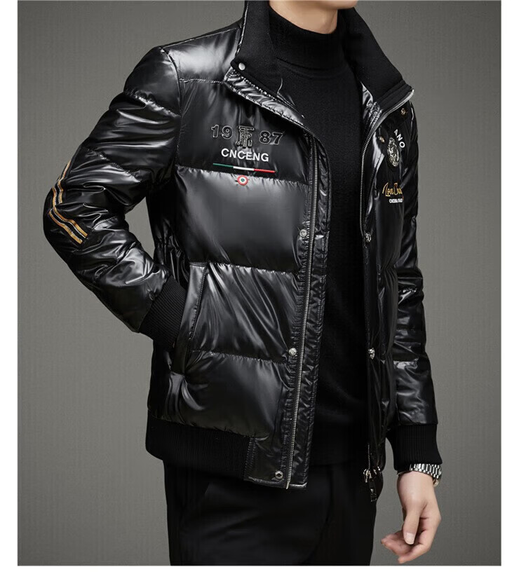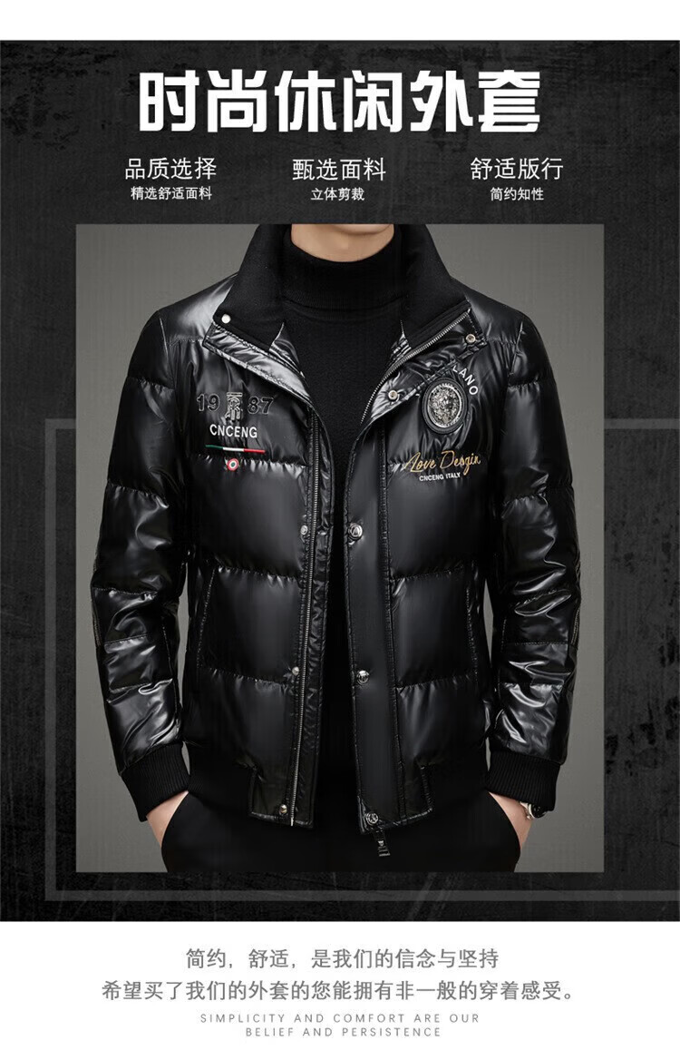 利郎(LILANZ)休闲百搭亮面刺绣立领羽绒服男冬季新款时尚帅气加厚保暖外套 XL
