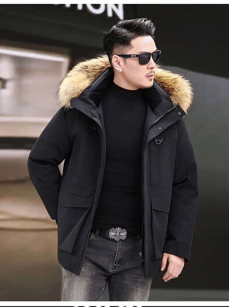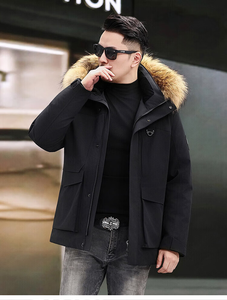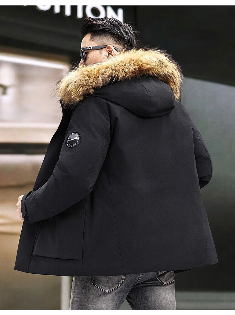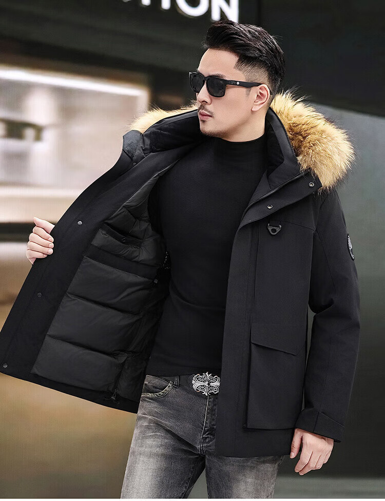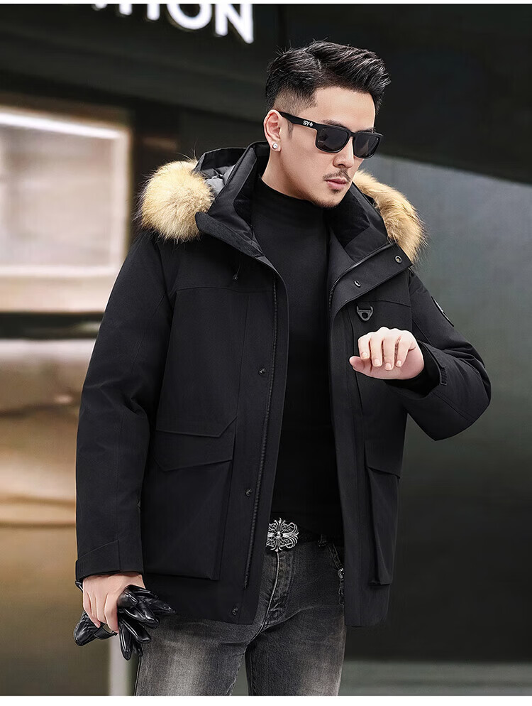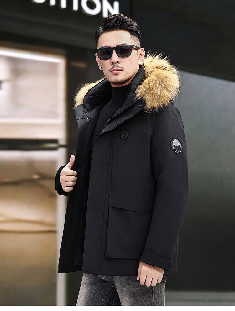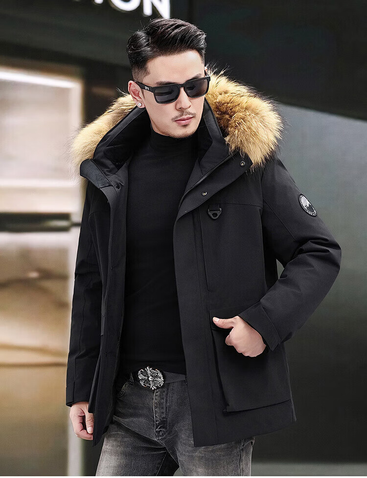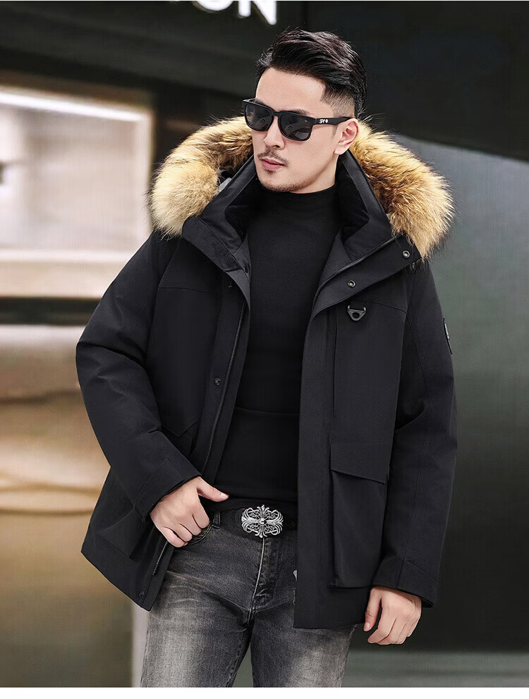 LILANZ 2025 new winter men's down jacket, large fur collar, warm and thickened parka duck down cold-proof winter jacket, black M 170