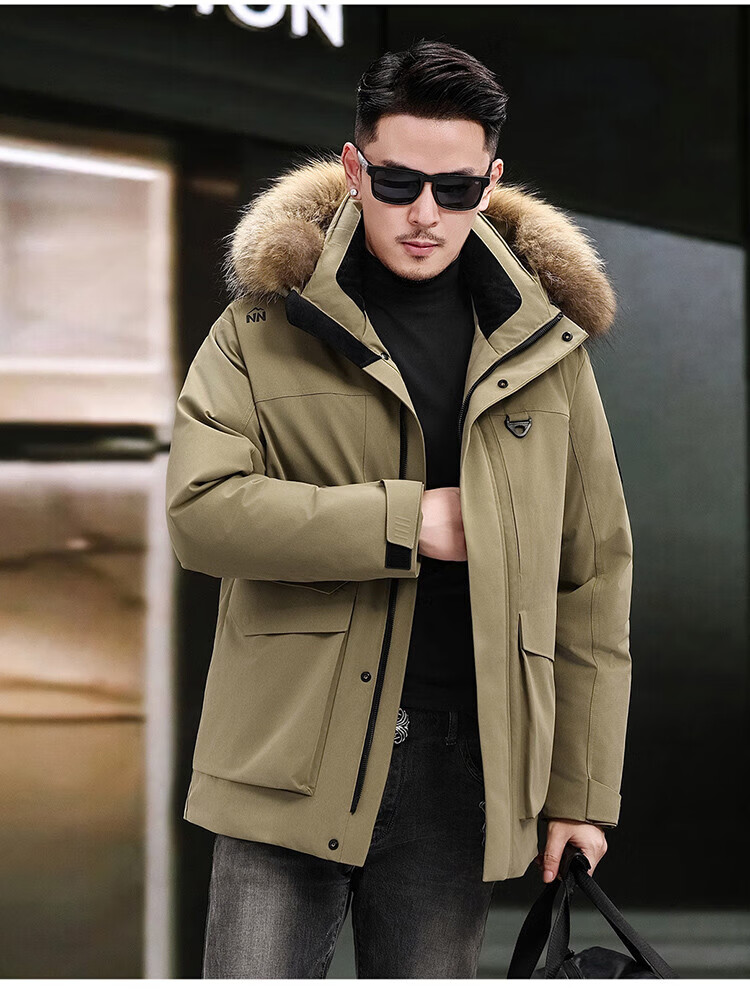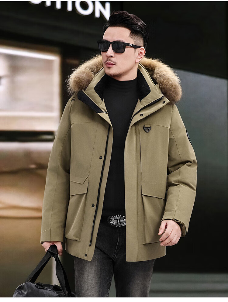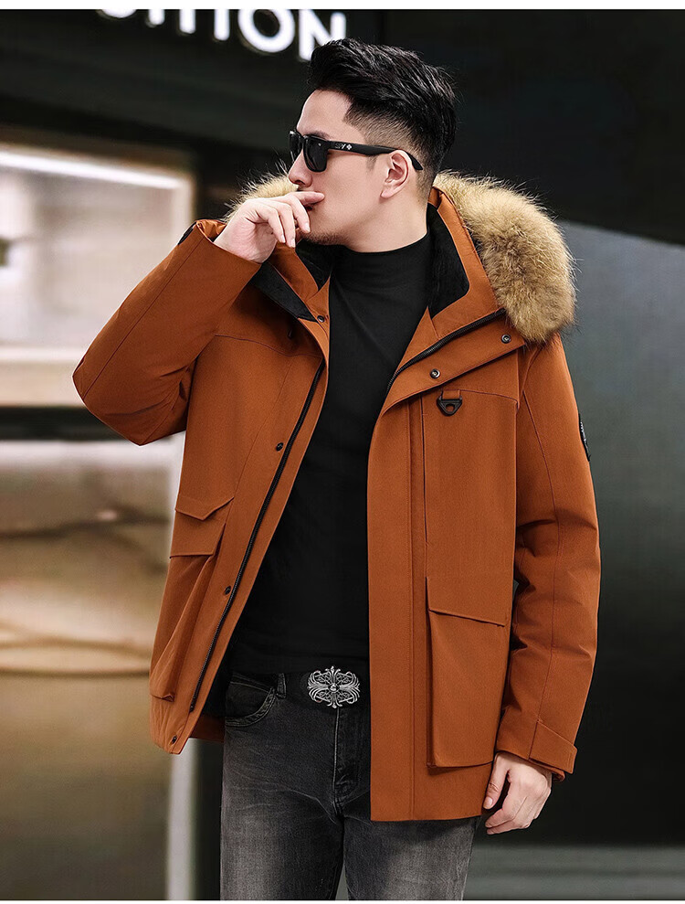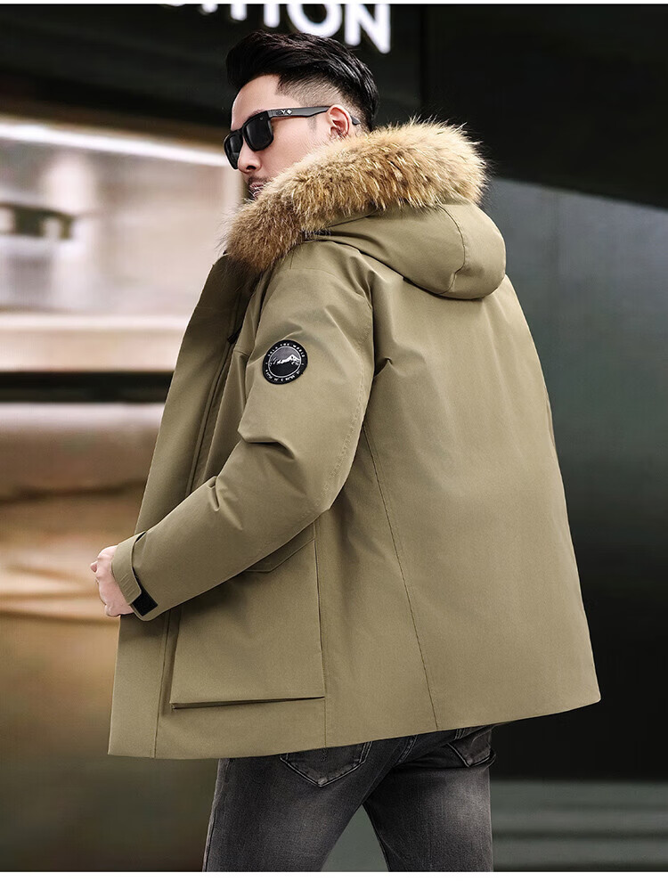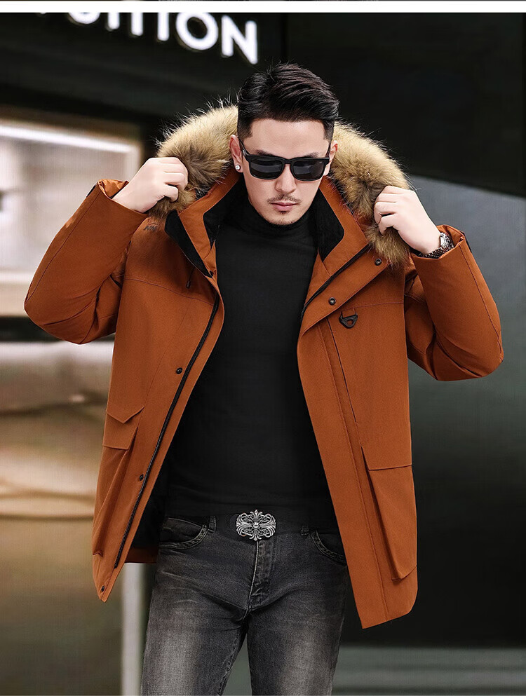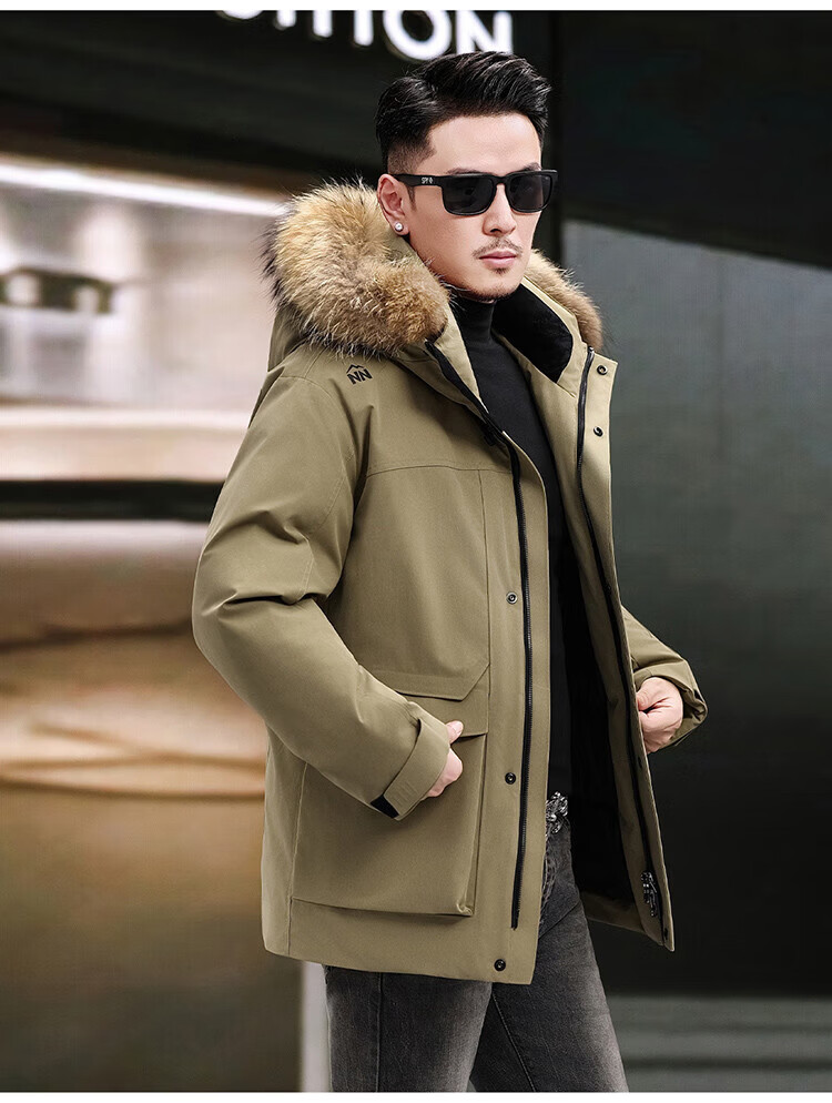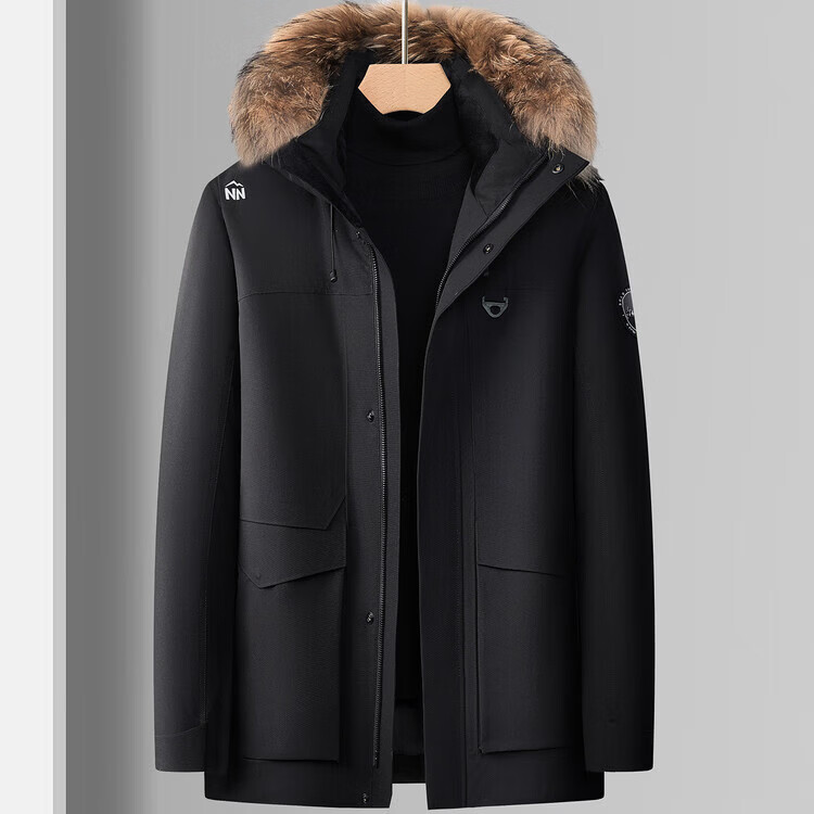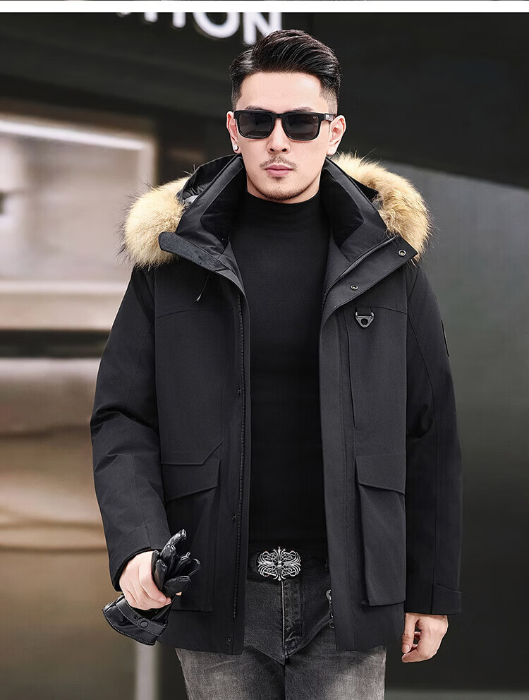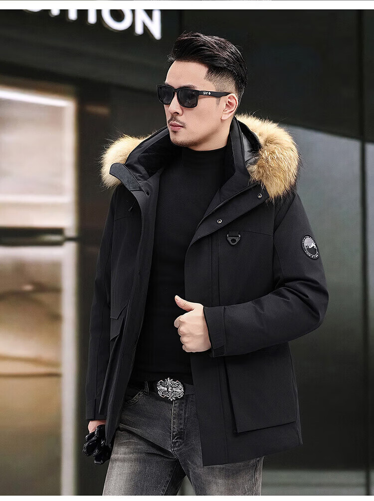 LILANZ 2025 new winter men's down jacket, large fur collar, warm and thickened parka duck down cold-proof winter jacket, black M 170