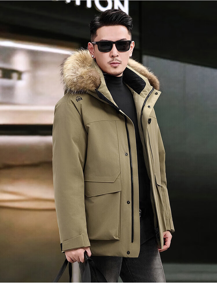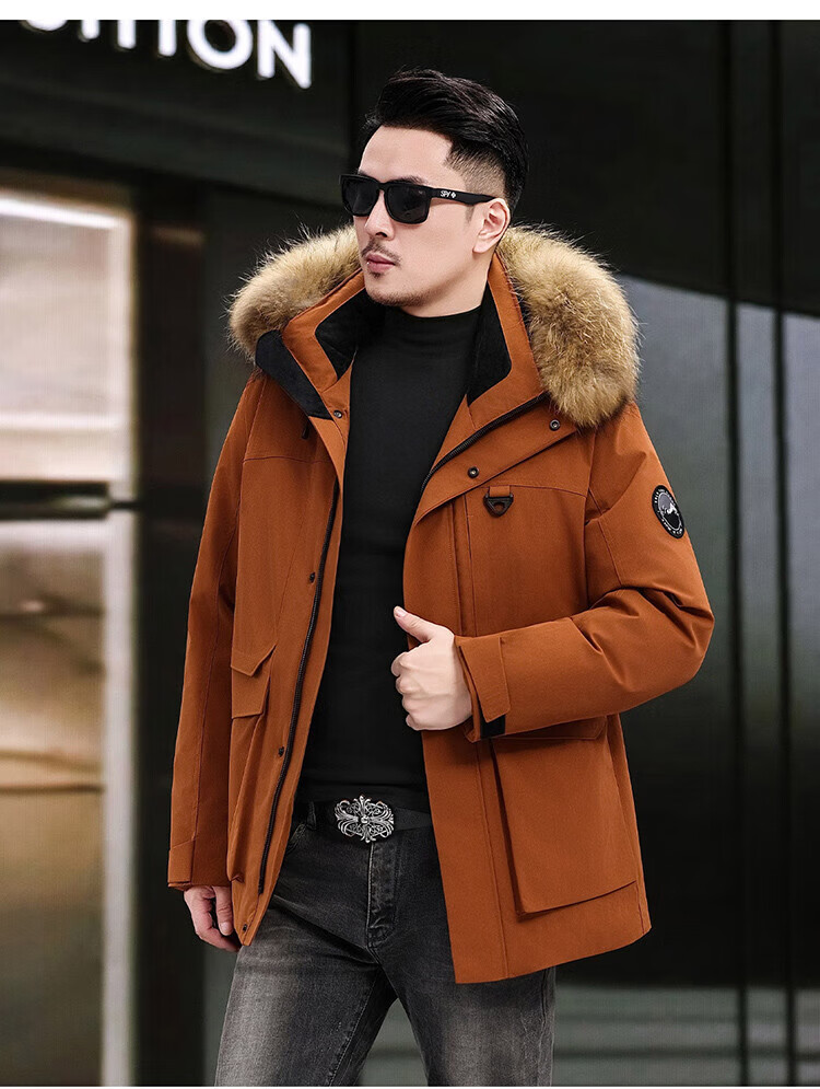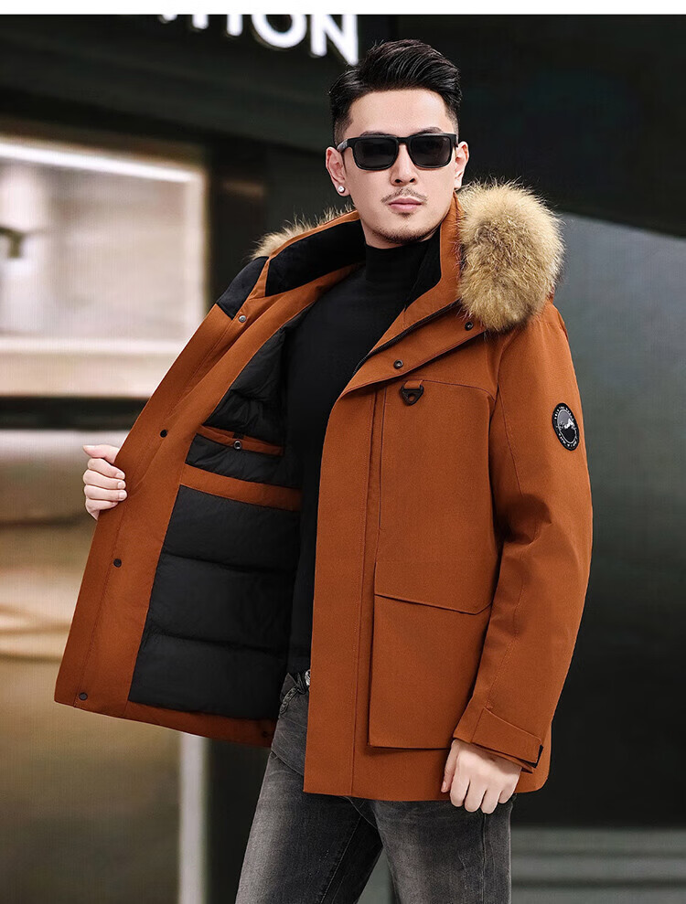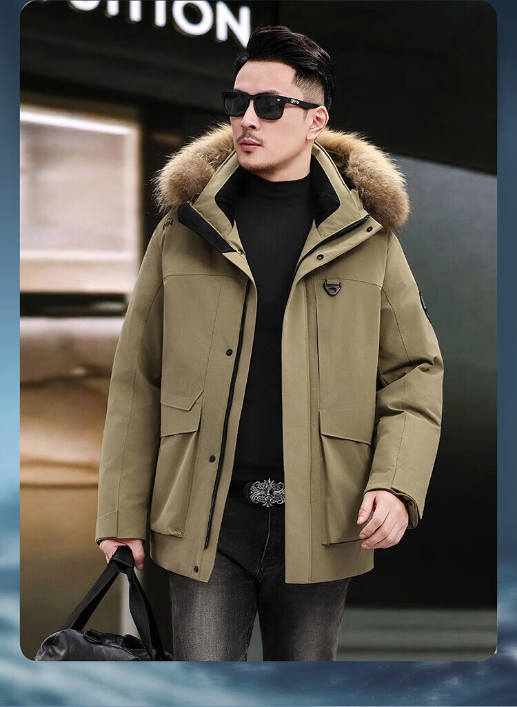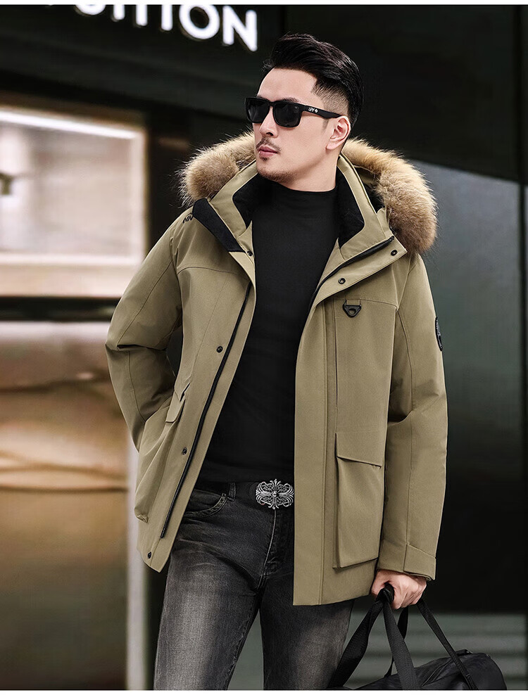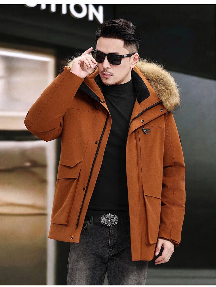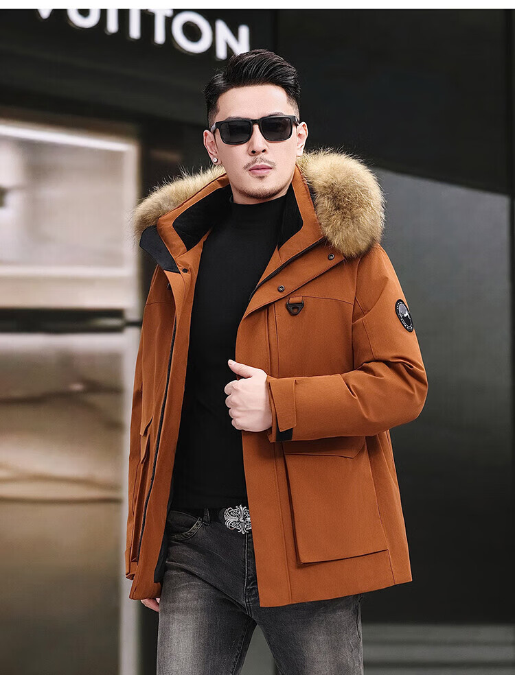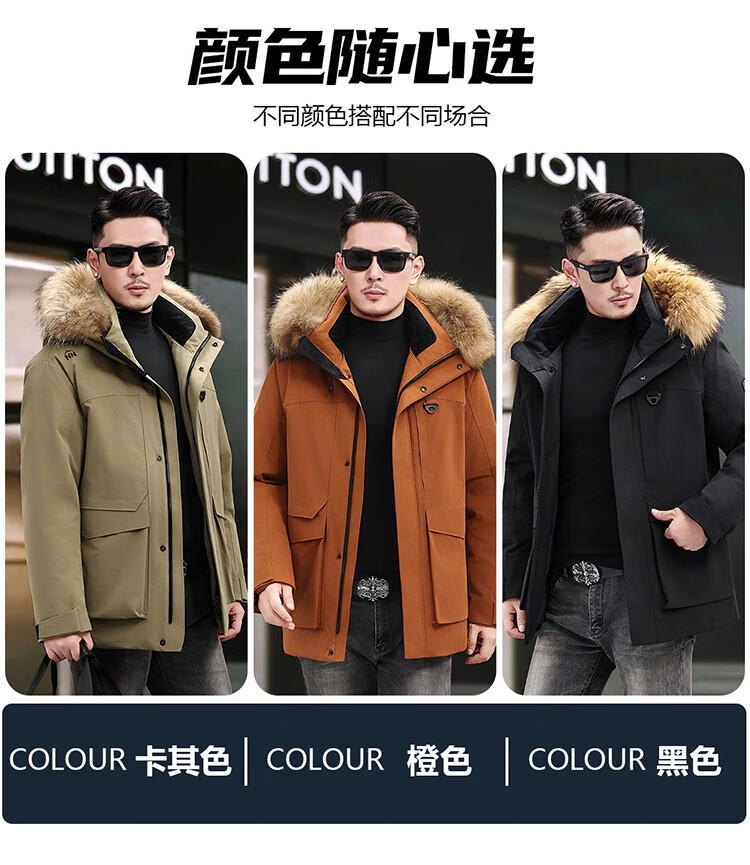 LILANZ 2025 new winter men's down jacket, large fur collar, warm and thickened parka duck down cold-proof winter jacket, black M 170