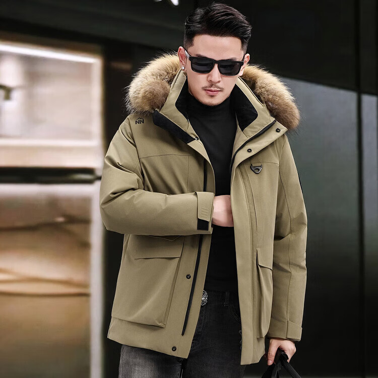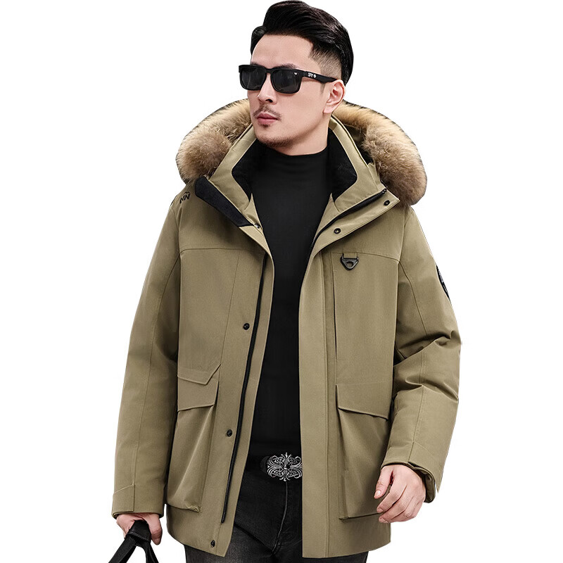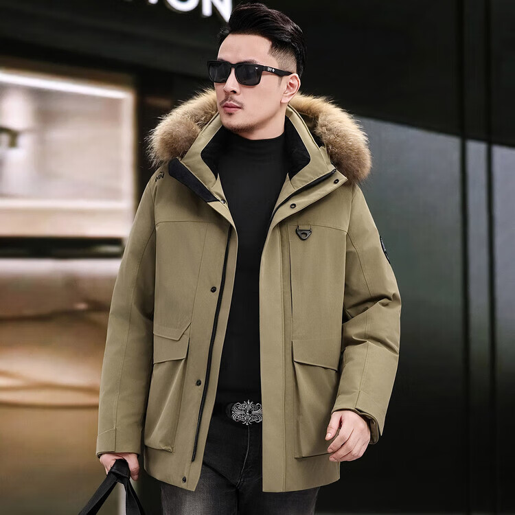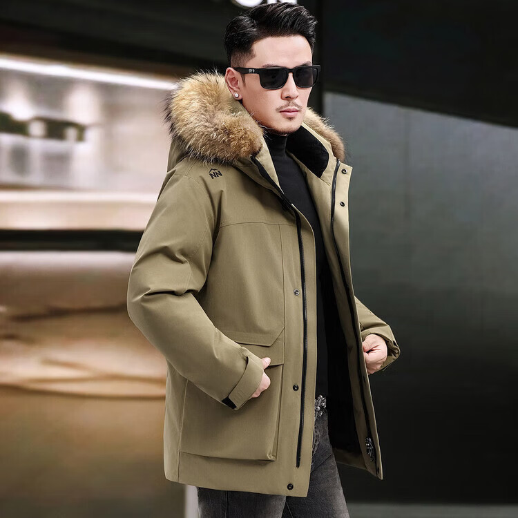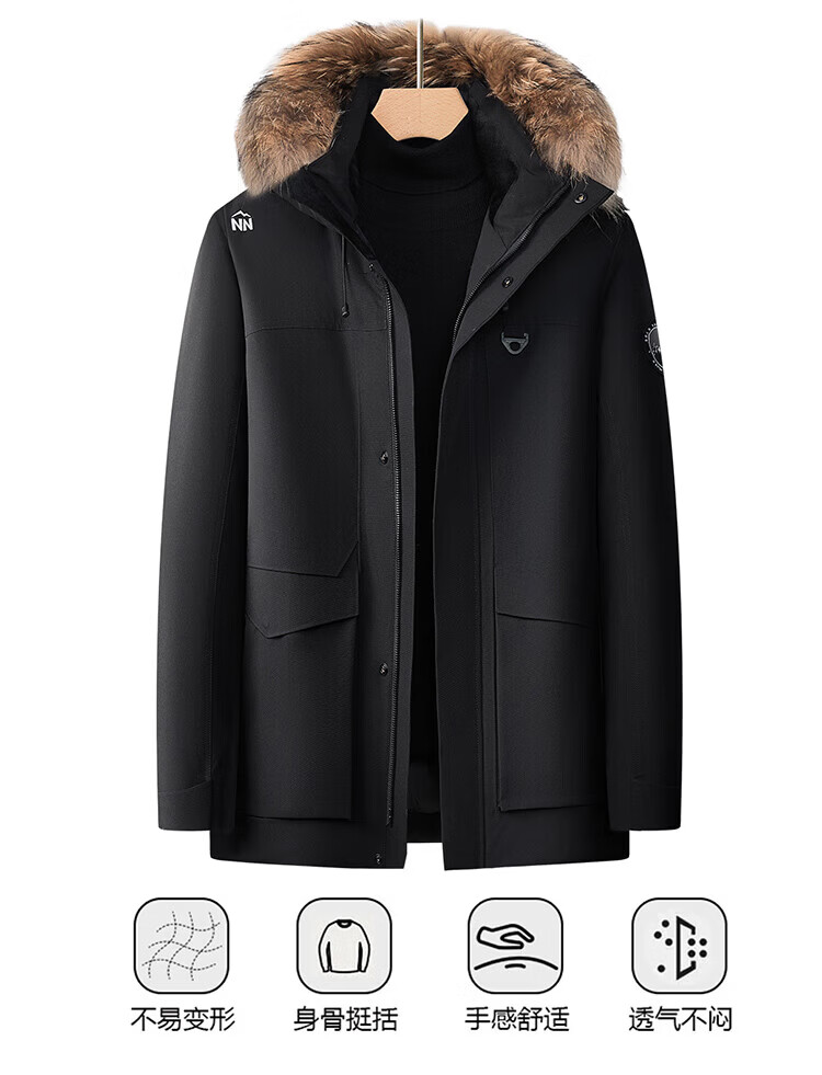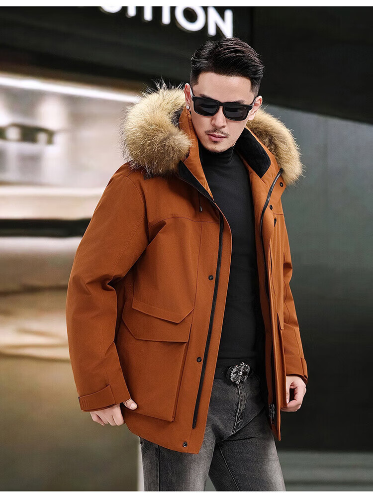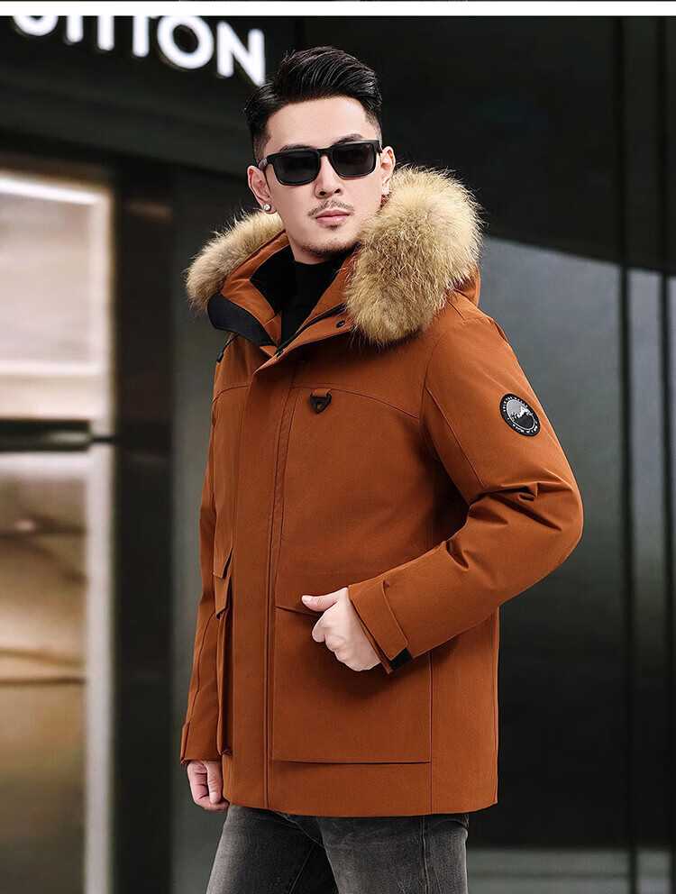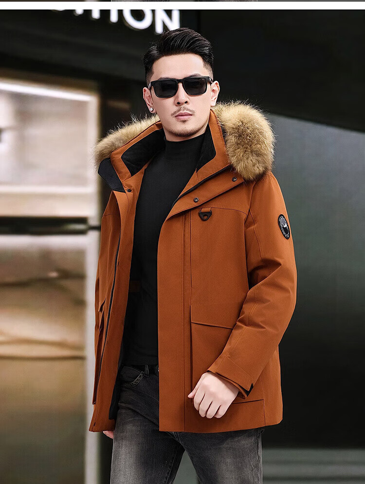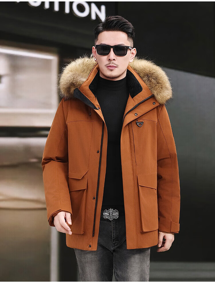 LILANZ 2025 new winter men's down jacket, large fur collar, warm and thickened parka duck down cold-proof winter jacket, black M 170