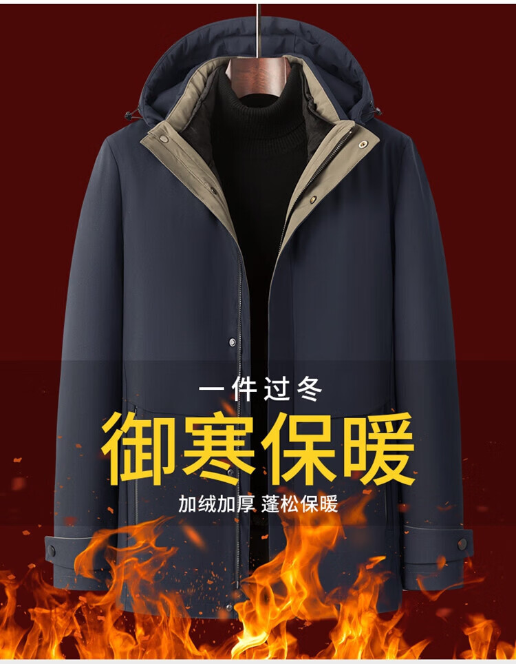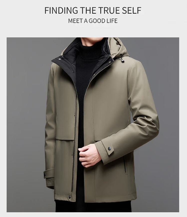 LILANZ мужской пуховик, новинка 2025 года, зимний съемный пуховик для папы, холодостойкий теплый пуховик цвета хаки XL